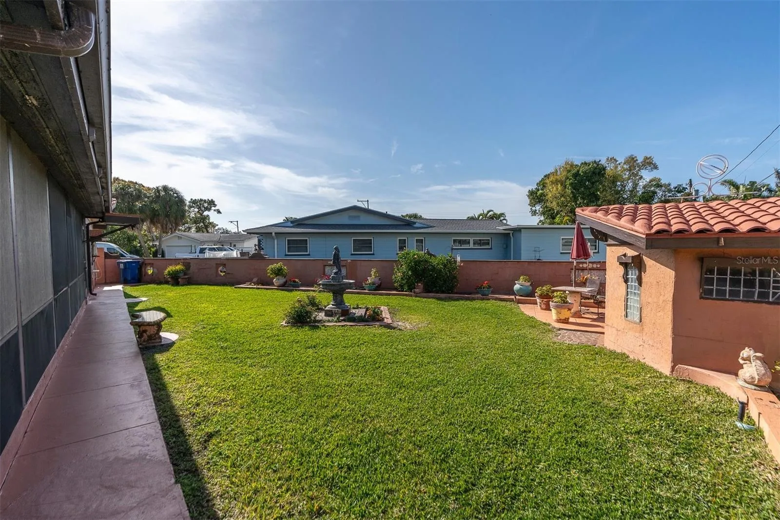 NO DAMAGE FROM HURRICANE HELENE… You’ll be totally WOWED by the NEWLY POLISHED Terrazzo flooring throughout! The interior has been professionally painted, and all the furnishings are removed. You will fall in love with this mid century block home, on an oversized lot, in the well-sought after Maximo Moorings neighborhood! This home features a split floor plan with your Primary Suite privately tucked away with sliding doors to the oversized 42×13 screened lanai. The screened lanai has double sliding doors to access the kitchen, dining room, primary suite and 2nd bedroom. The lanai could easily be converted to add more living space (approximately 550 square feet more), making this home almost 2000 square feet! The gorgeous updated kitchen was updated in 2016 and has a separate breakfast nook. Some of the updates include the updated electrical panel in 2016, newer windows and HVAC system, and also a new main sewer line! Keep your lush landscaping looking beautiful year round with the well-fed irrigation system. Enjoy coastal living near Ft. Desoto State Park and beautiful award winning Gulf Beaches! Conveniently located to vibrant downtown St. Petersburg with a mix of arts and culture, shopping, dining and more, via easy access and just minutes to I-275! Only 30 minutes to Tampa and St. Petersburg International Airports, and 10 minutes to downtown St. Petersburg! Come see this newly polished home, you will not be disappointed!