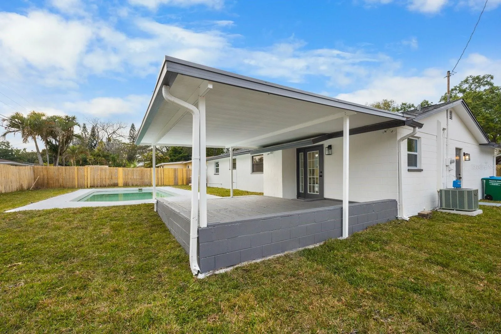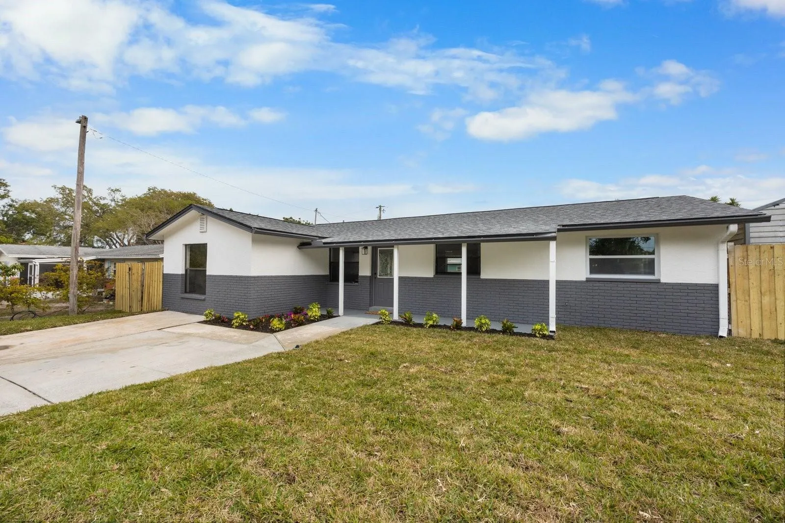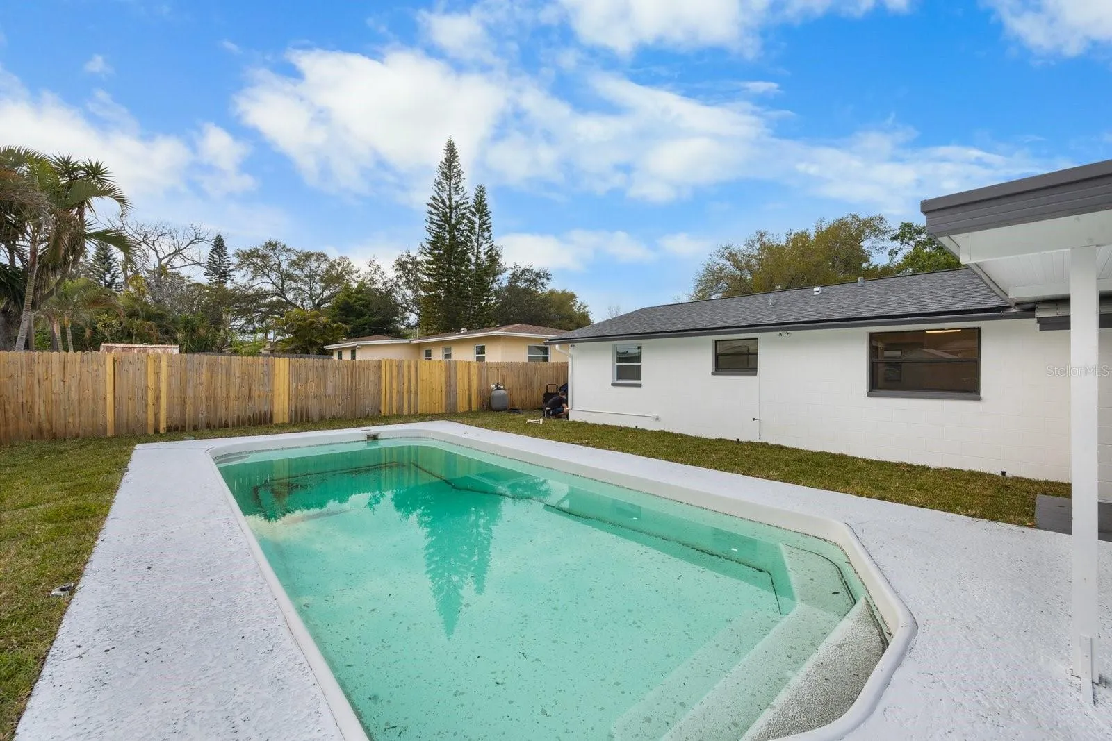 Newly Renovated Home Located in Largo Florida! 3 Bedrooms, 2 Baths, with a Large Patio and Pool Area! Open Floor Plan Home with Spacious Kitchen with Sparkling Quartz Countertops, New Solid Wood and Soft Close Cabinetry, Plenty of Storage, and Recessed Refrigerator Area. Ample Natural Lighting, some impact Windows, a new 2023 Roof, and Two Outdoor Sheds! Large Primary Bedroom with two His and Hers Closets and Updated En-suite Bathroom with a Large Shower. Large Indoor Laundry Area with shelving and access to the side yard. New Sprinkler System, Freshly Sodded, Landscaped & Painted In both front and backyards. Generously sized backyard patio area and pool deck, perfect for entertaining or enjoying a beautiful Florida sunset by the pool! Huge Pool Newly Resurfaced with a 5-year warranty, a new Pump + Equipment! New Water Heater, updates Electrical ! This must-see home has it all; Centrally located and just minutes away from Largo Mall, Walsingham Park, & Indian Shores Beaches.