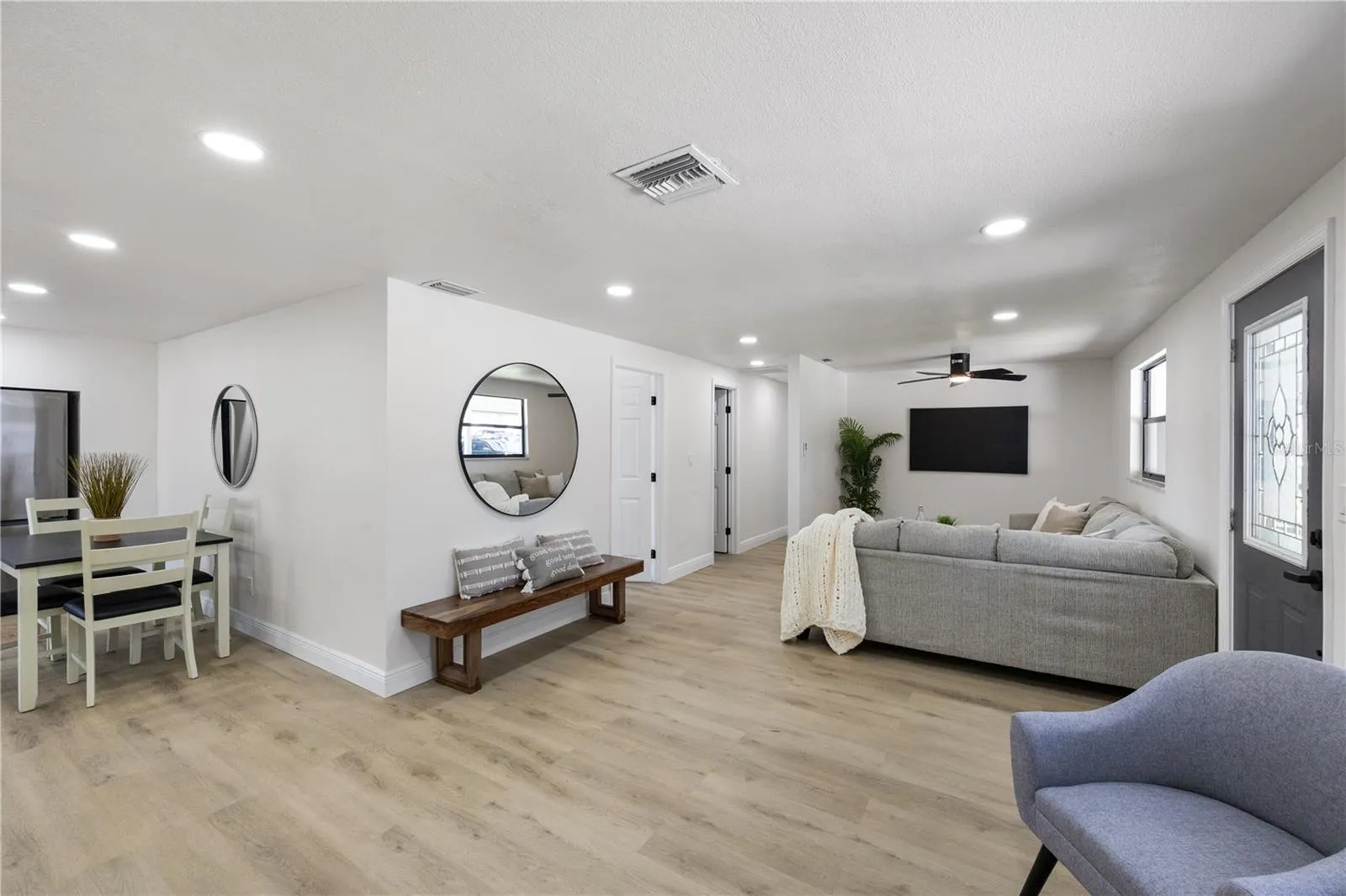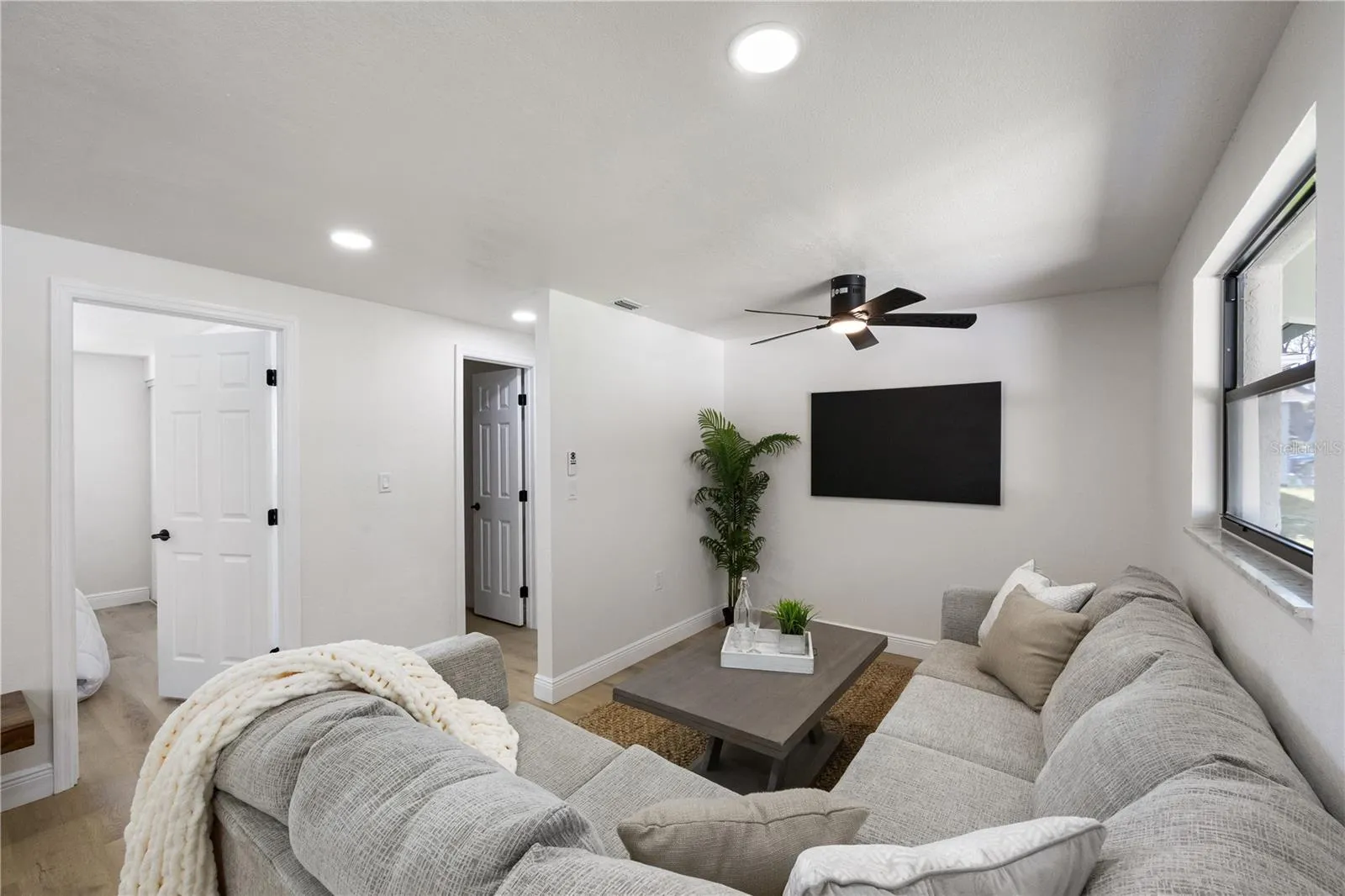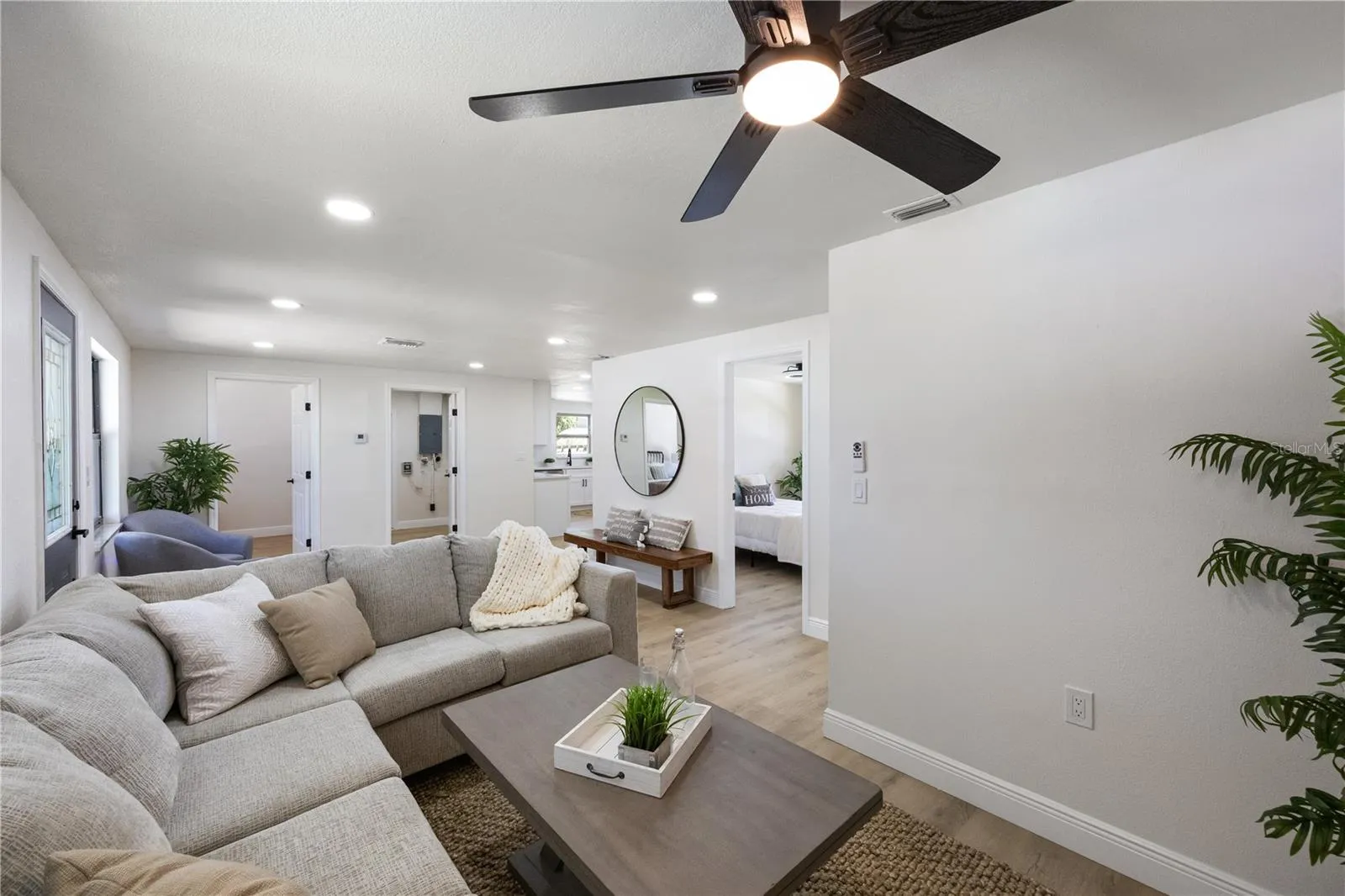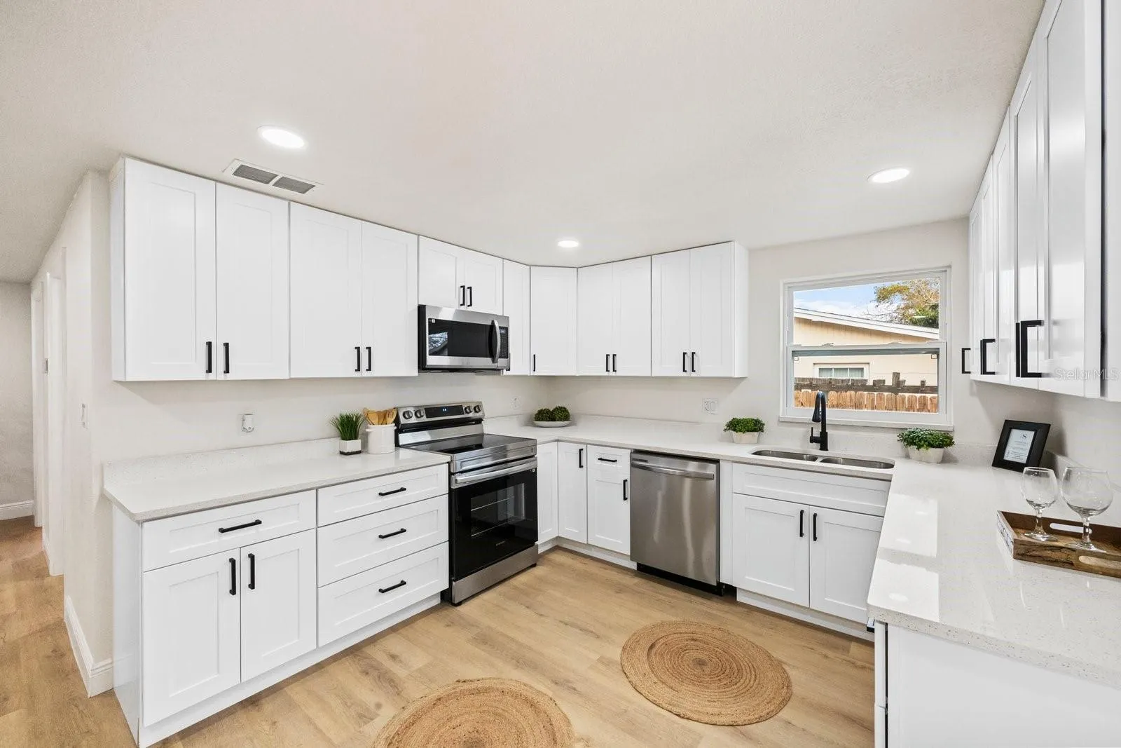Newly Renovated Home Located in Largo Florida! 3 Bedrooms, 2 Baths, with a Large Patio and Pool Area! Open Floor Plan Home with Spacious Kitchen with Sparkling Quartz Countertops, New Solid Wood and Soft Close Cabinetry, Plenty of Storage, and Recessed Refrigerator Area. Ample Natural Lighting, some impact Windows, a new 2023 Roof, and Two Outdoor Sheds! Large Primary Bedroom with two His and Hers Closets and Updated En-suite Bathroom with a Large Shower. Large Indoor Laundry Area with shelving and access to the side yard. New Sprinkler System, Freshly Sodded, Landscaped & Painted In both front and backyards. Generously sized backyard patio area and pool deck, perfect for entertaining or enjoying a beautiful Florida sunset by the pool! Huge Pool Newly Resurfaced with a 5-year warranty, a new Pump + Equipment! New Water Heater, updates Electrical ! This must-see home has it all; Centrally located and just minutes away from Largo Mall, Walsingham Park, & Indian Shores Beaches.