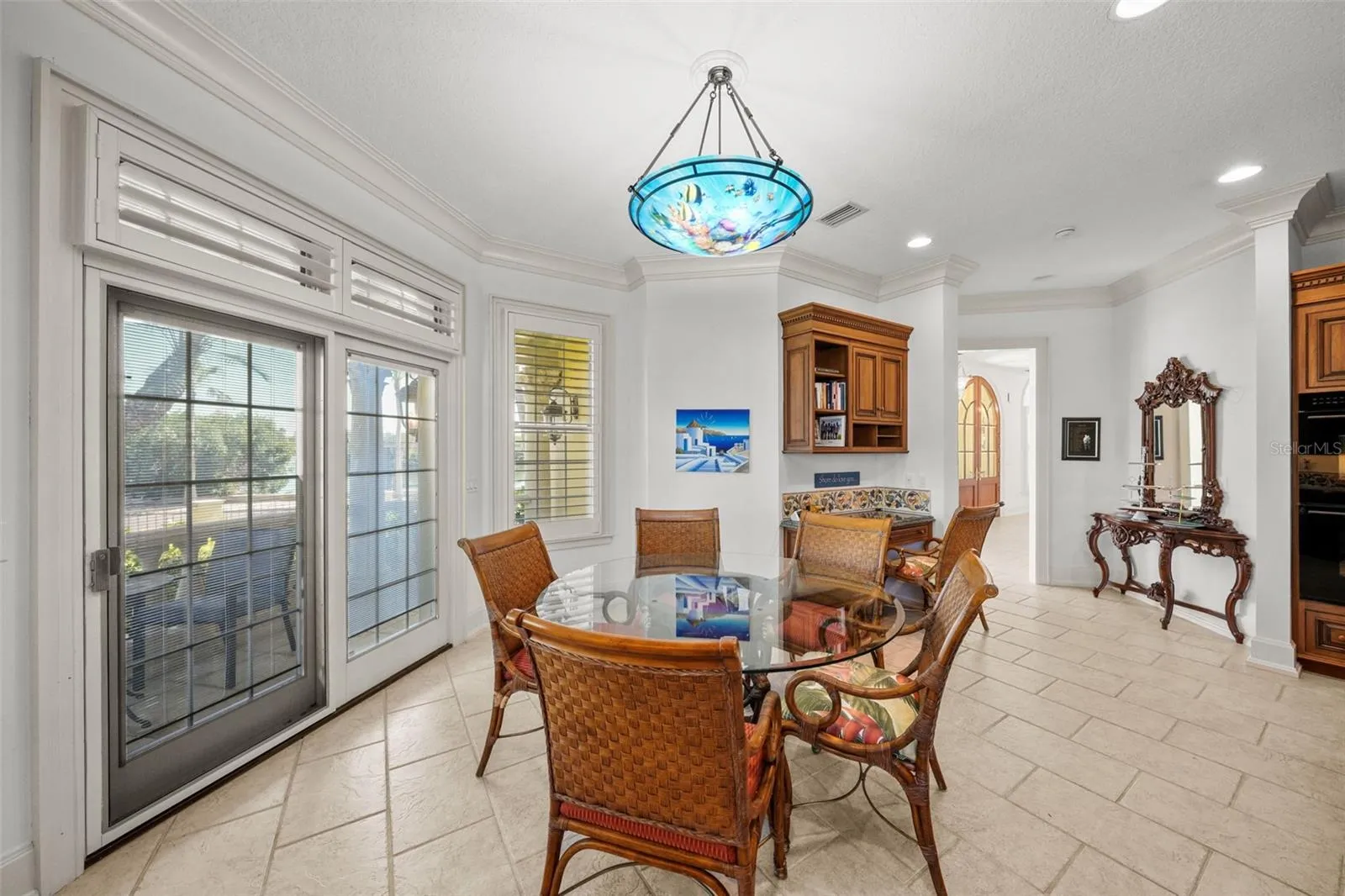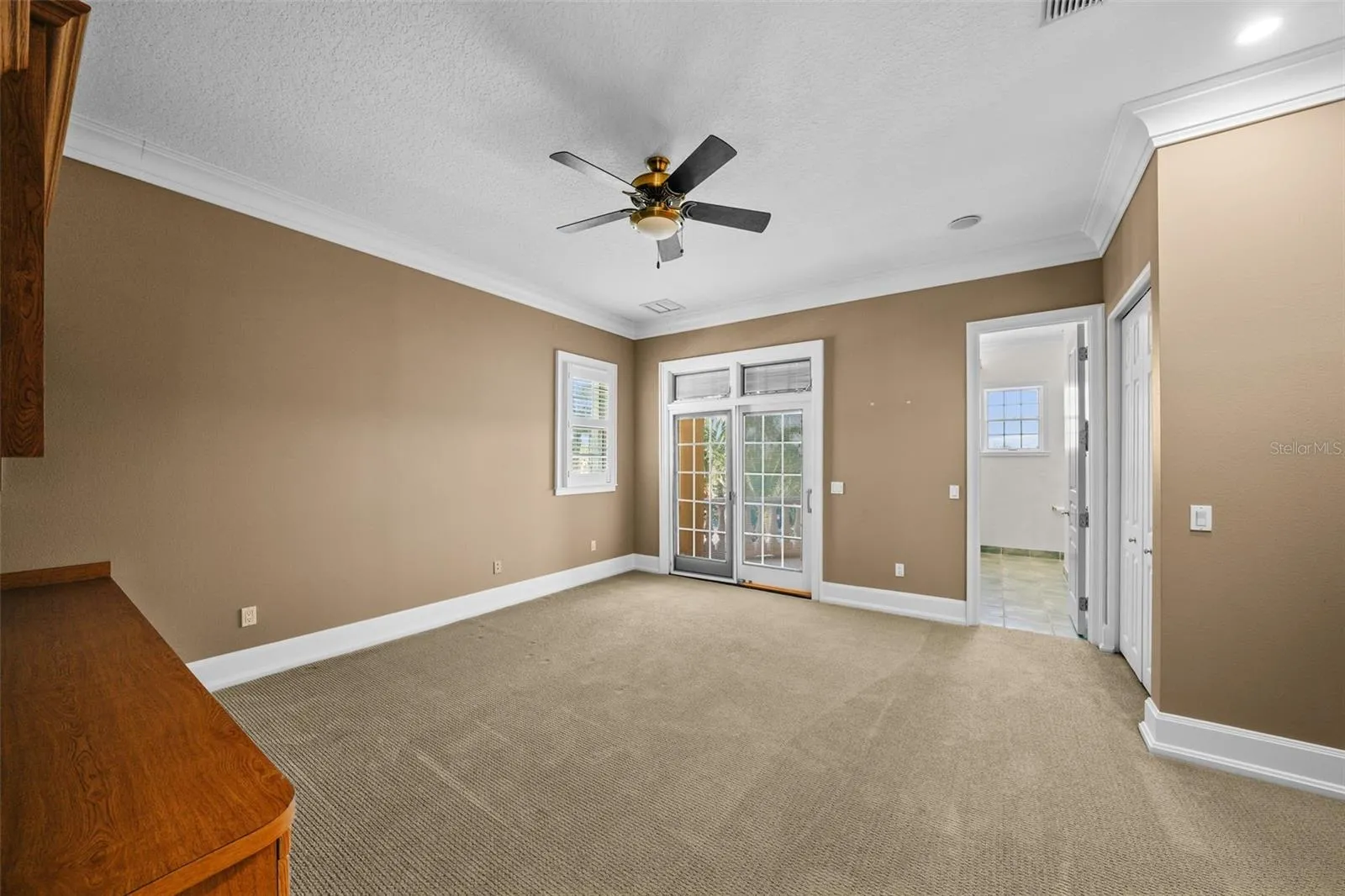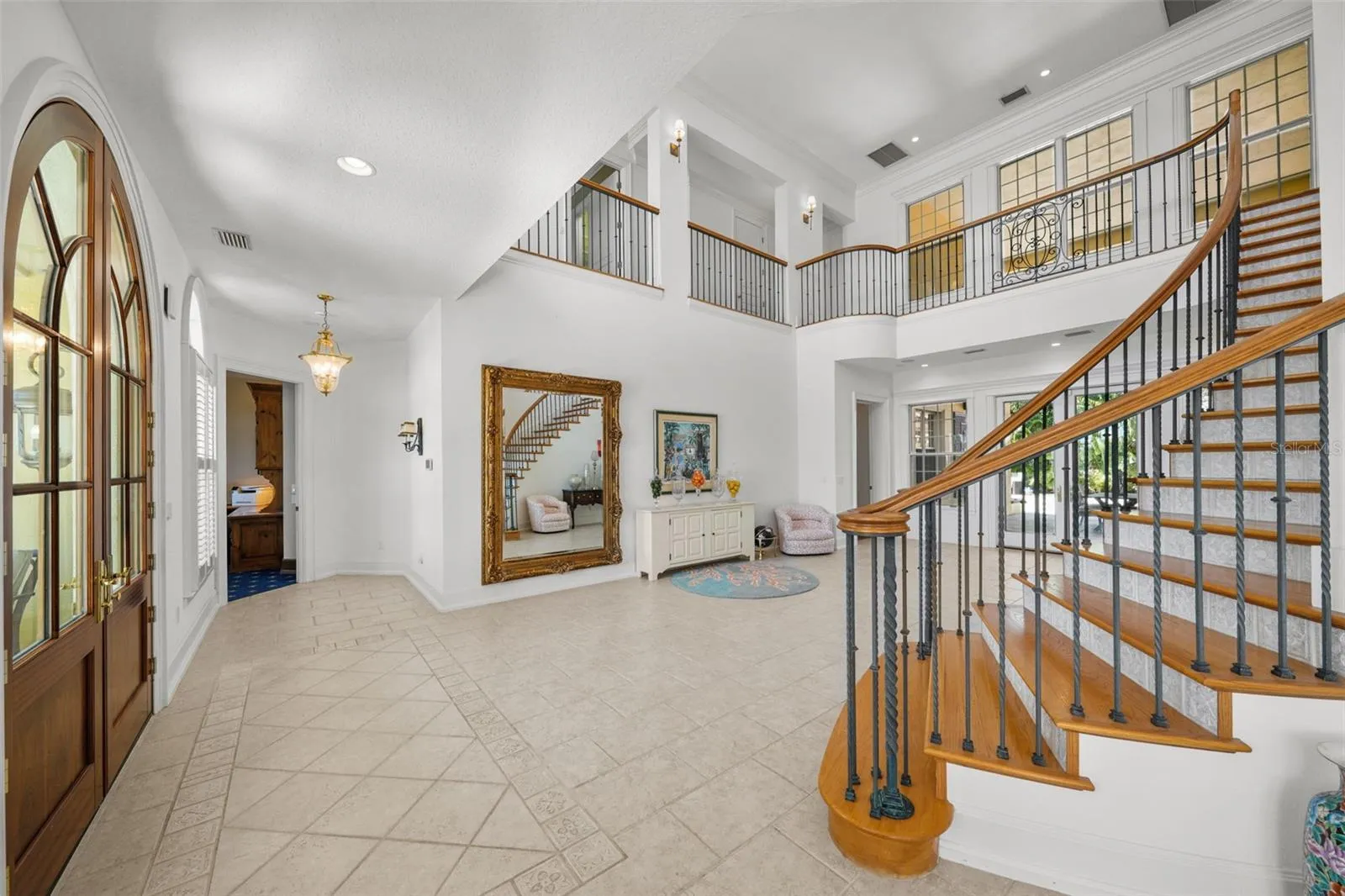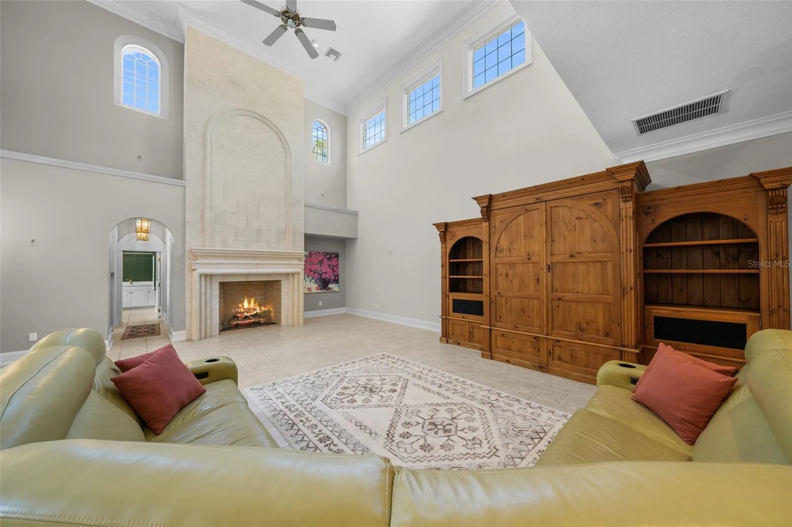- Crown Molding, Walk-In Closet(s), Kitchen/Family Room Combo, Window Treatments, High Ceilings, Stone Counters, Solid Surface Counters