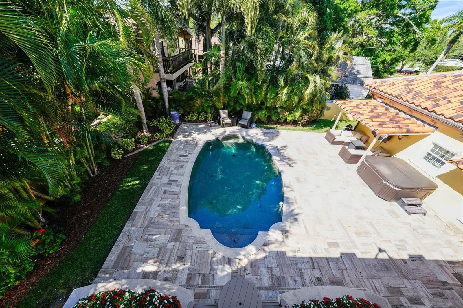 Step into the timeless elegance of Brightwaters with this unparalleled custom home, a true testament to luxury living in Downtown St. Petersburg’s most distinguished neighborhood. Crafted by a renowned local builder as their private residence, this masterpiece exudes opulence and sophistication at every turn. No detail has been overlooked in this meticulously designed sanctuary, boasting soaring ceilings up to 22 feet and a grand staircase that sets the stage for the extraordinary living space within. From the moment you enter through the custom-oak entrance door, you’ll be enveloped in a world of exquisite craftsmanship and unparalleled quality. The heart of the home lies in the expansive chef’s kitchen, featuring top-of-the-line appliances from SubZero, Wolf, Dacor, and Miele, complemented by custom cabinetry and breathtaking waterfront views from the adjoining breakfast porch. Entertain in style in the formal living room with its grand fireplace, or retreat to the secluded back garden and pool area for moments of tranquility and relaxation. The luxurious master suite is a haven of elegance and comfort, boasting a sprawling 274-square-foot closet and stunning views of the surrounding landscape. Three additional en-suite bedrooms offer ample space and privacy, while generous outside balconies provide the perfect vantage point to enjoy the breathtaking scenery. Outside, the property offers a wealth of amenities, including a 10,000-pound boat lift, a heated and cooled saltwater pool, a half basketball court, and ample parking space for guests. With its coveted location, unparalleled craftsmanship, and unmatched attention to detail, this is truly a once-in-a-lifetime opportunity to experience the best that Downtown St. Petersburg has to offer.