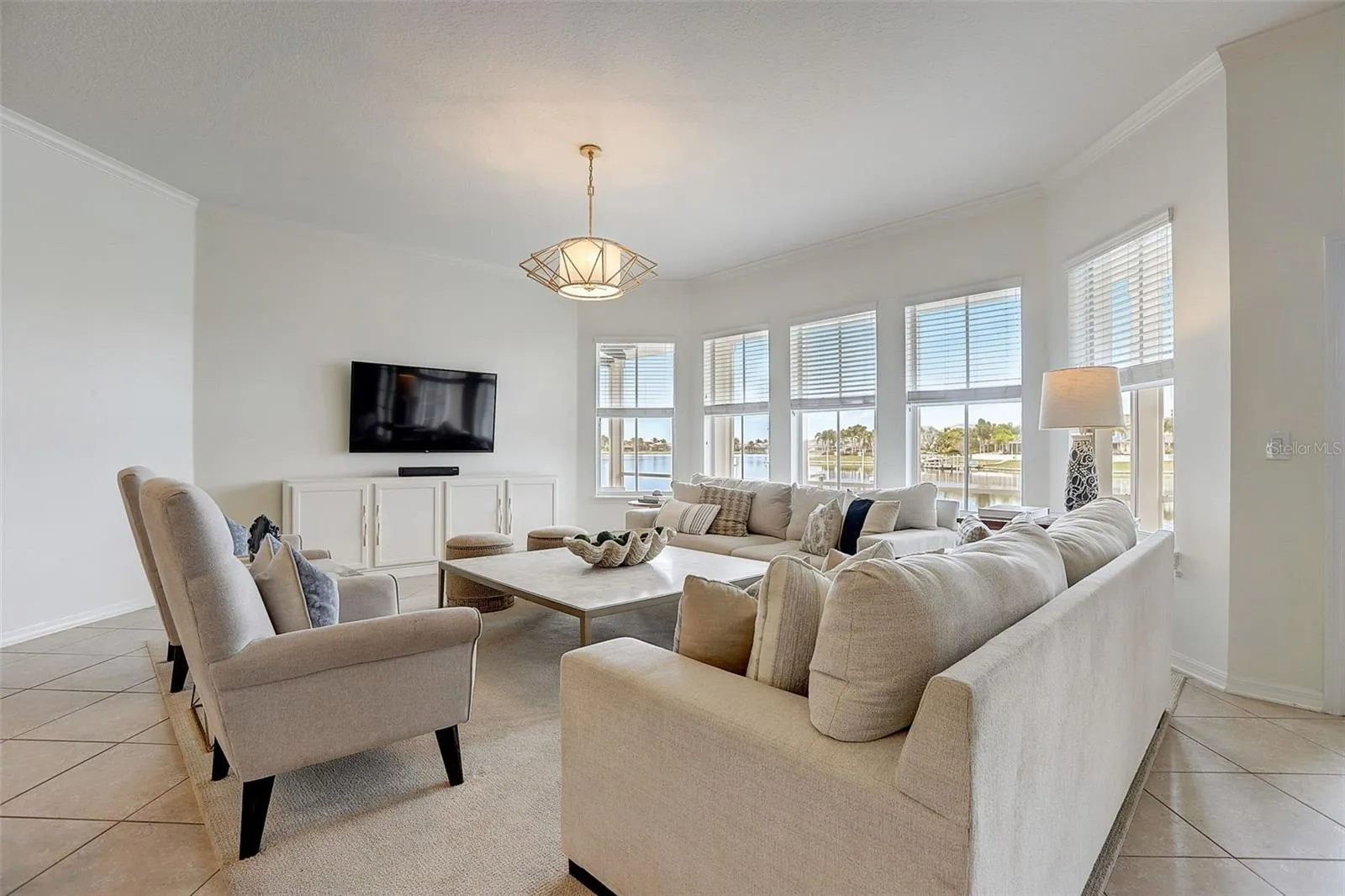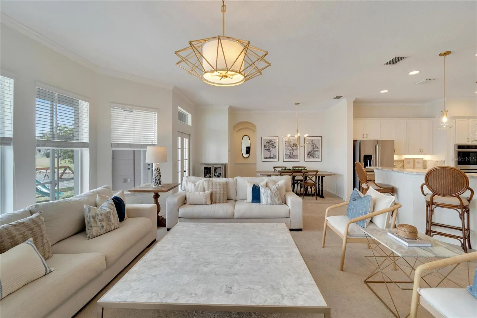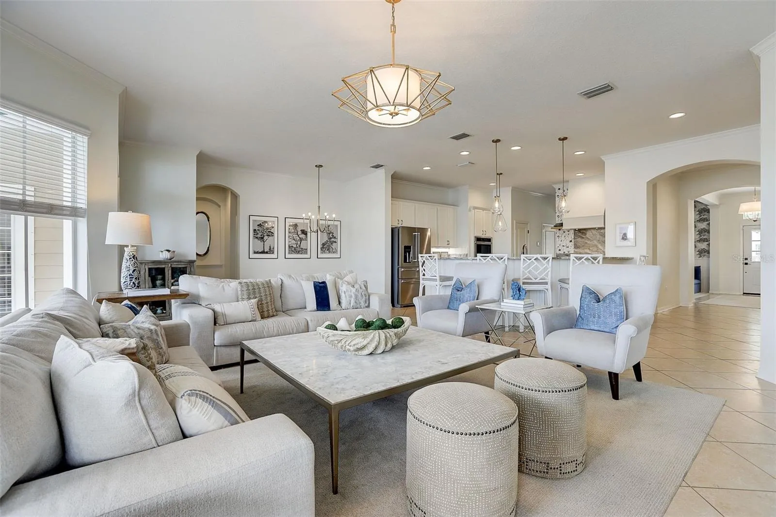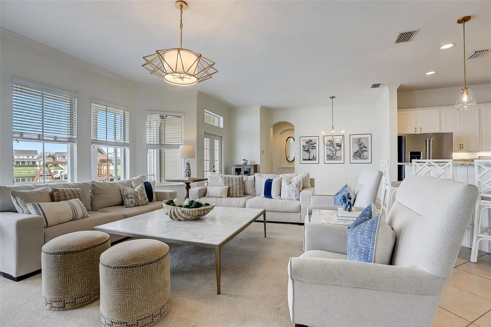 Welcome to your stunningly updated waterfront dream home at 5205 Brighton Shore Drive in the highly sought-after community of Mirabay in Apollo Beach, Florida. This beautifully renovated single-story 3- bedroom, 3-full bath home boasts high-end finishes throughout and the perfect floorplan for your waterfront living lifestyle. As you step inside, the open and inviting floor plan and natural light draw your attention to the breathtaking views of the Mirabay Lagoon, the perfect backdrop for your dream living experience. The living room features beautiful tile floors and high ceilings, ideal for entertaining guests or relaxing with family.