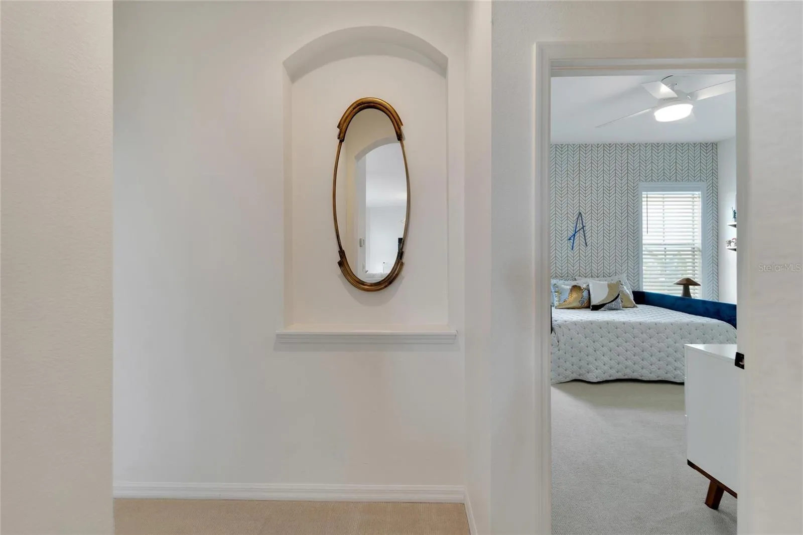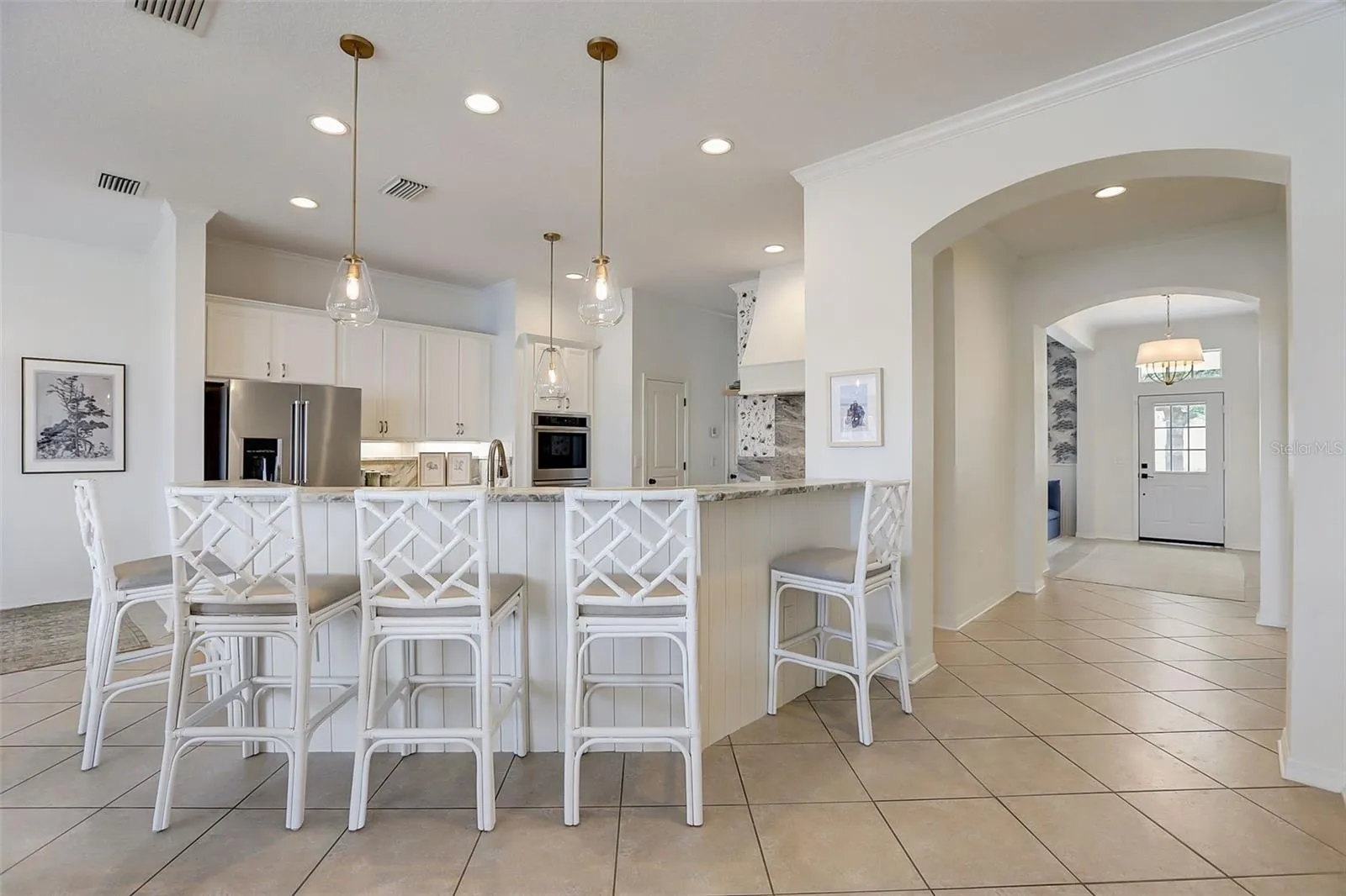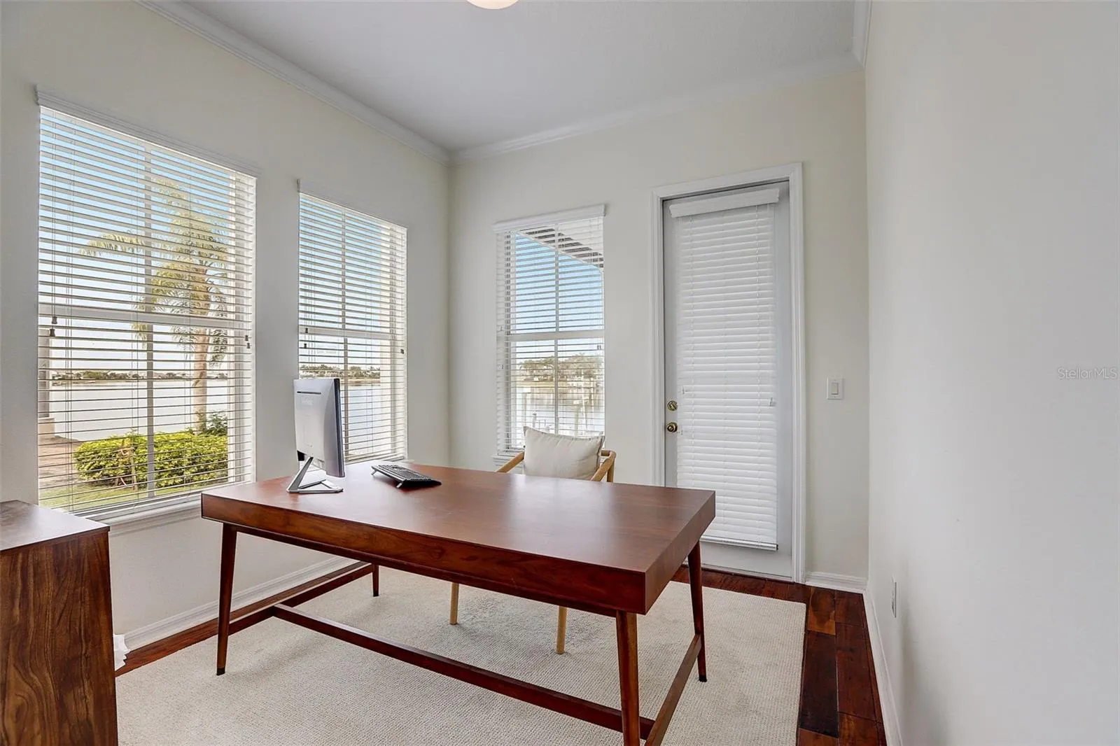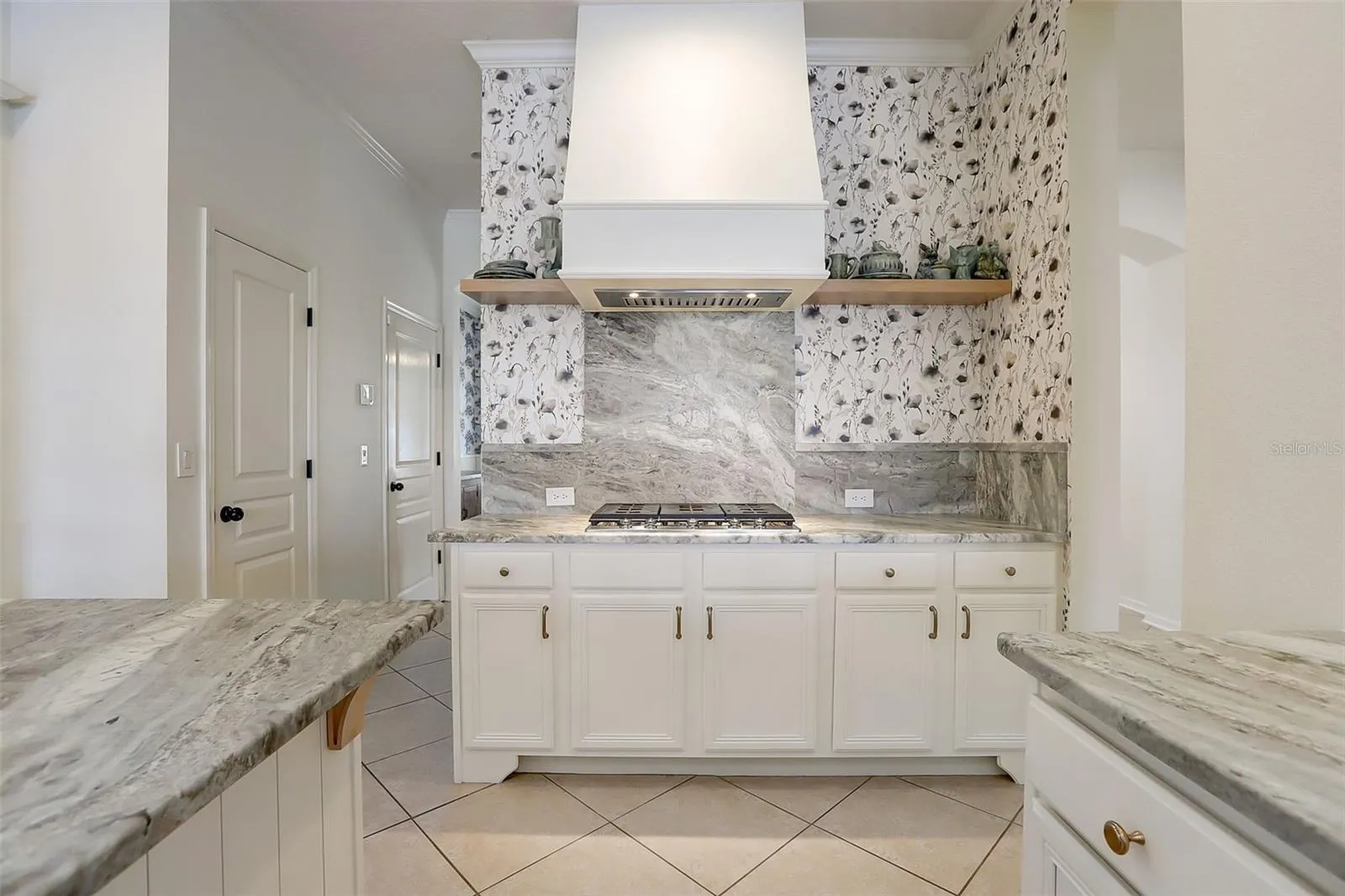 The flex room can be utilized as a formal dining space, office, or second living room. The completely remodeled kitchen features leathered quartz countertops and backsplash, a new gas cooktop, double ovens, custom vent, new sink, undercabinet lighting prewired, and upgraded touchless faucet. The adjacent dining area provides ample space for family dinners or casual meals. The spacious master suite features a large walk-in closet and an en-suite bathroom with dual sinks, a soaking tub, and a separate shower. A dedicated flex space in the master suite can be utilized to fit your needs, such as an office overlooking the lagoon, a workout area, or a morning reading nook. The two additional bedrooms aregenerously sized and sit opposite the master.