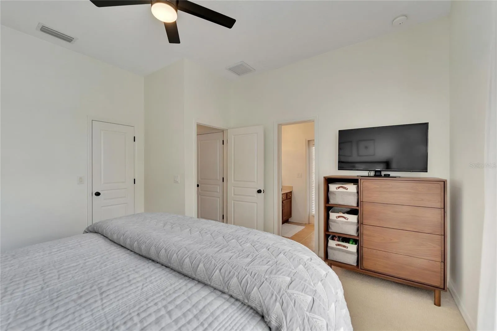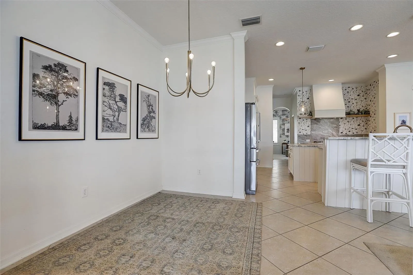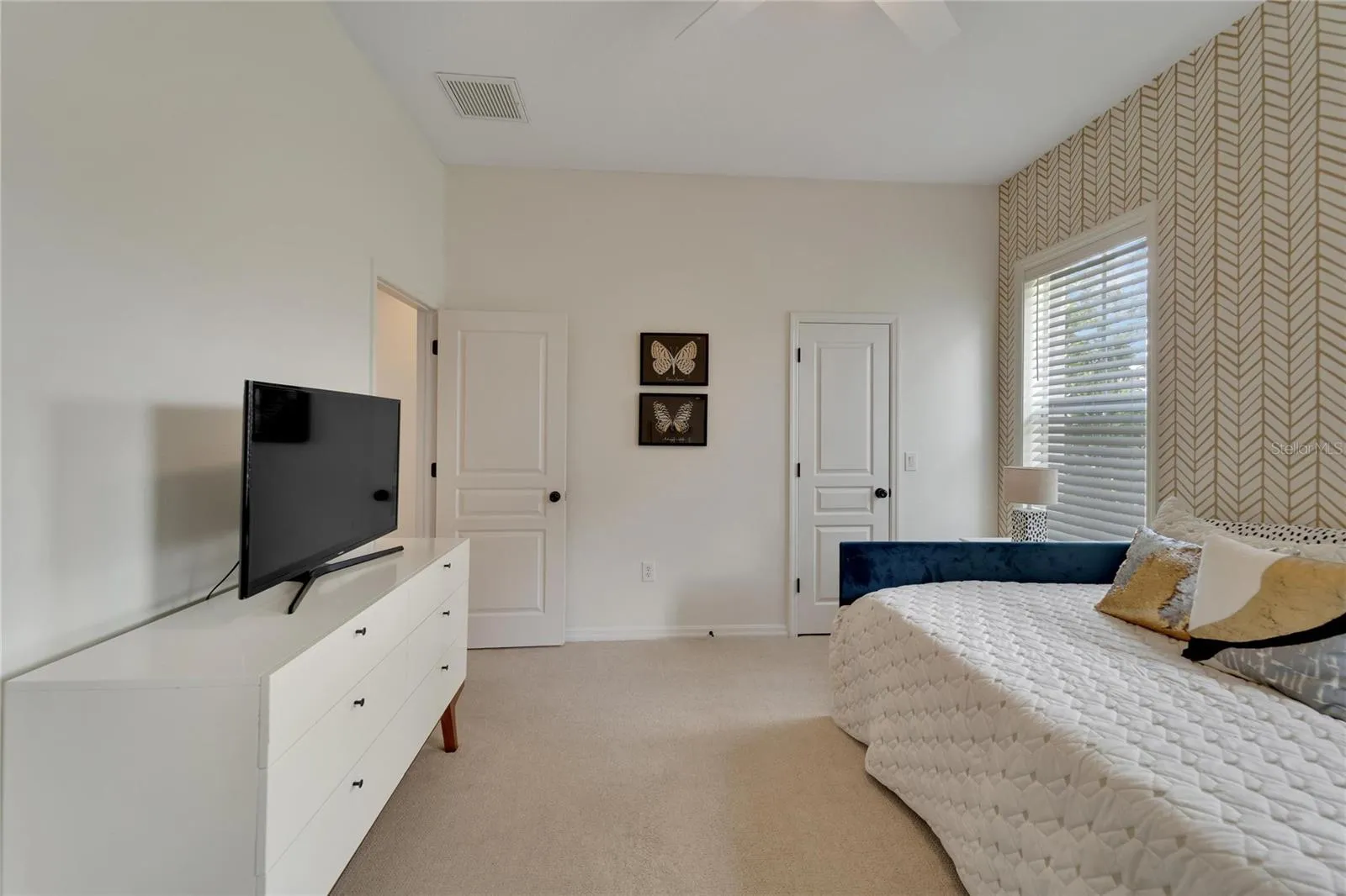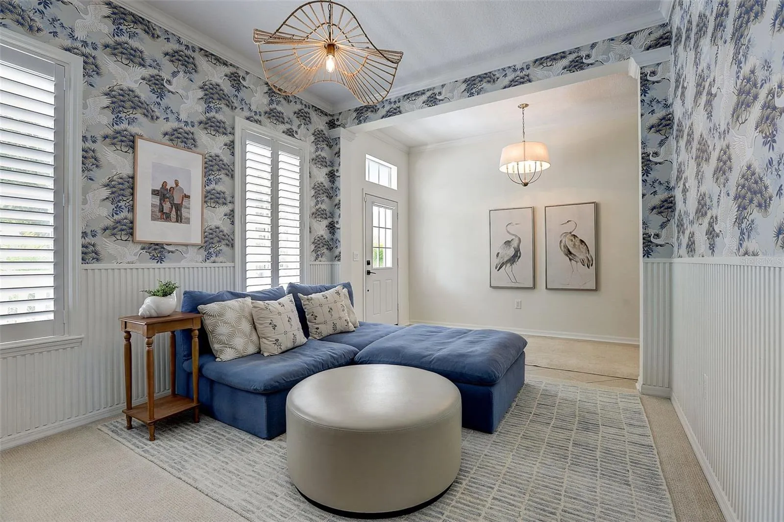 The flex room can be utilized as a formal dining space, office, or second living room. The completely remodeled kitchen features leathered quartz countertops and backsplash, a new gas cooktop, double ovens, custom vent, new sink, undercabinet lighting prewired, and upgraded touchless faucet. The adjacent dining area provides ample space for family dinners or casual meals. The spacious master suite features a large walk-in closet and an en-suite bathroom with dual sinks, a soaking tub, and a separate shower. A dedicated flex space in the master suite can be utilized to fit your needs, such as an office overlooking the lagoon, a workout area, or a morning reading nook. The two additional bedrooms aregenerously sized and sit opposite the master.