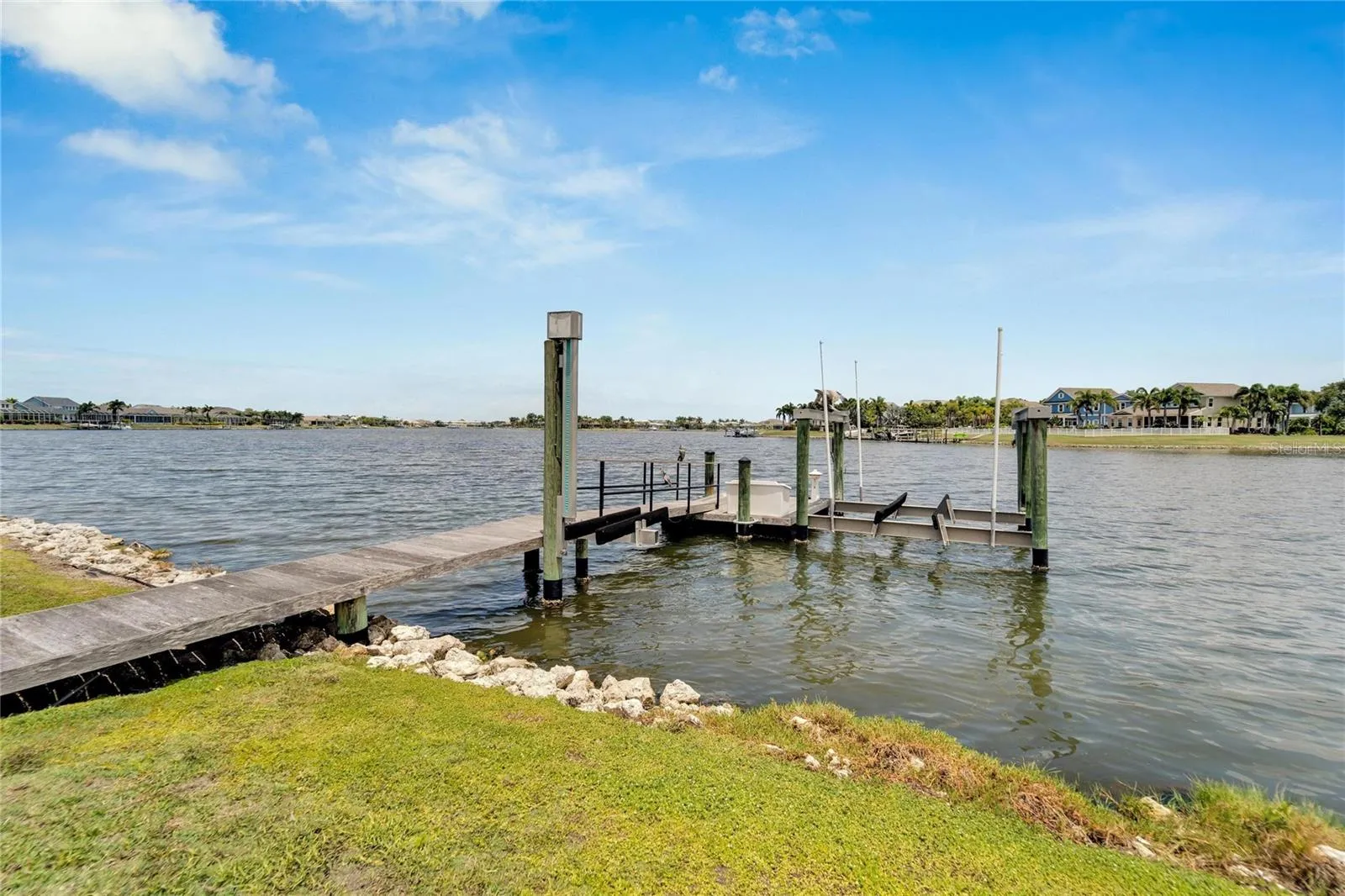 Other notable features of this home include a new roof (2019) with a 25-year warranty, a new hot water heater, new 5-ton HVAC system with UV light filter, new water softener, and new irrigation control station. The home also includes a 15,000 watt whole-home generator for added peace of mind. Outside, enjoy a lovely covered patio area with a new lanai screen overlooking the oversized backyard. Just steps from your back door is your own private boat dock with a 16,000-pound boat lift and jet ski lift, allowing you tobe on Tampa Bay within 15 minutes.