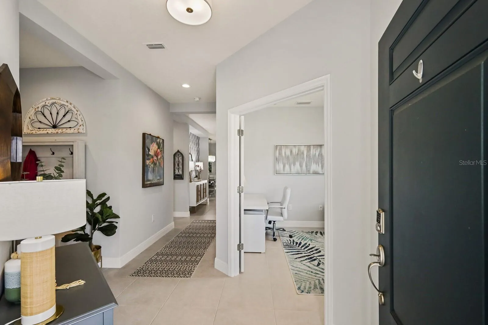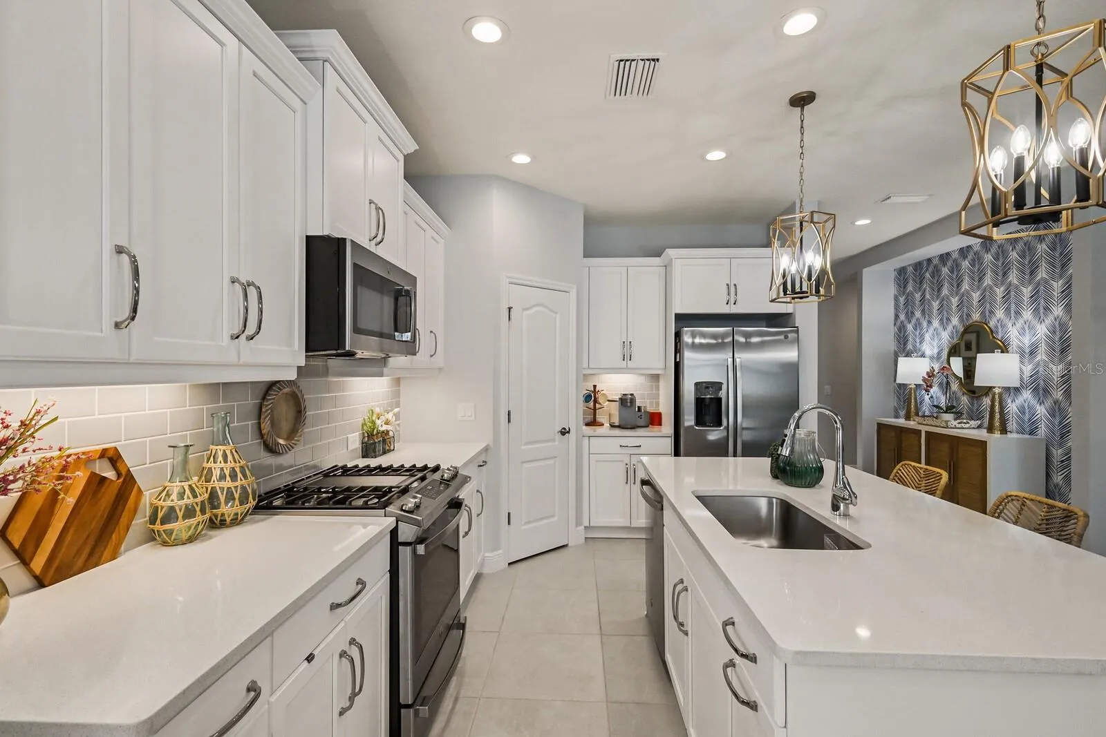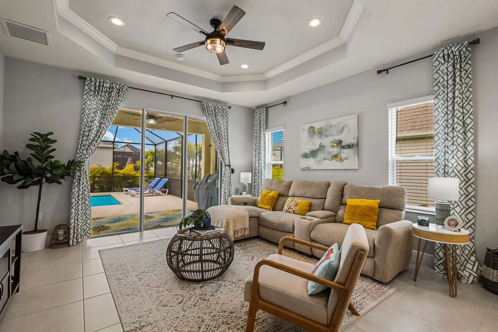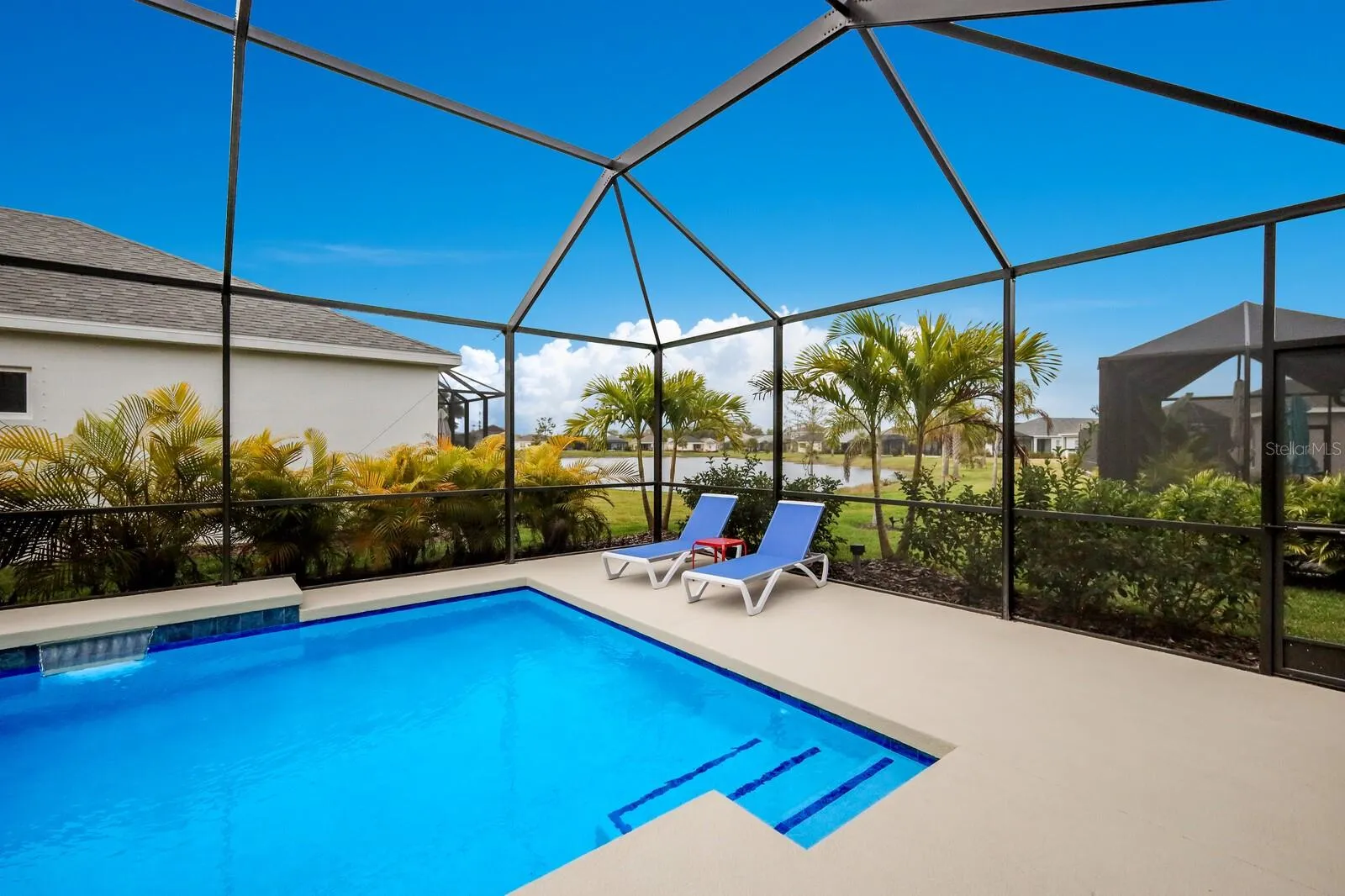 Experience breathtaking pond views while relaxing by your own saltwater POOL in this 2022 Neal built home! Welcome to this beautiful, well-maintained 3 bedroom 2 full bathroom PLUS den home in the amenity filled gated community of Silverleaf! As you enter the home, you will be greeted with a versatile den that can be used for a reading nook, home office, or an extra living space for when company arrives. Walking down the hall you will find two bedrooms with both having walk-in closets that are designed with comfort in mind. The wide-open living area features a light & bright kitchen, dining area and living room. The gourmet kitchen boasts a walk-in pantry, tile backsplash, stainless steel appliances, quartz countertops, under cabinet lighting and upgraded light fixtures. Entertaining is a breeze with an extended lanai showcasing a private pool with side pond views. Relax in your spacious primary retreat which features a large walk-in closet, dual quartz sinks and a walk-in shower. Silverleaf exhibits an abundance of amenities such as a resort style heated pool and spa, fitness center, playground, basketball court, soccer field, two dog parks and walking trails. The community is centrally located to 301 and I-75 where you are minutes away from the new Creekside Commons shopping center, two Publix grocery stores, Ellenton Premium Outlets and multiple restaurants. You have a selection of three close airports nearby making it easy to travel. If the beach is calling your name, you have some of the world’s best beaches about 35mins away. This immaculate move-in ready home is ready for you! Room Feature: Linen Closet In Bath (Primary Bedroom).