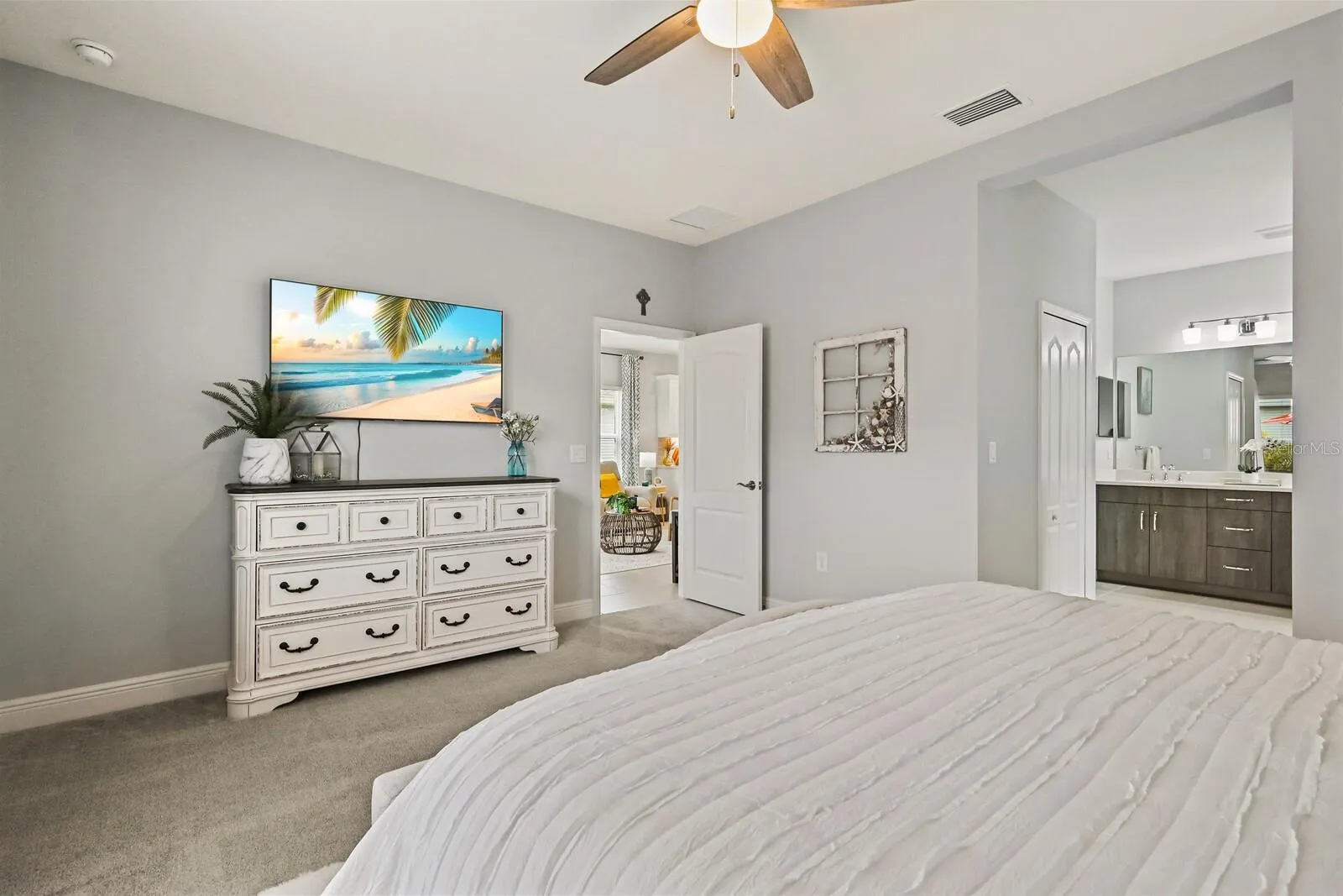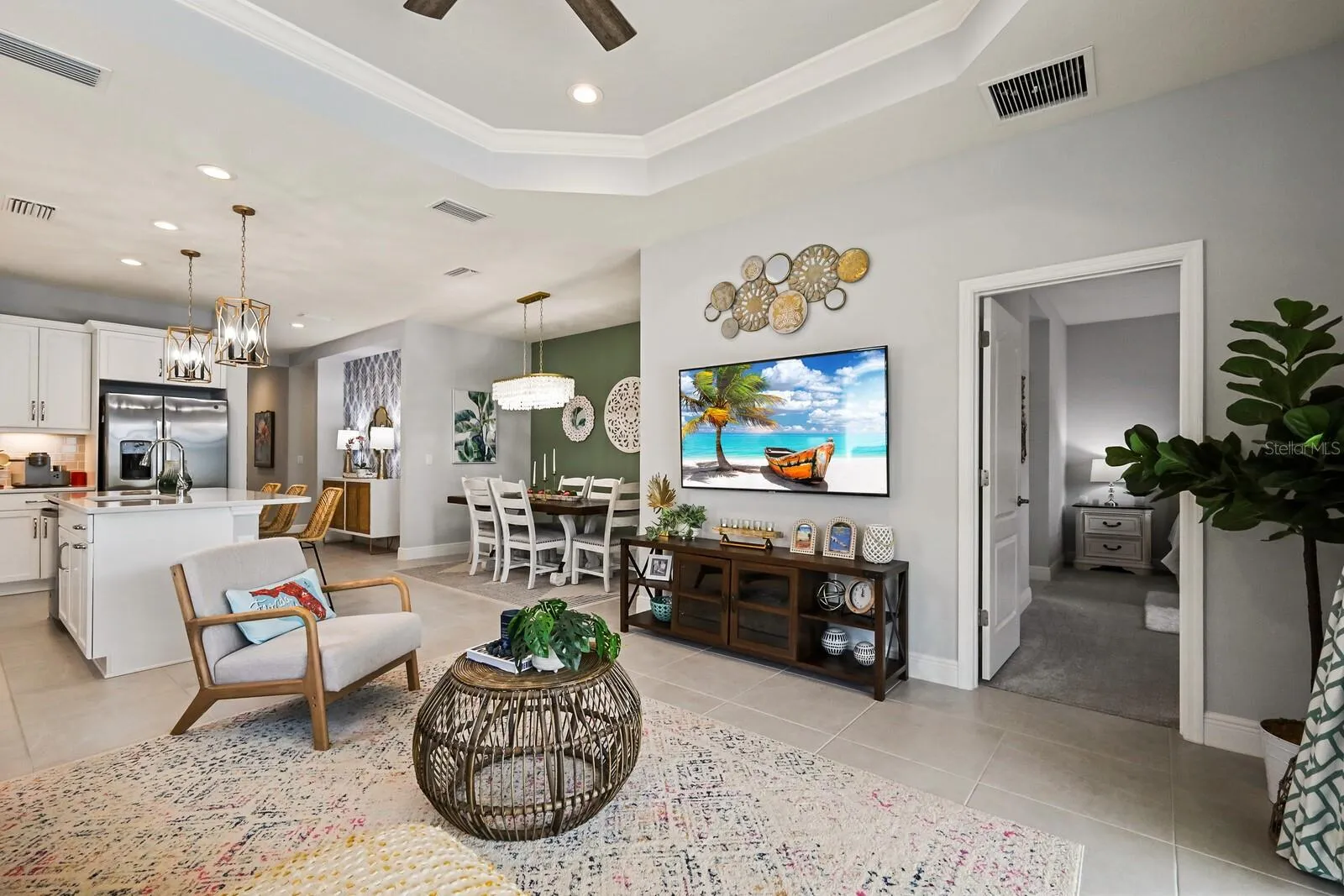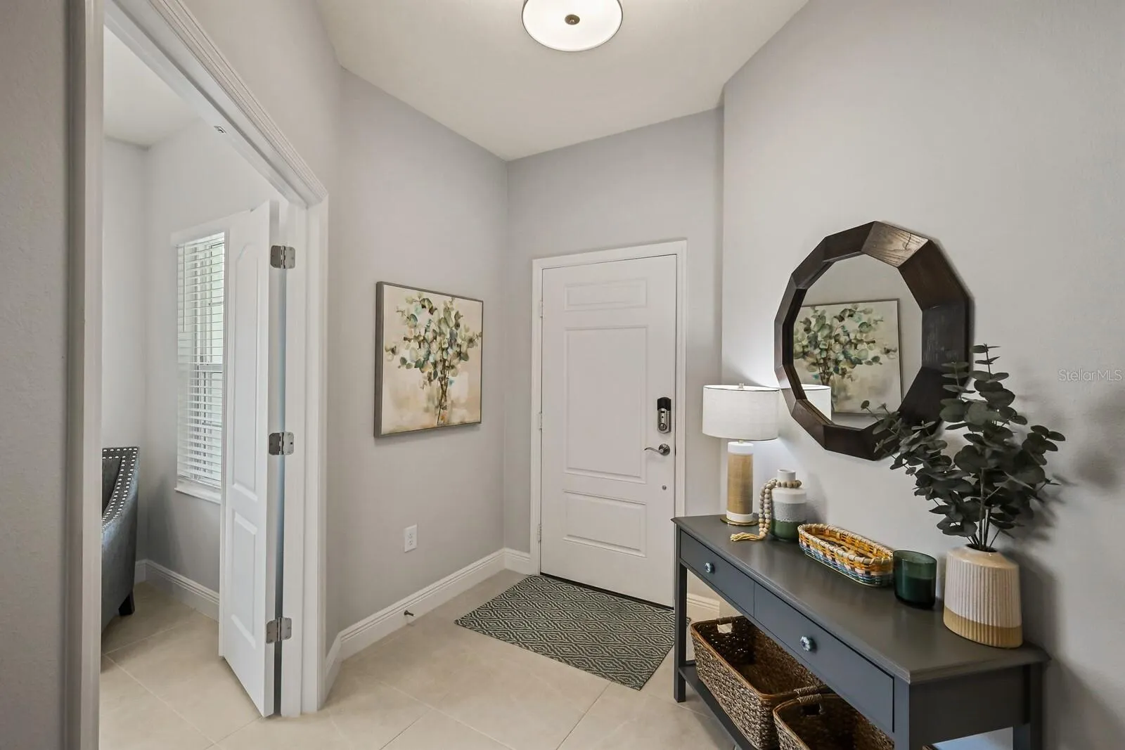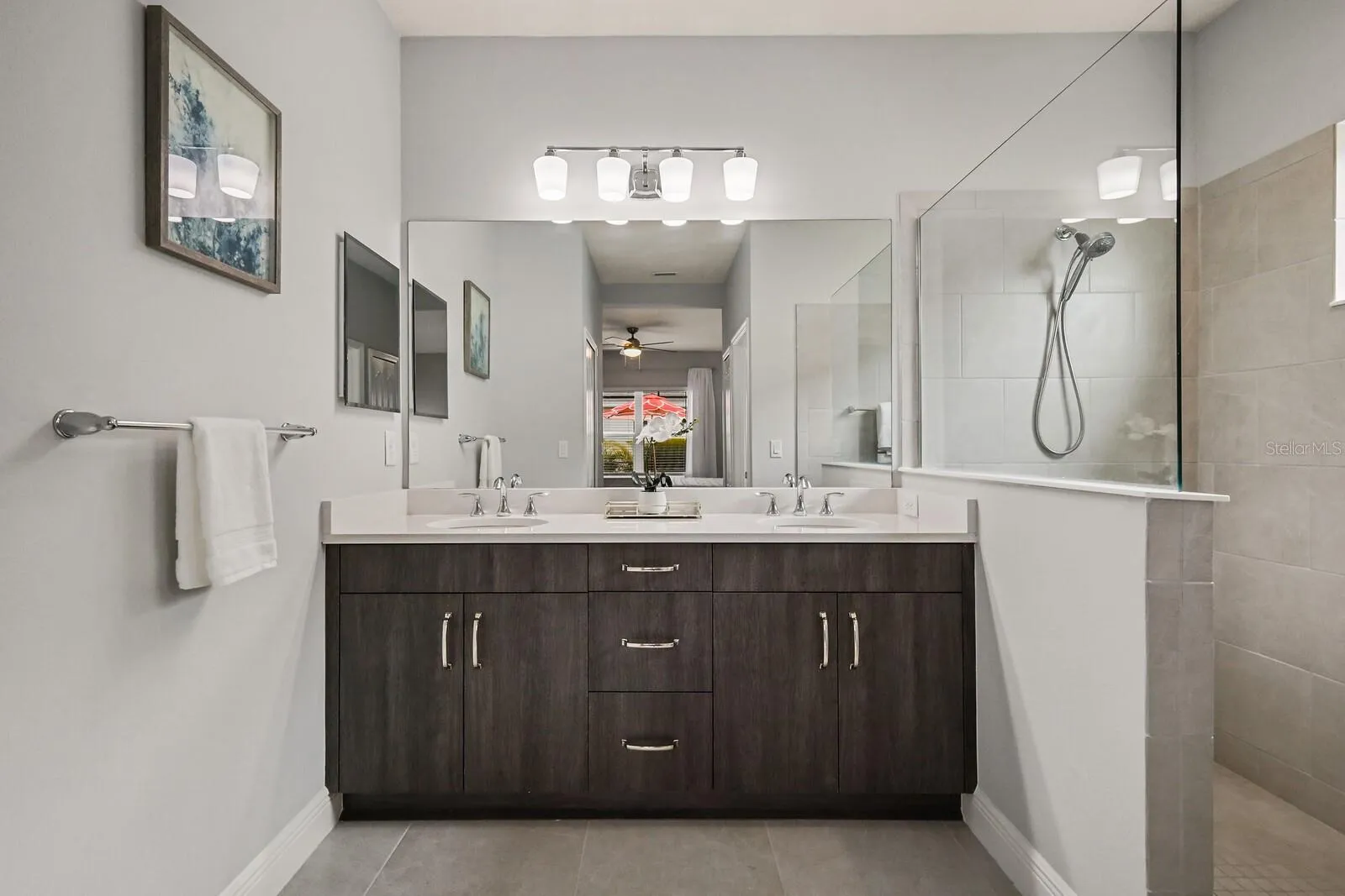 Experience breathtaking pond views while relaxing by your own saltwater POOL in this 2022 Neal built home! Welcome to this beautiful, well-maintained 3 bedroom 2 full bathroom PLUS den home in the amenity filled gated community of Silverleaf! As you enter the home, you will be greeted with a versatile den that can be used for a reading nook, home office, or an extra living space for when company arrives. Walking down the hall you will find two bedrooms with both having walk-in closets that are designed with comfort in mind. The wide-open living area features a light & bright kitchen, dining area and living room. The gourmet kitchen boasts a walk-in pantry, tile backsplash, stainless steel appliances, quartz countertops, under cabinet lighting and upgraded light fixtures. Entertaining is a breeze with an extended lanai showcasing a private pool with side pond views. Relax in your spacious primary retreat which features a large walk-in closet, dual quartz sinks and a walk-in shower. Silverleaf exhibits an abundance of amenities such as a resort style heated pool and spa, fitness center, playground, basketball court, soccer field, two dog parks and walking trails. The community is centrally located to 301 and I-75 where you are minutes away from the new Creekside Commons shopping center, two Publix grocery stores, Ellenton Premium Outlets and multiple restaurants. You have a selection of three close airports nearby making it easy to travel. If the beach is calling your name, you have some of the world’s best beaches about 35mins away. This immaculate move-in ready home is ready for you! Room Feature: Linen Closet In Bath (Primary Bedroom).