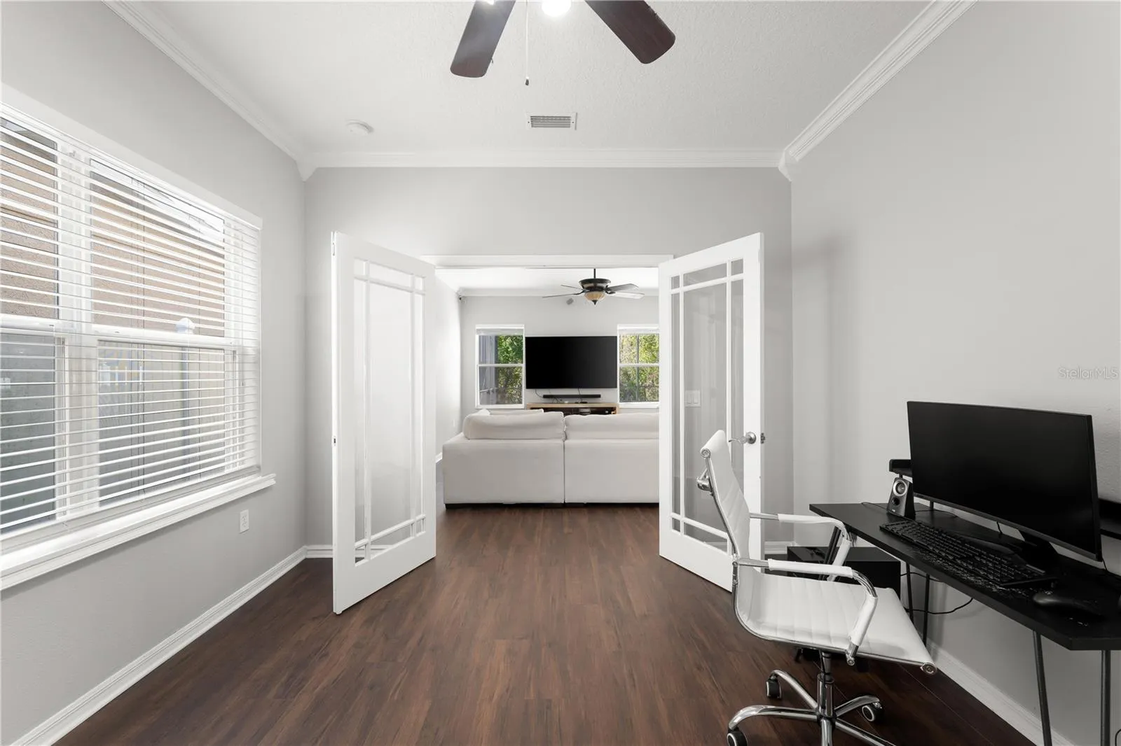 One or more photo(s) has been virtually staged. New Roof to be put on before closing! Welcome to your new home in the beautiful River Chase Subdivision! This immaculate 4 bedroom, 3 bathroom residence boasts move-in ready convenience and stunning updates throughout. Seller just purchased brand new stainless kitchen appliances! Relax and entertain in style with a screened-in saltwater pool offering tranquil views of the conservation area. The primary bedroom suite, complete with a spacious walk-in closet, is conveniently located upstairs along with the laundry room. Downstairs, a versatile office space awaits, easily convertible to a 5th bedroom to suit your needs. Situated in a highly-rated school zone, this home offers the perfect blend of luxury and practicality. With low HOA fees and no CDD, you can enjoy peace of mind while taking advantage of recent upgrades, including a 2020 HVAC system, quartz countertops in the kitchen and bathrooms installed in 2021, luxurious vinyl flooring throughout the home also added in 2021, and 2-inch blinds on all windows