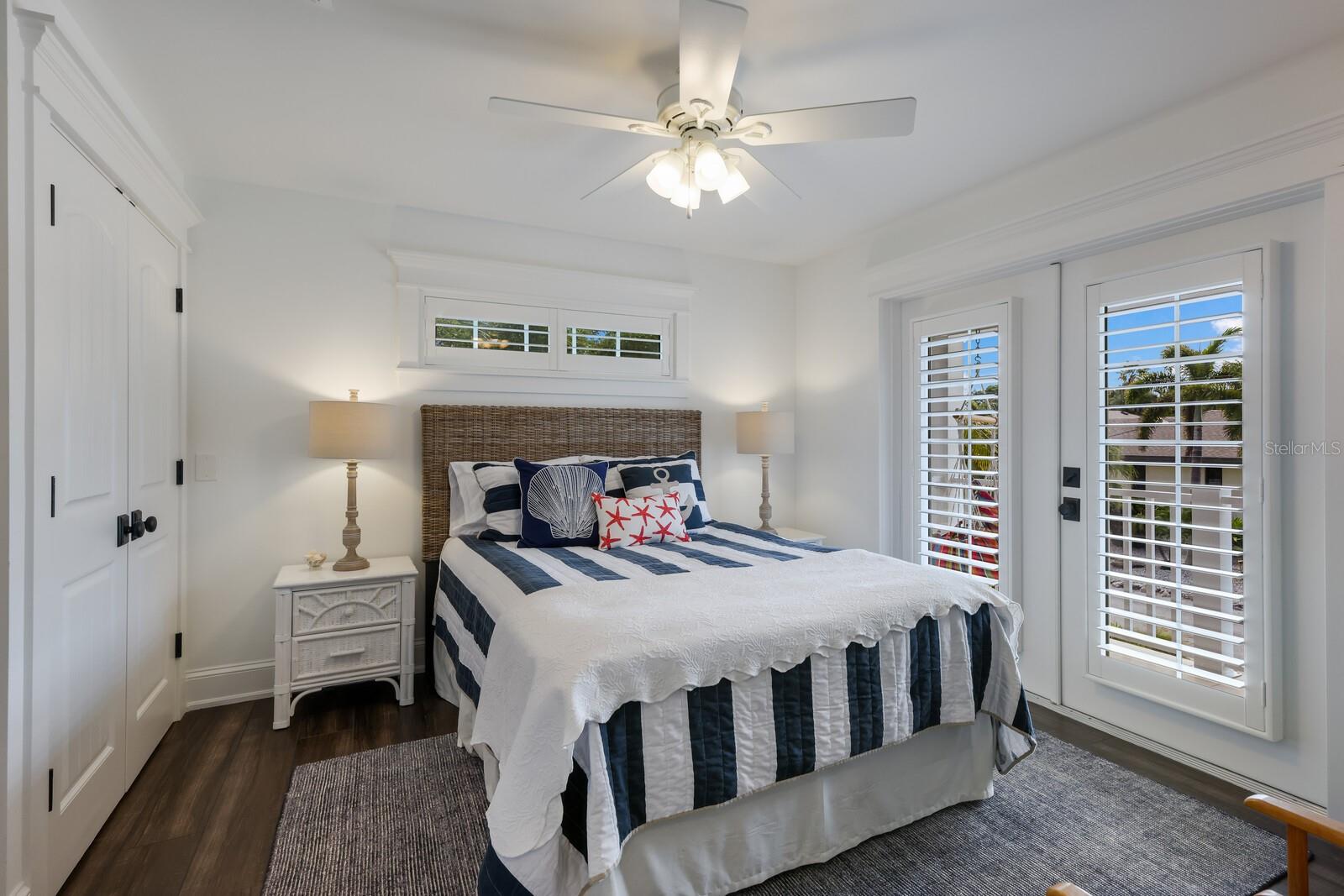 The primary suite is something to talk about all on a floor of its own! The custom wood work is a site to see, private covered porch to enjoy your morning coffee and lovely water views, extra-large walk-in closet and a ton of room – enough to have a sitting area to watch your favorite show in private! The exceptional en-suite primary bathroom offers dual vanities, stone counters, fabulous walk in shower, water closet, and a soaking tub where you can relax and see those gulf beach views too!
