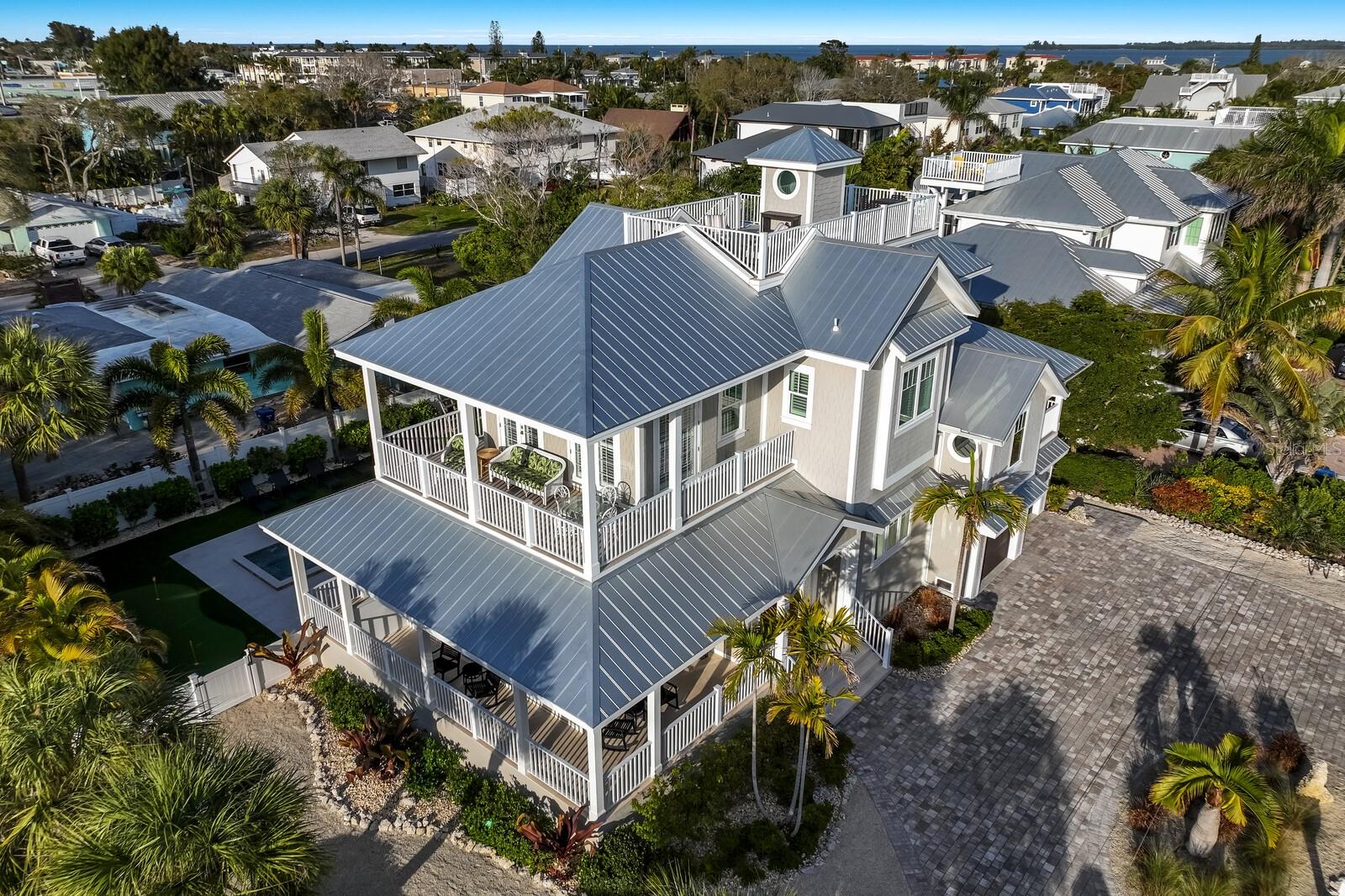 Sitting on a large corner lot and on a quiet street, this dazzling home is just 25 steps to the beach – YES 25 steps to the gulf beach! Not in the mood to get your toes sandy, no problem! You can take it the beautiful gulf views and sunsets from multiple rooms inside the home, covered porches off each bedroom, the wrap around front porch, OR the fabulous roof top deck! There is nothing like ending the day with your favorite beverage while watching those splendid AMI sunsets.