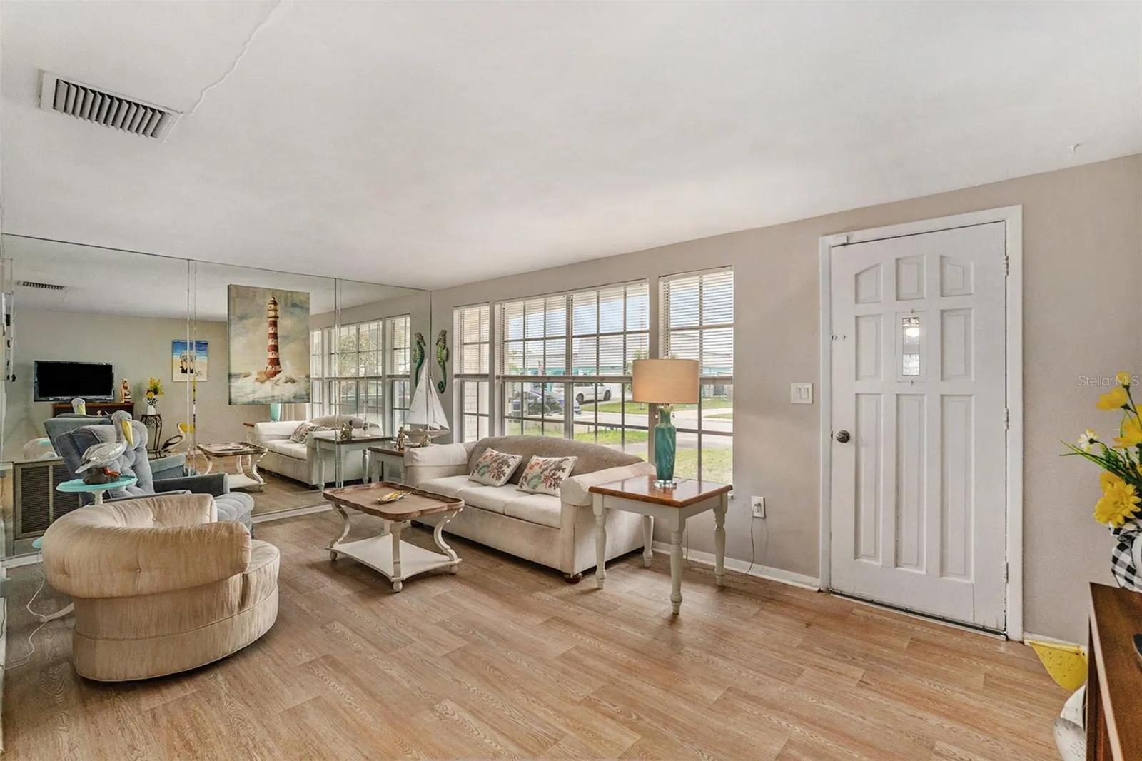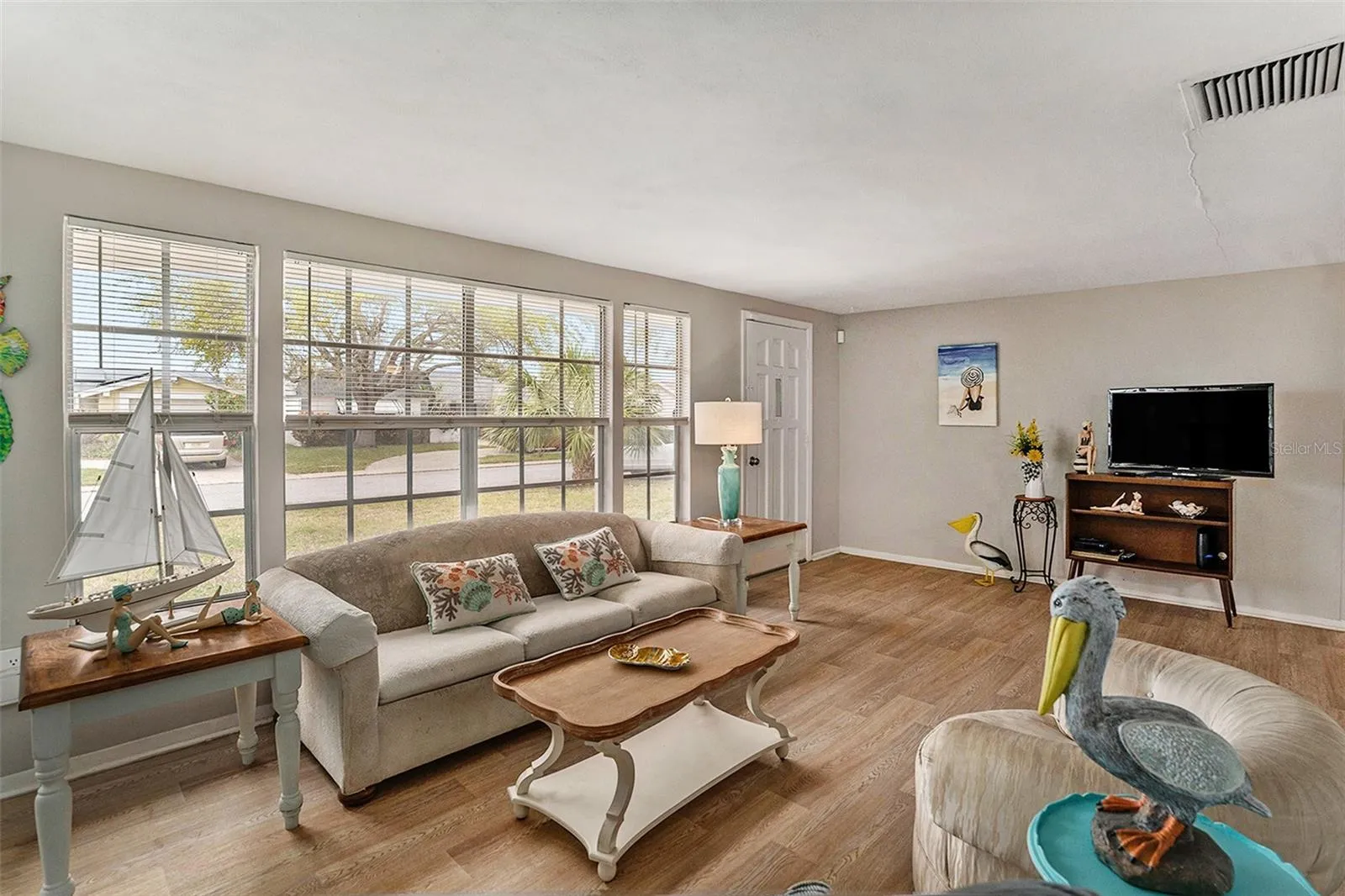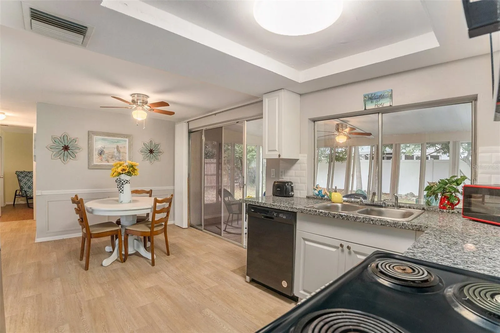 Welcome home to this meticulously updated home at 3634 Grayton Drive in New Port Richey, Florida. This charming residence, nestled in a peaceful neighborhood. As you approach this home, you are greeted by the great curb appeal, and a new roof. The facade, with its clean lines and inviting entryway, sets the tone for the welcoming atmosphere that lies within. Step inside to discover a spacious living room awash with natural light streaming through large windows, highlighting the fresh, neutral palette and the elegant laminate flooring that flows seamlessly throughout the home. This is a space designed for relaxation and social gatherings, adorned with tasteful decorations and a layout that encourages comfortable living. The heart of the home is undoubtedly the combined dining and kitchen area, where a new HVAC system ensures year-round climate control. The kitchen, boasting white cabinetry and sleek granite countertops, is equipped with modern appliances and provides a view to the dining space, making it ideal for entertaining guests or enjoying family meals. The bedrooms are sanctuaries of peace and quietude, each offering ample space, natural light, and the comfort of plush carpeting underfoot. The bathroom echoes the home’s aesthetic with clean lines, modern fixtures, and a shower designed for ease and accessibility. One of the highlights of this home is the seamless integration of indoor and outdoor living. A cozy screened patio provides the perfect backdrop for a backyard BBQ or a quiet retreat with views of the well-maintained backyard. The outdoor space is a canvas for gardening enthusiasts or those who dream of creating an oasis of their own. Additional peace of mind comes from the new water heater and electric panel, ensuring that the home’s major components have been updated to meet contemporary standards. Located in the thriving area of New Port Richey, you’ll find yourself close to local shopping, dining, and entertainment options, with easy access to the natural beauty of Florida’s beaches and parks. Don’t miss the opportunity to make 3634 Grayton Drive your new home today!