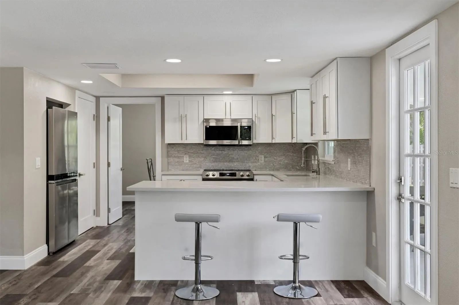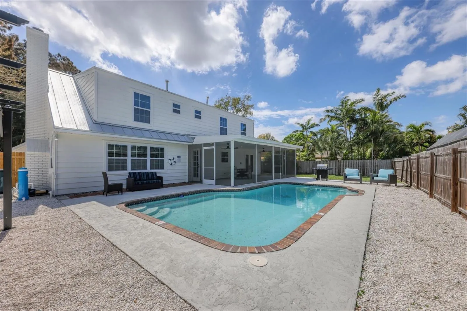 Seller now offering a $20,000 credit towards Buyer’s rate buy down and/or closing costs. Discover the epitome of modern living in this newly updated home, nestled in a private cul-de-sac and adjacent to serene, wooded community space. With no HOA or deed restrictions, you’ll enjoy the freedom to park your boat or RV on the oversized side yard or make this a short-term vacation rental. You’ll experience peace of mind and insurance premium savings with new hurricane-rated windows, new metal roof and higher lot elevation. This 4 bedroom, 3 bath home has luxury vinyl plank flooring throughout for a cohesive look. Kitchen has soft close cabinets and drawers and new stainless appliances, combining functionality with style. Kitchen opens to the spacious family room with gas burning fireplace and overlooks the backyard. Resurfaced pool beckons relaxation and enjoyment and new electric pool heater and filter pump provide year-round comfort. Perfect rear Northern exposure provides sun on the pool most of the day and new irrigation system helps keep the grass green. Downstairs bedroom could be used as a formal dining room or in-law suite. Upstairs primary bedroom has ample closet space and private bath. Two additional upstairs bedrooms share a generous hall bath. In close proximity to the Gulf beaches, downtown Riverwalk, Robinson Preserve and DeSoto National Park for endless recreation and exploration. You won’t want to leave your peaceful haven but you should to enjoy all that NW Bradenton has to offer including the convenience of being just moments away from plenty of shopping, dining and entertainment options.