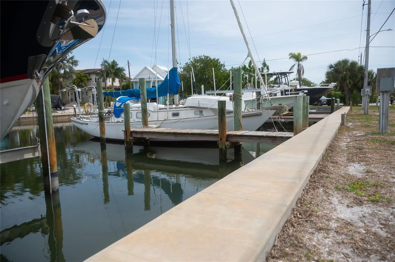 Holmes Beach Boat Slip 14 x 30 with 25 ft dock. Newer seawall with both electric and water available. Located in the boat basin between 68th and 69th St. Boat slip 11. No bridges to the Gulf. New Survey available.