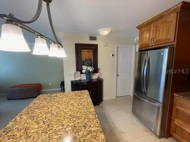 LOCATION, LOCATION LOCATION! ON TOP OF THE WORLD! MOVE IN CONDITION! GORGEOUS UNIQUE AND COMPLETE UPDATED GROUND FLOOR CONDOMINIUM, ONE BEDROOM, ONE BATH AND BONUS ROOM!!! ASIGNED PARKING SPACE IT IS IN FRONT OF YOUR FRONT DOOR! AND ALSO A VISITOR PARKING SPOT NEXT TO IT!  Located at On Top Of The World Retirement Condominium Community. This unit has a front foyer and covered private patio for your enjoyment of the nice Florida weather. As soon as you enter your condo you will see the interior open floor plan that boasts ceramic tile flooring and crown moldings in the ceilings throughout the whole condo. It has a spacious living room area and at the end the updated kitchen with wood cabinets, granite tops, elegant backsplash mirror, stainless steel double sink with newer modern faucets, newer stainless steel appliances, (a specious 3 door refrigerator, range, top range, dishwasher and microwave), an island in the middle of the kitchen with granite top, very convenient as counterspace when you cook or as an eat in space. All kitchen has modern light fixtures for a brighter  kitchen! Before you enter the bonus room, there is a complete updated bathroom with elegant tile top to bottom, fancy oval mirror, newer vanity with stone top and a spa tub with a water fall shower. Then the bonus room and next at the end Your master bedroom has 2″ window blinds, and  access to your back patio trough a blind integrated door. All doors are upgraded panel doors throughout. AC installed in 2018. Just updated GFCI electrical. On Top of the World its a community in Clearwater that’s offers two pools (one heated), two golf courses (free to owners), tennis courts, shuffleboard, pickleball, pool tables, dog park, fitness center, clubs, entertainment and much more. Close to award winning beaches, great restaurants, shopping, medical and 25 minutes to Tampa International Airport. Come before this gets sold! (bed on primary room, oil paint in bathroom and mirror on top of oval furniture do not convey), if you do not want the furniture will be removed.
