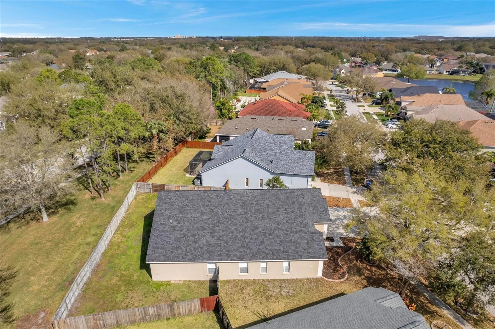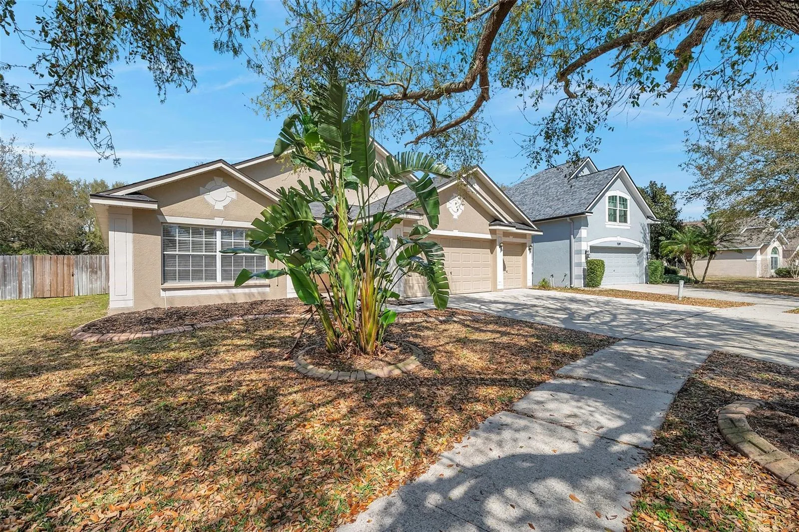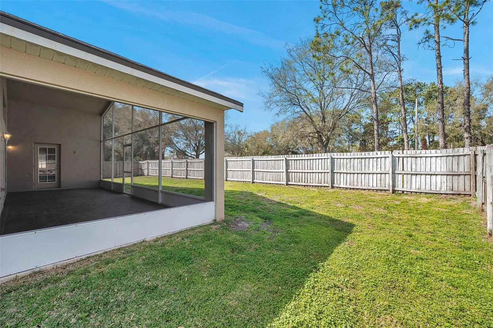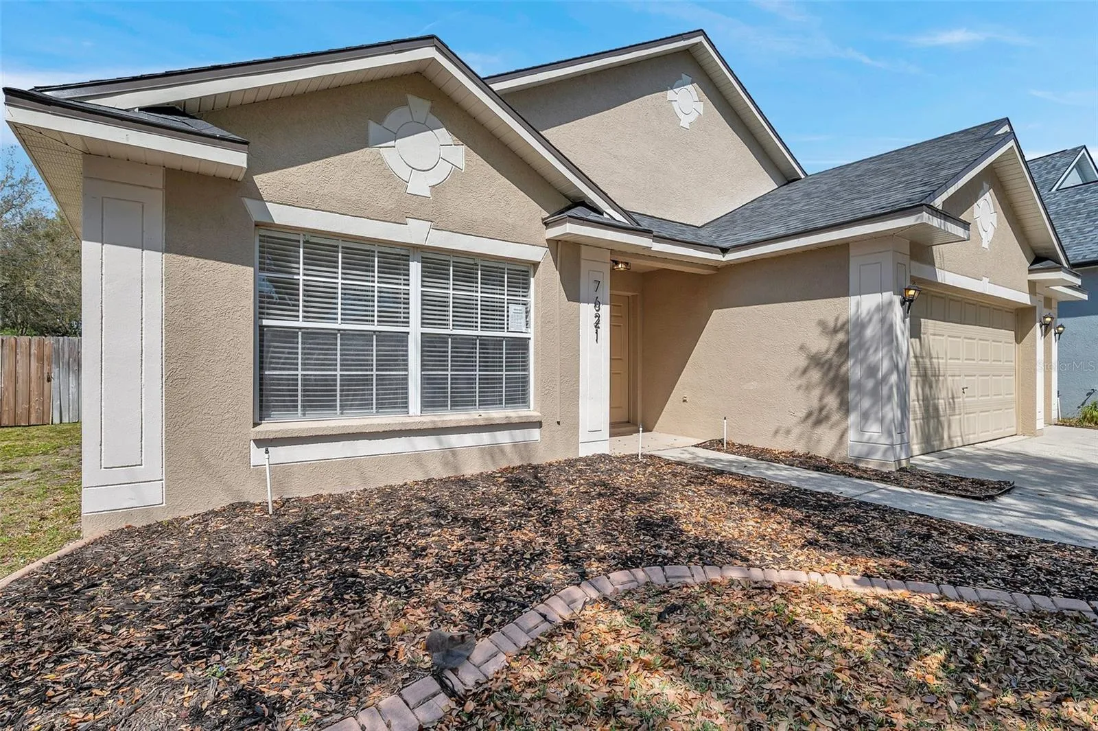 Welcome to this 4 bedroom (plus separate Den), 2 bath one story contemporary home in Covington Park! Recent updates include a NEW Roof 2024, Water Heater 2021, HVAC 2020, freshly painted interior, and newer LVP flooring throughout (no carpets). Terrific floorplan features a welcoming foyer, den with frnch door, large separate dining room, high ceilings, kitchen with pantry closet and loads of cabinets and counter space include a breakfast bar and separate dinette, split bedrooms, large living room with a full wall of sliders and windows, inside laundry, primary suite with a deluxe bath and walk-in closet, a really big covered and screened patio, and a 3 car garage. Other features include solid surface counters, 42inch upper cabinets with crown toppers, stainless steel appliances including a double oven, a privacy fenced yard with no direct backyard neighbors and a relaxing treed view. Community amenities include POOL(s), Playground, Tennis Courts, Basketball, Open Fields, Clubhouse with Fitness and Social Hall, Dog Park and More! Covington Park has a low annual HOA Fee, a terrific location with easy access to I-75, Hwy 301, or 41, onsite elementary school, and just minutes to Hospital, restaurants, entertainment, shopping, and more! Schedule your private tour today!