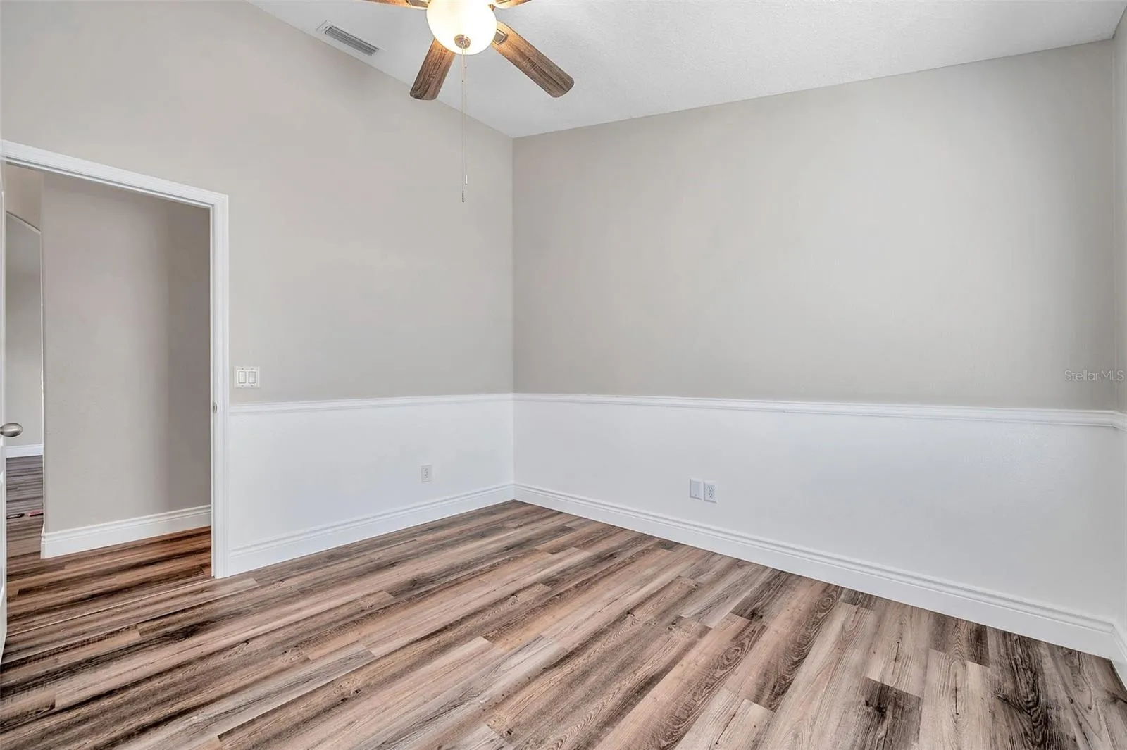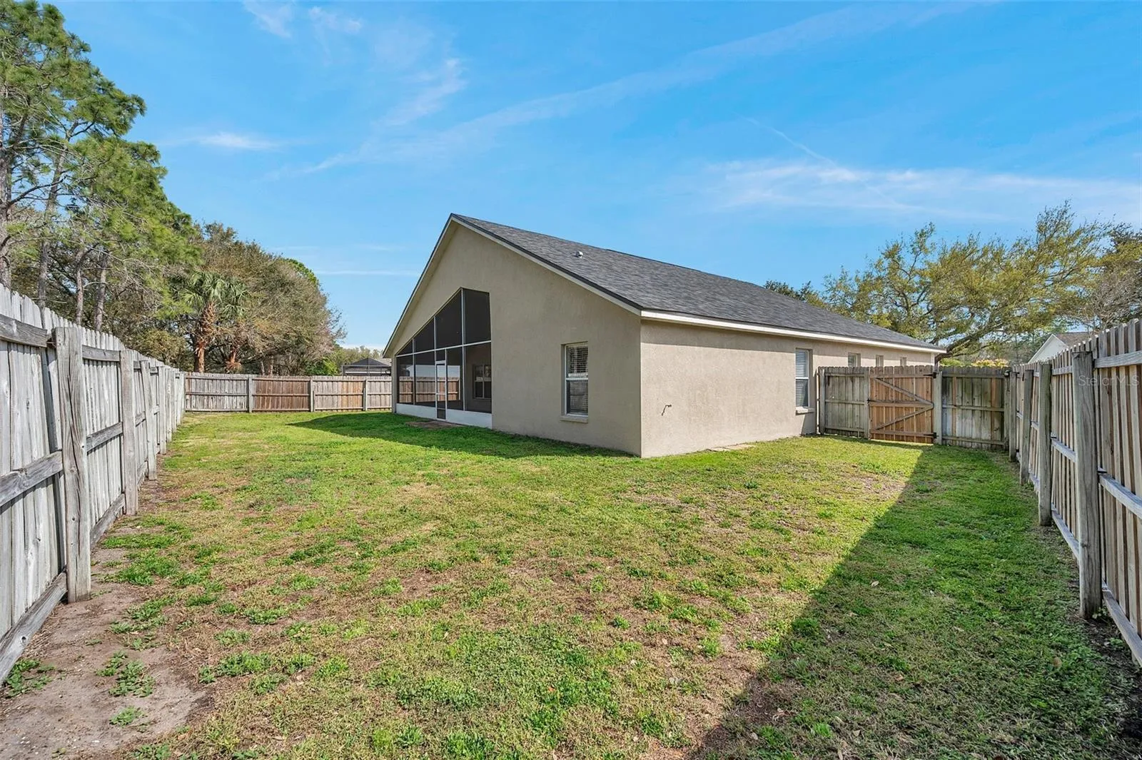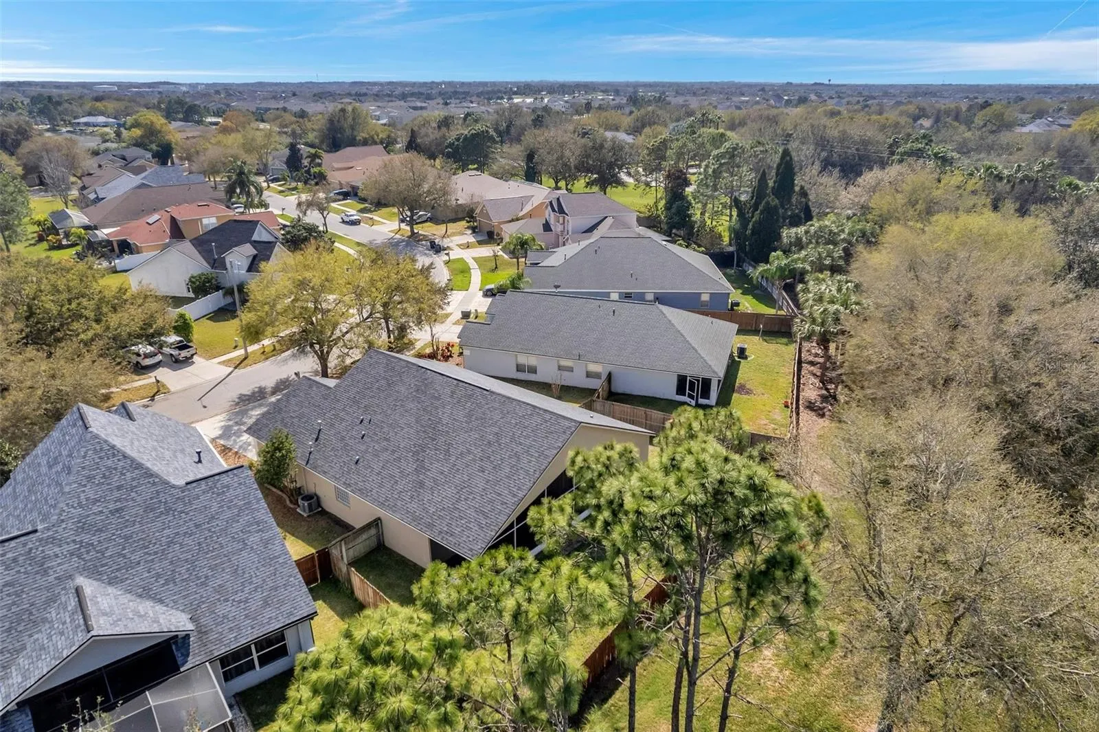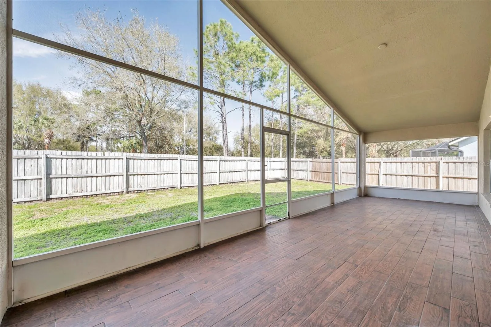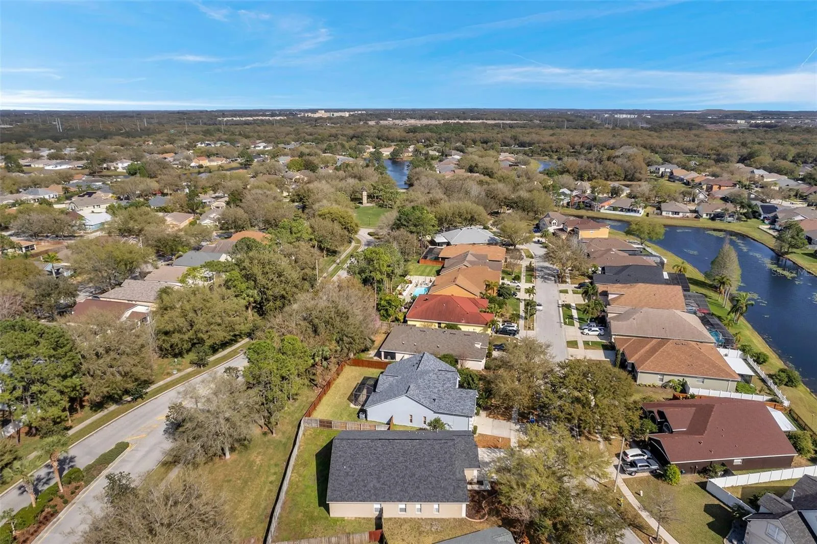 Welcome to this 4 bedroom (plus separate Den), 2 bath one story contemporary home in Covington Park! Recent updates include a NEW Roof 2024, Water Heater 2021, HVAC 2020, freshly painted interior, and newer LVP flooring throughout (no carpets). Terrific floorplan features a welcoming foyer, den with frnch door, large separate dining room, high ceilings, kitchen with pantry closet and loads of cabinets and counter space include a breakfast bar and separate dinette, split bedrooms, large living room with a full wall of sliders and windows, inside laundry, primary suite with a deluxe bath and walk-in closet, a really big covered and screened patio, and a 3 car garage. Other features include solid surface counters, 42inch upper cabinets with crown toppers, stainless steel appliances including a double oven, a privacy fenced yard with no direct backyard neighbors and a relaxing treed view. Community amenities include POOL(s), Playground, Tennis Courts, Basketball, Open Fields, Clubhouse with Fitness and Social Hall, Dog Park and More! Covington Park has a low annual HOA Fee, a terrific location with easy access to I-75, Hwy 301, or 41, onsite elementary school, and just minutes to Hospital, restaurants, entertainment, shopping, and more! Schedule your private tour today!