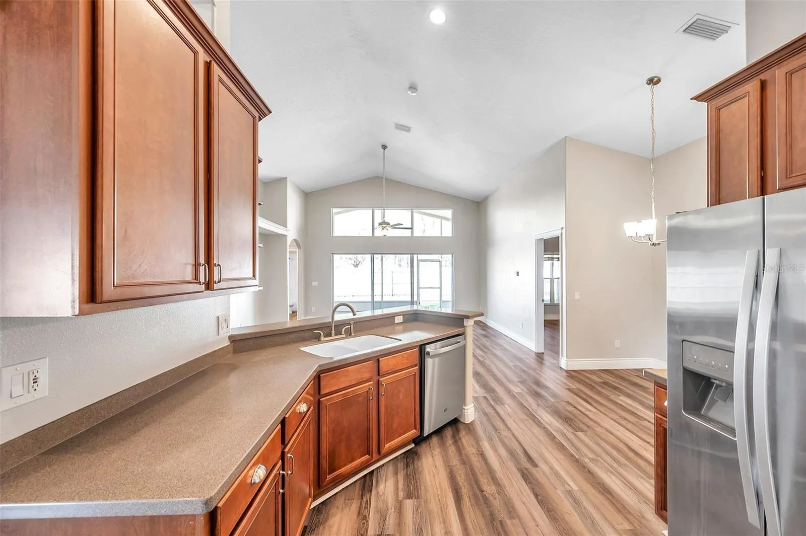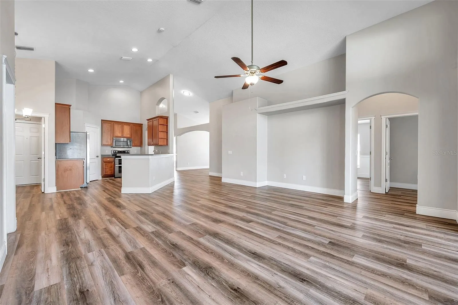 - Ceiling Fans(s), Open Floorplan, Walk-In Closet(s), Kitchen/Family Room Combo, Split Bedroom, High Ceilings, Vaulted Ceiling(s), Solid Wood Cabinets, Solid Surface Counters, Cathedral Ceiling(s)