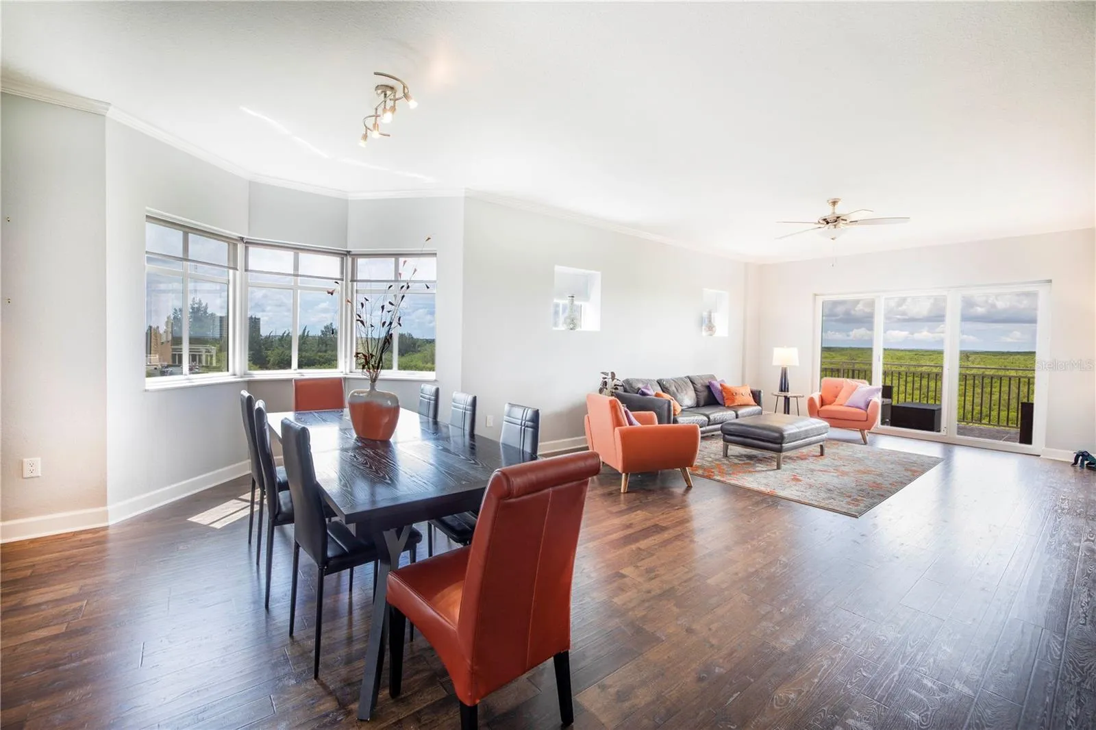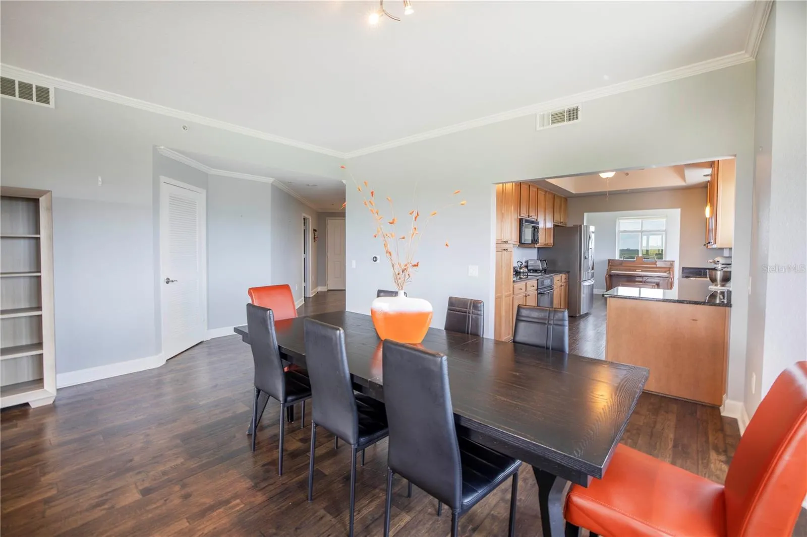 Introducing a stunning 3 bedroom, 2 bathroom condo in St. Petersburg, FL with breathtaking views of Tampa Bay! This 6th floor end unit offers 270-degree views of the natural beauty of mangroves and the serene waters of Tampa Bay. The property boasts wide plank espresso LVP flooring, wood cabinets, and granite and tumbled marble countertops. Enjoy dining with a view in the eat-in kitchen, or relax on the large open balcony overlooking the bay. The split floor plan includes a Primary suite with balcony access, double vanity, shower, and garden tub in the master bath, as well as walk-in closets and an indoor laundry room with storage. With 2 parking spaces in the parking garage, a community pool, and rec center, this condo has everything you need. Conveniently located just minutes from downtown Tampa and downtown St. Pete, this move-in ready condo is a must-see! Schedule a showing today and experience luxury living with unparalleled views.