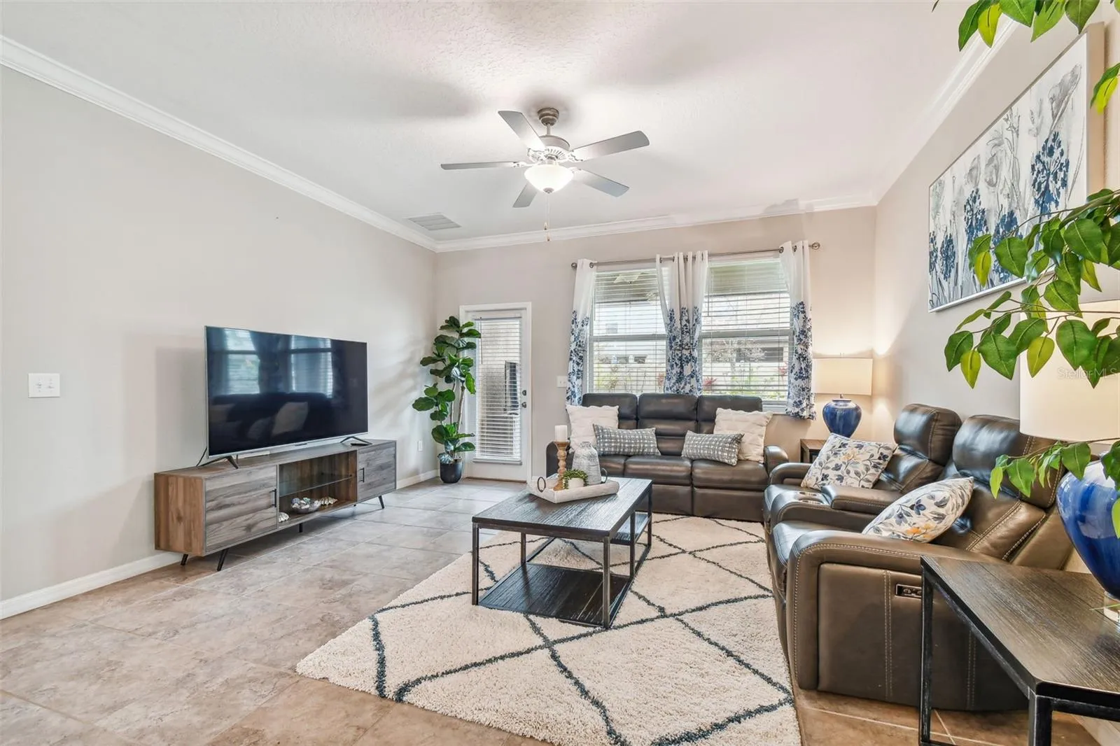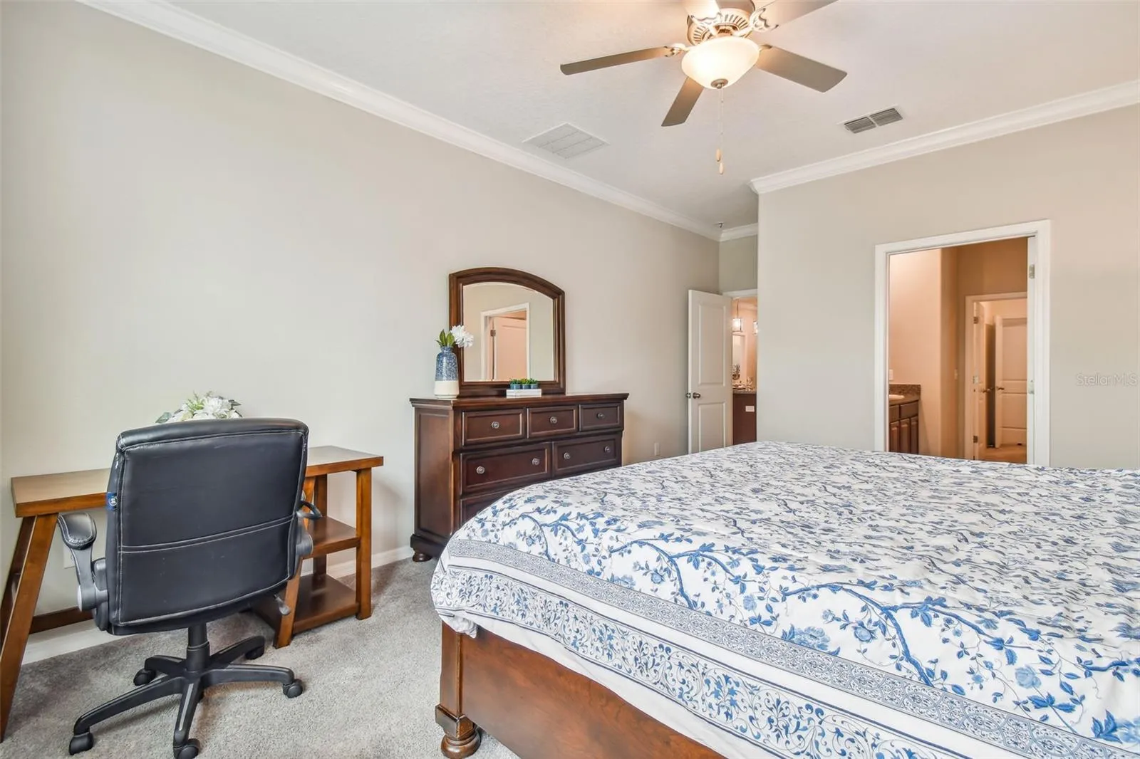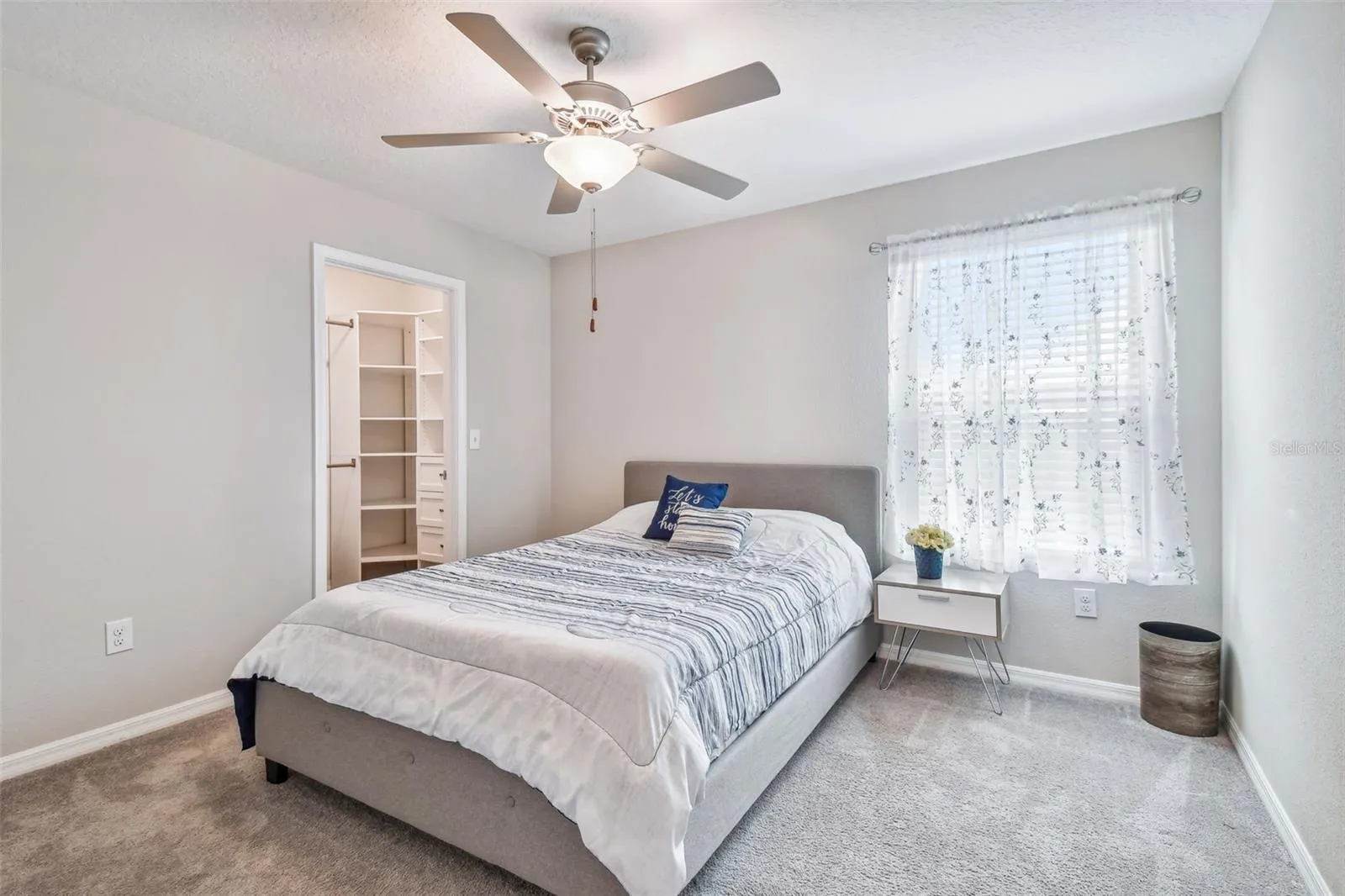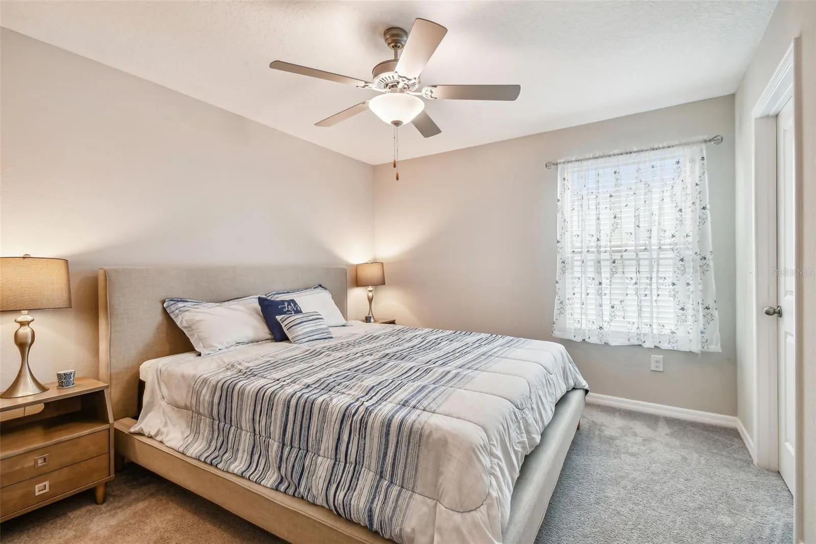 Gorgeous, MOVE IN READY! 5 bedrooms, 3.5 bathrooms, 2 car garage home featuring 2,462 sq ft of perfectly appointed living space. The home features FIRST FLOOR MASTER BEDROOM, upper-level loft and 4 additional upper-level bedrooms. As you walk into the home you will notice the spacious foyer, down the hall to the left of the foyer is a mail drop station, followed by the laundry room fully equipped with washer & dryer. As you walk into the main living space you will find an open concept floorplan with the kitchen, dining area and grand room perfect for family gatherings. The kitchen comes with 32″-inch staggered cabinets, fridge, gas stove, microwave and dishwasher, and custom light fixtures. The Dining and Living space feature custom lighting and fan. The side door gives you access to the backyard covered screened in lanai and fenced backyard with beautiful garden. The spacious master bedroom features an ensuite bathroom with double sinks, walk in shower and huge walk in closet with a thoroughway to the laundry room. As you walk upstairs you will find the Loft perfect for lounging with the family, crafting and game nights with ample space for an office area and home schooling. Down the hall you will find a bedroom and full bath perfect for a guest suite and an additional three bedrooms further down the hall with a full bath, double vanities and private shower and water closet making for great use of space. The energy efficient home features tankless gas water heater, reclaimed water, low maintenance ceramic tile floors in foyer, kitchen, grand room, laundry room, main floor hallways and all baths. Additional features: reclaimed water for irrigation and tankless gas water heater. The award-winning community of CONNERTON is a master planned community with a balance of Nature preserve & resort style community living. Nature preserves features bike trails, lakes & wetlands while the lifestyle community features a splash park, pool, temperature-controlled lap pool, fitness center, beach volleyball, tennis, basketball and a monthly calendar with fun for all ages. Currently has an elementary school in the community and a second school is being built for fall enrollment. This is a golf cart friendly community.
