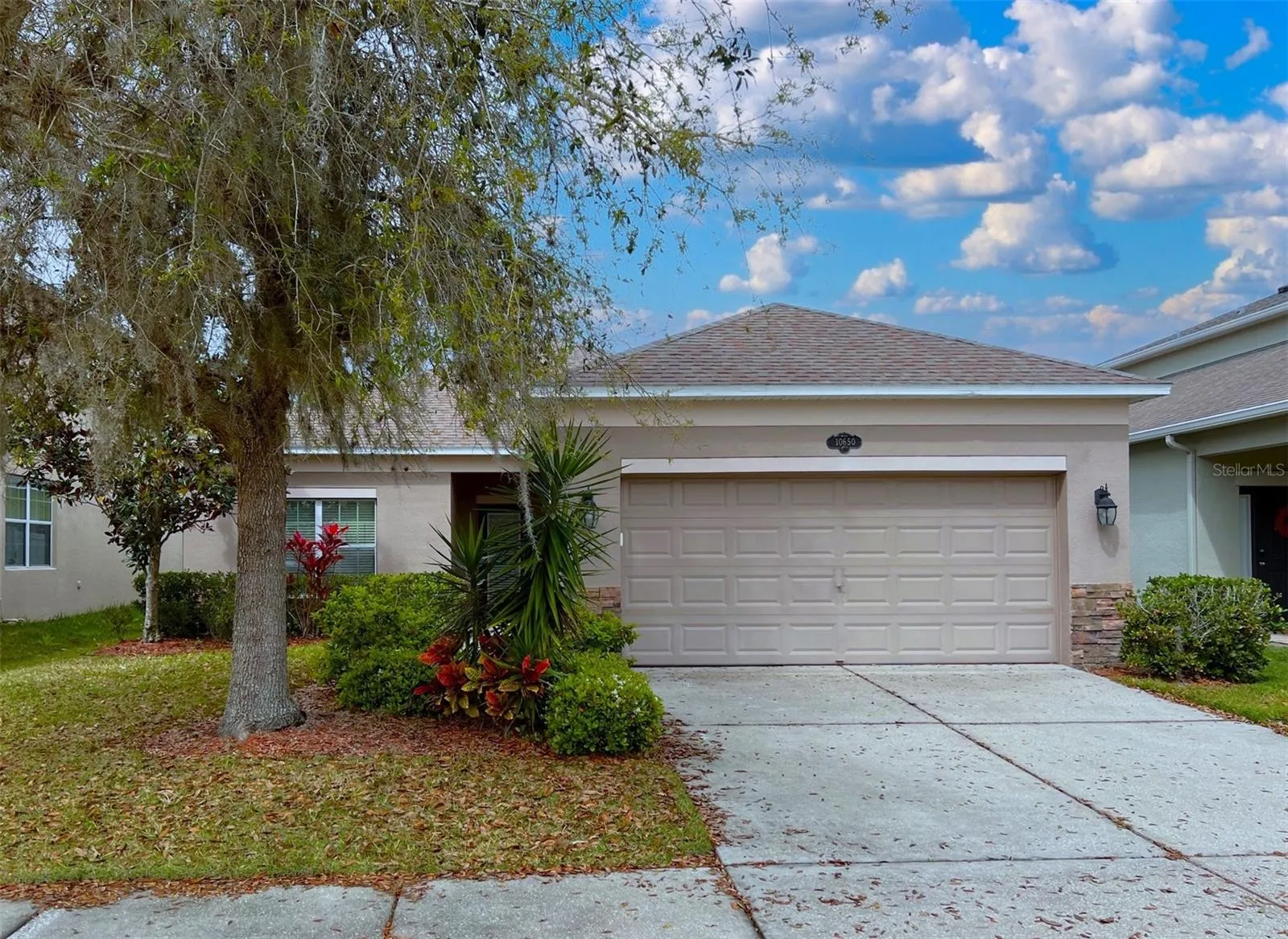 Welcome home! This wonderful 3 bedroom 2 bath home is located in the popular community of Easton Park. As you pull up to this great home you’ll love the oak trees, mature landscaping and NEW exterior paint. Step inside and you’ll find NEW interior paint and lovely tile flooring that runs throughout the home. The spacious living and dining areas lead you to a kitchen that features beautiful dark wood cabinets, gleaming granite countertops and all stainless steel appliances. Head into the primary bedroom and you’ll find his and hers walk in closets, and an ensuite bathroom that boasts a dual sink vanity and a separate shower and garden tub. This split plan home also has 2 more bedrooms, an indoor laundry room and another full bathroom. Venture out back through the sliding glass doors and you’ll find yourself on the back patio overlooking a completely vinyl fenced backyard. The back fence is a vinyl picket fence that allows you to enjoy the view of the pond and woodlands beyond. This is the perfect place to entertain friends and family or just relax. This home is located just 15 minutes from either I-75 or I-275, and all of the shops and restaurants at The Shops at Wiregrass. Don’t miss your chance to own this wonderful home – make an appointment to see it today!