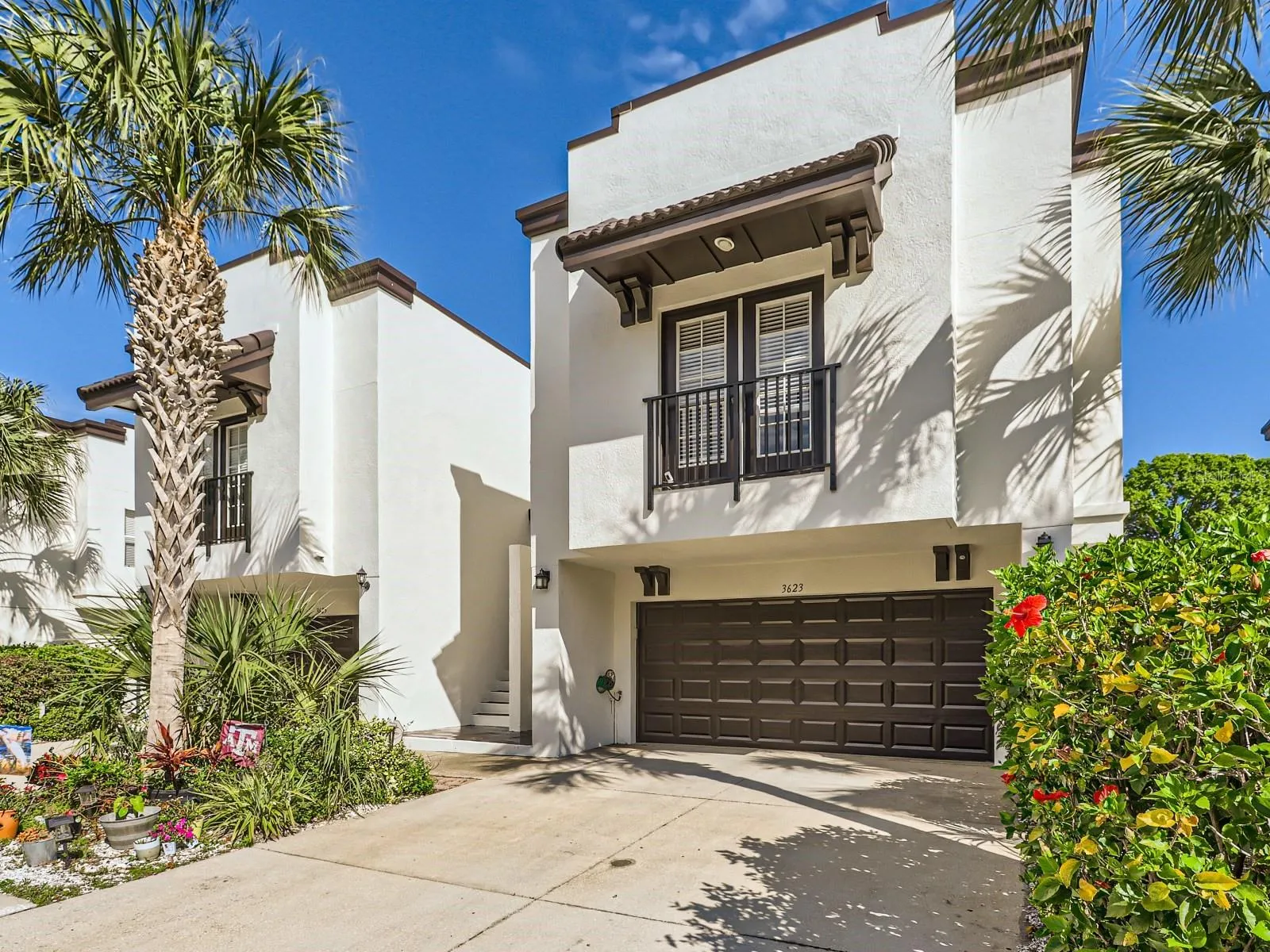 Now under contract -accepting backup offers. Welcome to this stunning South Tampa Mediterranean townhome! This beautiful 3-bedroom featuring a large 2-car garage(hard to come by at this price point), split floor plan with two bedrooms and their own full bathroom downstairs, the primary bedroom with its own spacious bathroom upstairs, along with a half bath off the bright and airy living room. This open floor plan flows into the living, dining, and kitchen area boasting 10′ ceilings and is perfect for entertaining family and friends. This amazing kitchen includes a top of the line Kitchenaid range and refrigerator in addition to tons of cabinet and counter space! The primary bedroom offers THREE separate closets, primary bathroom has dual sinks, soaker tub, and walk-in shower. All bedrooms and living area have new wide plank luxury vinyl flooring. Located close to Macdill AFB, downtown, essential stores, restaurants, and the Selmon Expressway for quick access to all other highways. Plus, this property is on a dead-end road, so no through traffic! Very quiet and peaceful. Come find out why this townhome, which is one of the fastest growing and desirable neighborhoods, should be your next home! HOA includes water, sewer, trash/recycling, landscaping, ground maintenance, pest control, pool service, and reserves. *Potential opportunity for fellow veterans to assume seller’s current VA loan (balance of roughly $443k with a rate of 3.625%). Be sure to check out the virtual tour!