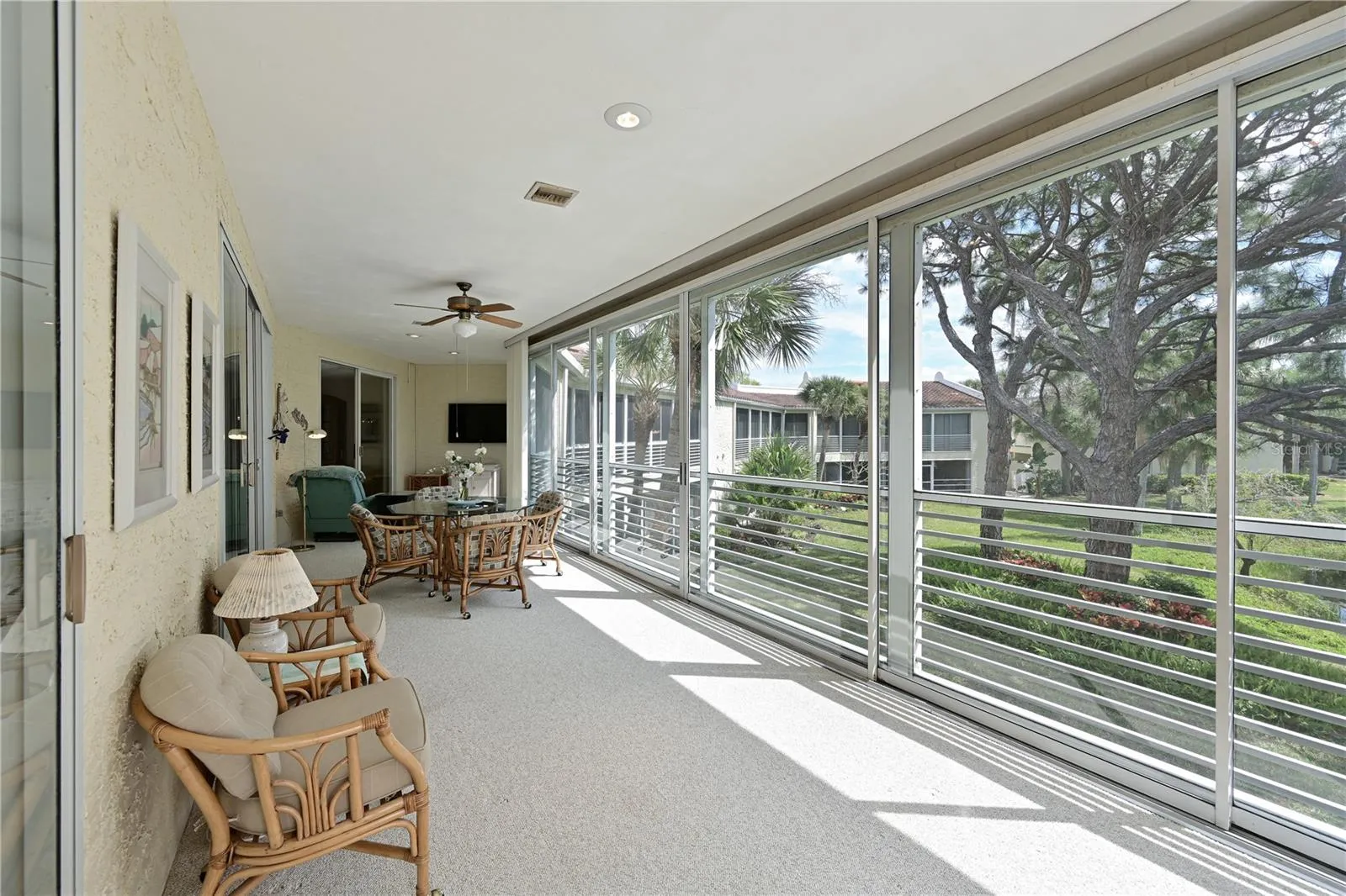 Welcome to Vizcaya, a very attractive Mediterranean style gated condo community only a few miles from the beautiful Gulf beaches of Anna Maria Island. Vizcaya is specifically located in the area of El Conquistador, down the road from IMG Golf and Country Club and the famous “IMG Academy”, a world leader in sports education. Each building has a beautiful fountain courtyard, tile roofs and tropical landscaping throughout. This second floor “Azalea” model with 3 bedrooms and 3 bathrooms is the largest floor plan in Vizcaya and these units rarely become available. This unit comes with a security screened front entrance and a gorgeous insulated glass entry door way. The windows are insulated and the plantation shutters are a nice touch. The eat-in kitchen has an abundance of refreshed cabinets, Corian countertops, two closet pantries, recessed lights and ceramic tile flooring. The refrigerator replaced 11/2021, dish washer 11/2020 and the microwave 2016. You have a living room with a wet bar, dining room, master bedroom and Florida room that are all very spacious. The high ceilings make this condo light and bright. Each bedroom offers access to a balcony and the master suite offers his and her bathrooms and separate walk- in closets. The 3rd bedroom with a closet is perfect to use as a den, office or bedroom. The large glass enclosed Florida room offers peaceful garden and water views for you to enjoy. The inside laundry room with full size washer and dryer plus extra storage are a big plus. The electric service breaker panel was replaced in 2023. This unit also comes with a deeded covered carport and outside closet storage. The Vizcaya community boasts an Olympic sized heated pool and spa, clubhouse with many social activities, fitness center and is not age restricted. Small pets are welcome. This is a wonderful opportunity to own in a great community in a great location. Sold As Is with right to inspect.