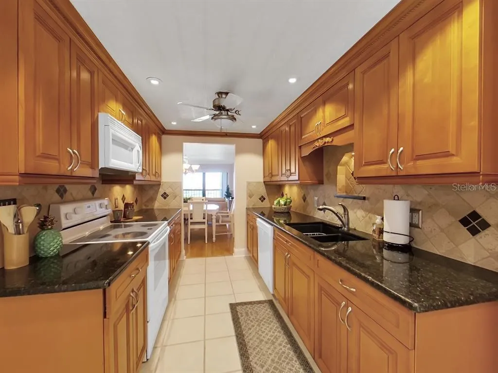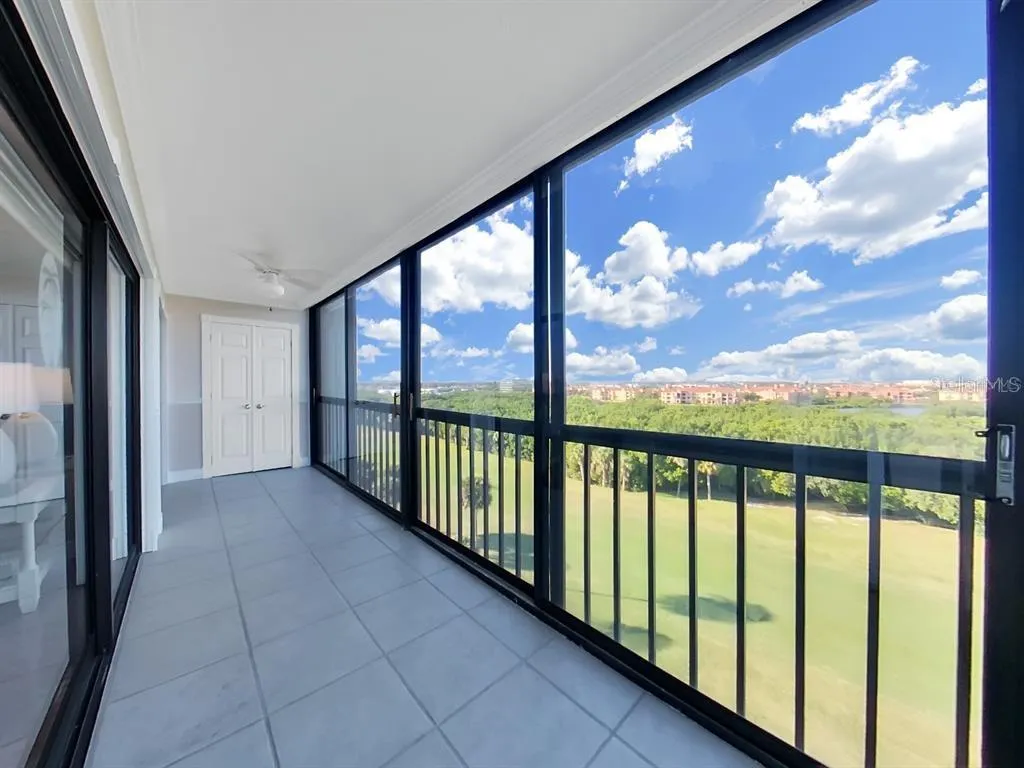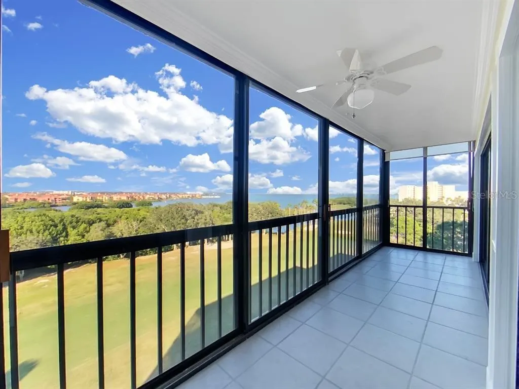 FULLY FURNISHED Spectacular view of Tampa Bay and golf course from the top floor (7th floor) Cove Cay condo. This condo is a 2 bedroom, 2 bath layout with enclosed lanai. Surrounded by lush Florida tropical landscaping and views that are breathtaking. Updated kitchen with modern floor tile, neutral in color with wood cabinetry, granite countertops, closet pantry and newer appliances. Spacious condo offers extended of enclosed lanai. Private laundry room with full size washer and dryer. Conveniently located to nearby shopping.