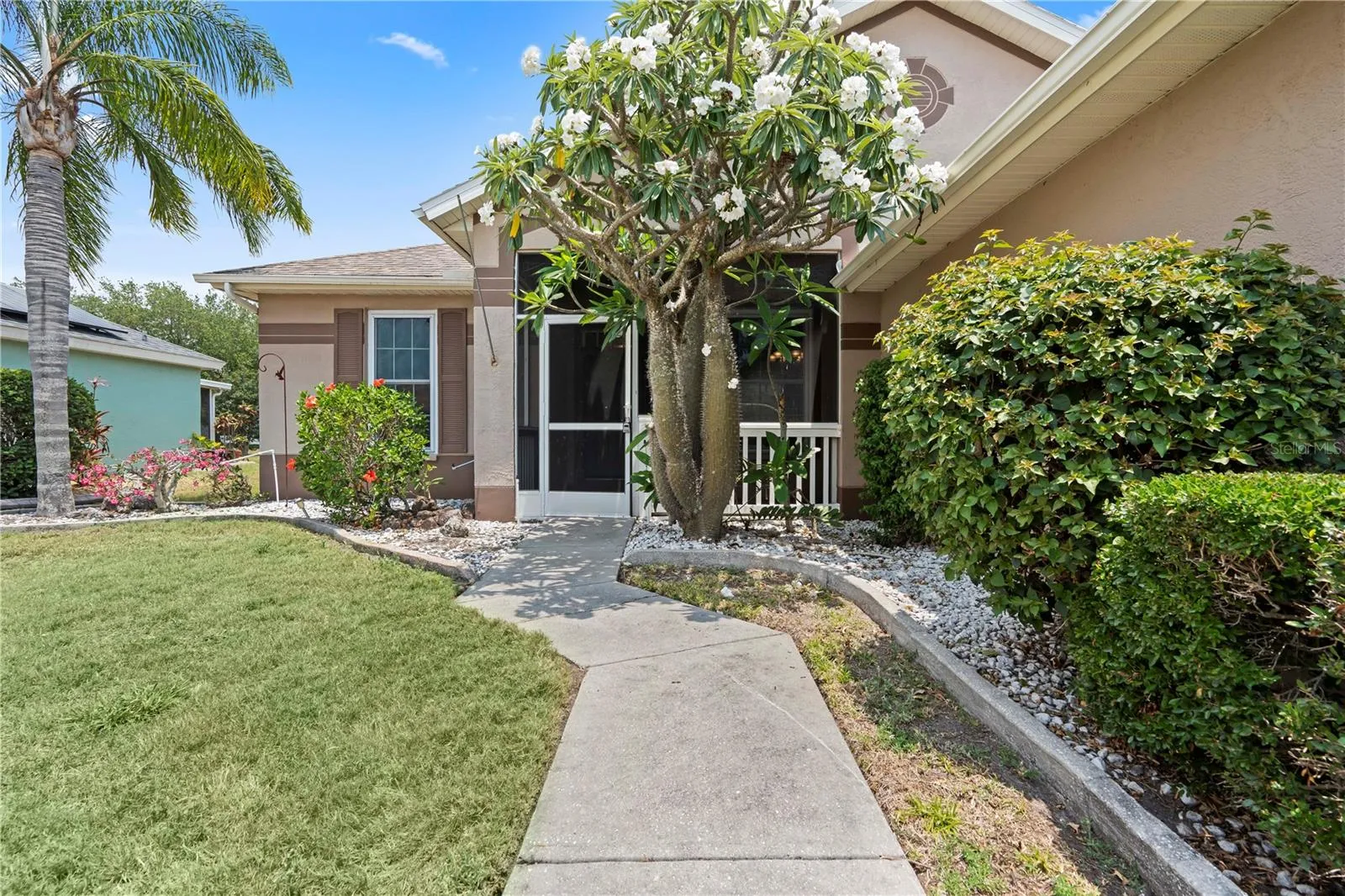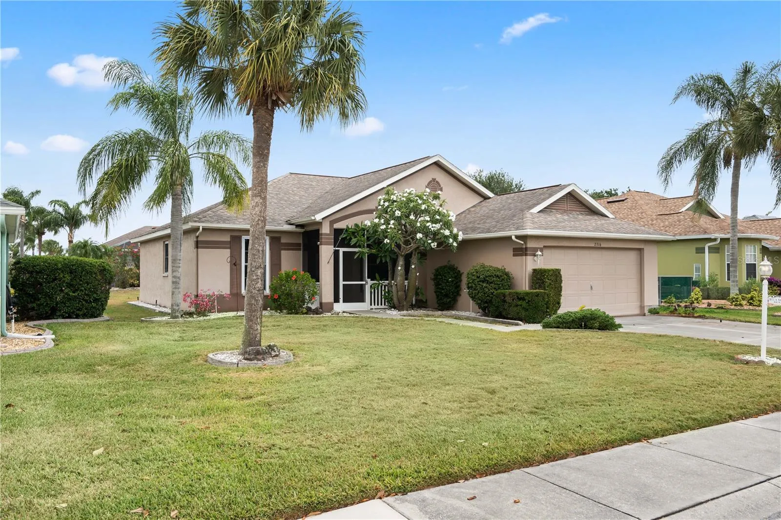Tranquility awaits. Sitting on a cul-de-sac street away from the busy roads of West Del Webb Blvd, lies this beauty of a home. Walking in you are greeted with an elegant living space that you could use to relax, kickback and enjoy some TV. It features 2 bedrooms/2 bathrooms that have been fitted with IMPACT hurricane windows that protect from the harsh weather/winds that come every year. Along with the bedrooms, This home boasts a **BRAND NEW A/C** and an additional room that could be turned into an office or a peaceful study. Moving through the home you come to the FIRST dining room area that could seat a family of 4-8 or more, if you would like. The Kitchen struts its beauty with a SECOND dining area as well as stainless steel appliances along with Newer drawers/cabinets. More features include, spacious 2 car garage, back porch with screened lanai, and a front porch with a screened lanai. “Don’t be shy, come on by” and schedule your showing today!!