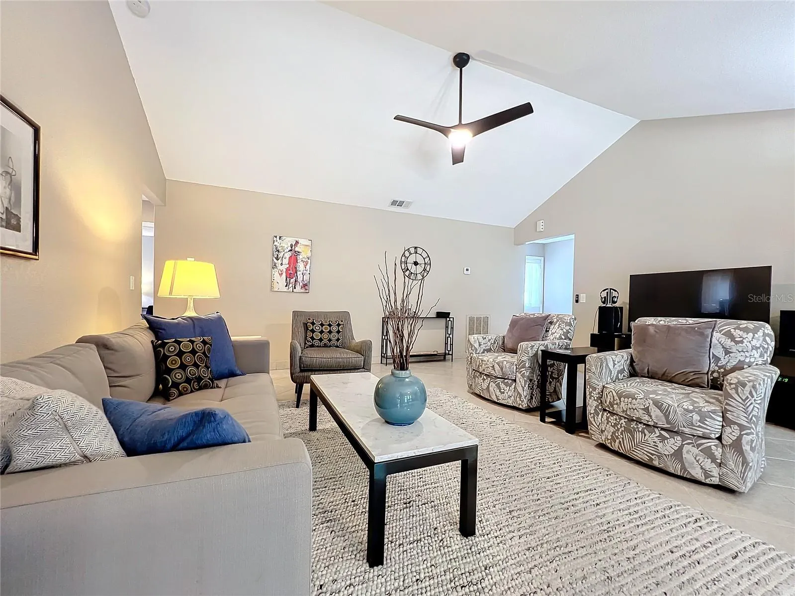 - Ceiling Fans(s), Open Floorplan, Thermostat, Walk-In Closet(s), Living Room/Dining Room Combo, Kitchen/Family Room Combo, Primary Bedroom Main Floor, Vaulted Ceiling(s), Cathedral Ceiling(s)