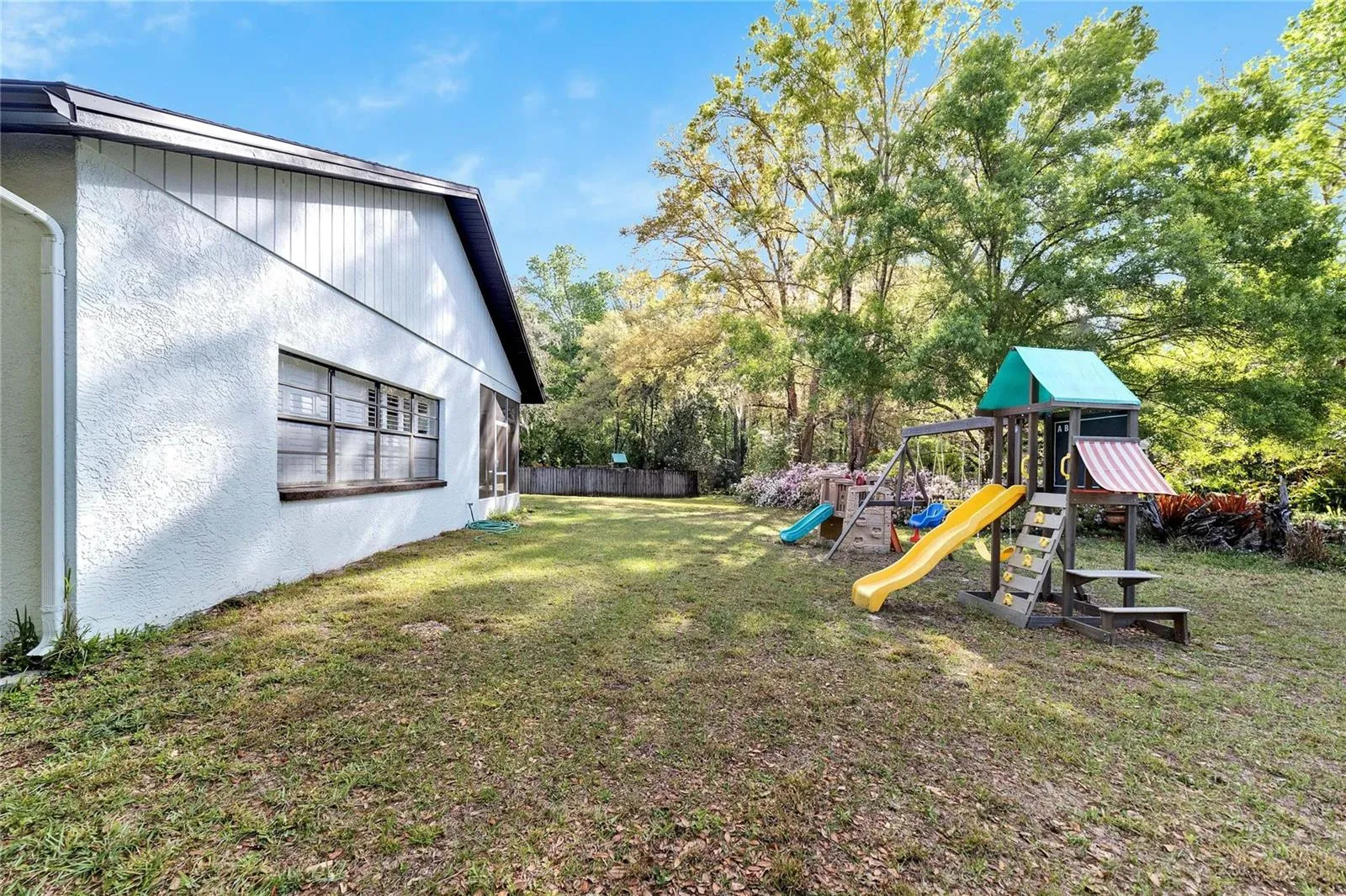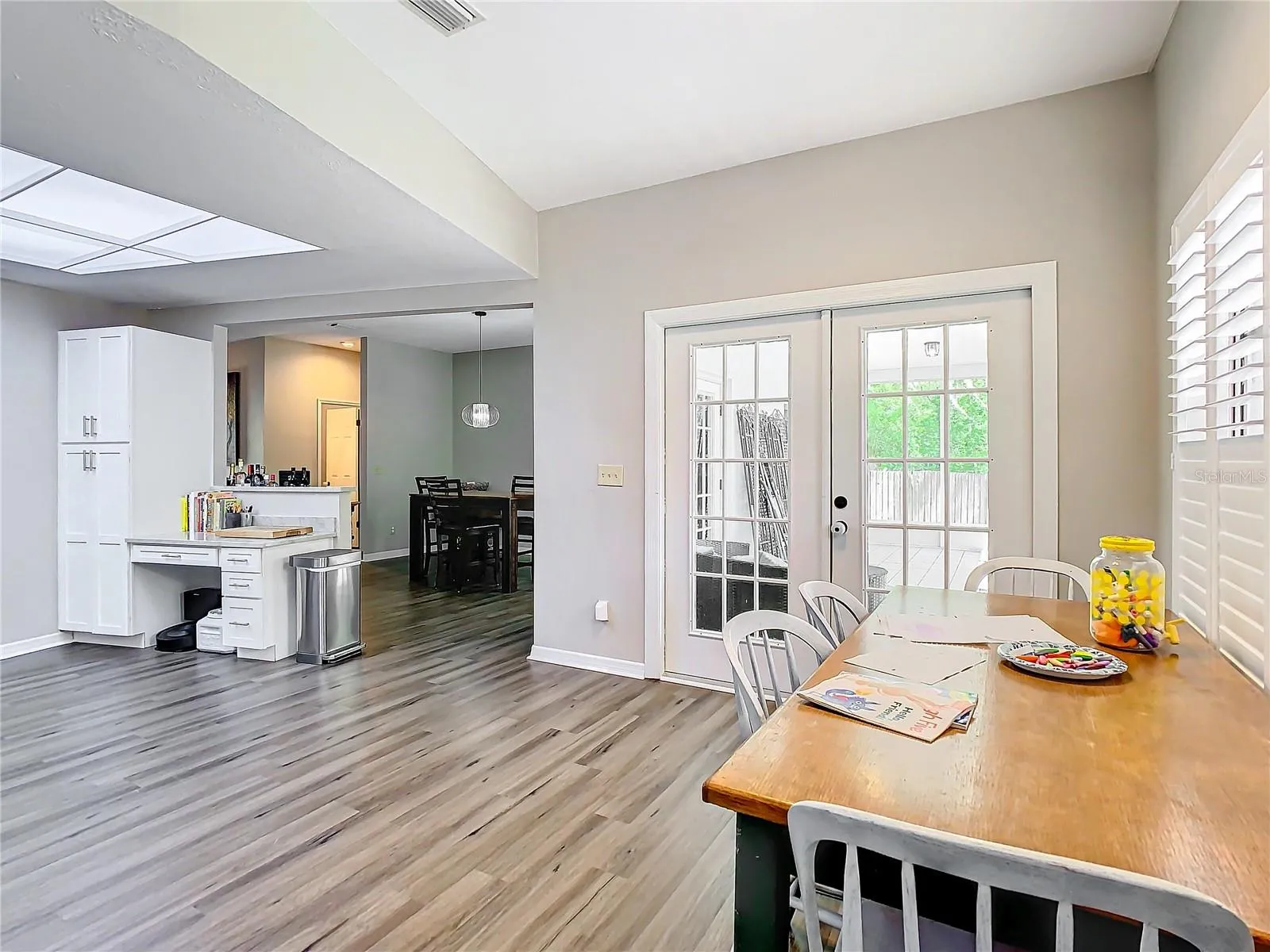 Welcome to this charming 3-bedroom, 2.5 bathroom plus den home in the sought out community of Eagle Island Estates. This contemporary home is tucked away in a peaceful cul-de-sac, offering both comfort and style. Step inside to discover an inviting open floor plan that seamlessly combines the living, dining, and kitchen areas, making it perfect for entertaining guests or enjoying quality family time. The modern kitchen boasts sleek stainless steel appliances, providing both functionality and elegance to the heart of the home. Laminate flooring throughout adds a touch of sophistication while ensuring durability and easy maintenance for busy lifestyles. The den provides additional space for a home office, playroom, or cozy retreat, offering versatility to suit your needs. Escape to the oversized master bedroom featuring a luxurious ensuite bath with a roman-style soaking tub, creating a spa-like atmosphere where you can unwind and relax after a long day. Dual walk-in closets provide ample storage space, keeping your belongings organized and easily accessible. Step outside to enjoy the serene backyard oasis, adorned with beautiful azaleas that line the landscape, adding bursts of color and natural beauty to your outdoor space. Many newer updates provide peace of mind: Roof (2017) A/C Condense, and Air handler (2022), Appliances (2021) Plumbing (2021), and Plantation Shutters (2022). This home truly offers the perfect blend of comfort, style, and functionality, providing a wonderful opportunity to create lasting memories in a tranquil setting. Don’t miss out on the chance to make this your dream home!
