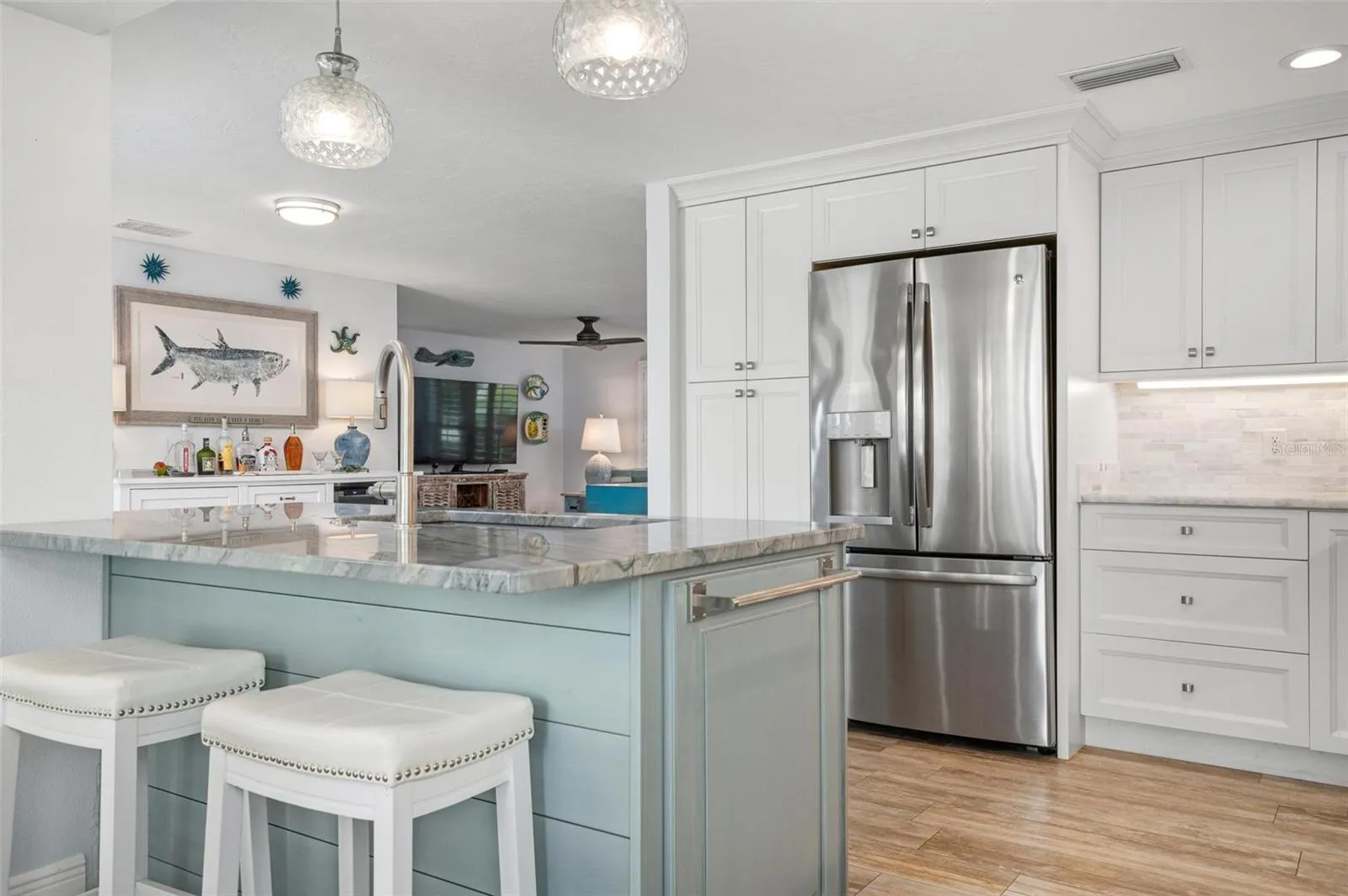 KEY ROYALE CANAL HOME! Make your island dreams come true in this beautifully remodeled and furnished waterfront pool home located in the exclusive and highly sought-after Key Royale community. Spanning 2,000 square feet on a nearly 11,000 square foot lot, this home boasts 95 feet of deep-water canal frontage with direct access to Tampa Bay and the Gulf of Mexico. The perfectly-maintained property offers a long dock with two boat lifts that are 12,000-lbs and 5,000 lbs for the kayak lift and direct access to Tampa Bay and the Gulf of Mexico. The 3-bedroom, 2-bathroom home features a lovely split floor plan with a posh en-suite primary bedroom featuring a walk-in closet, a large bath and dual vanity. The well-appointed kitchen features a gas range and a breakfast island. Glass sliders lead to the canal-front pool, lush landscaping, outdoor cabana with a complete outdoor kitchen featuring a large gas grill, gas cooktop and exhaust hood and refrigerator. Enhanced by impact-resistant windows and doors (2022) and a metal roof, this home ensures both comfort and sustainability. Other highlights include a large pool with spa and a 2-car garage for plenty of storage. You also will be just a golf cart ride away from Anna Maria Island’s beautiful beaches and all points of interest to enjoy the island lifestyle! Enjoy taking off on your boat right from your backyard into open water with no bridges for amazing sunset cruises every night. Call us today for your private showing.