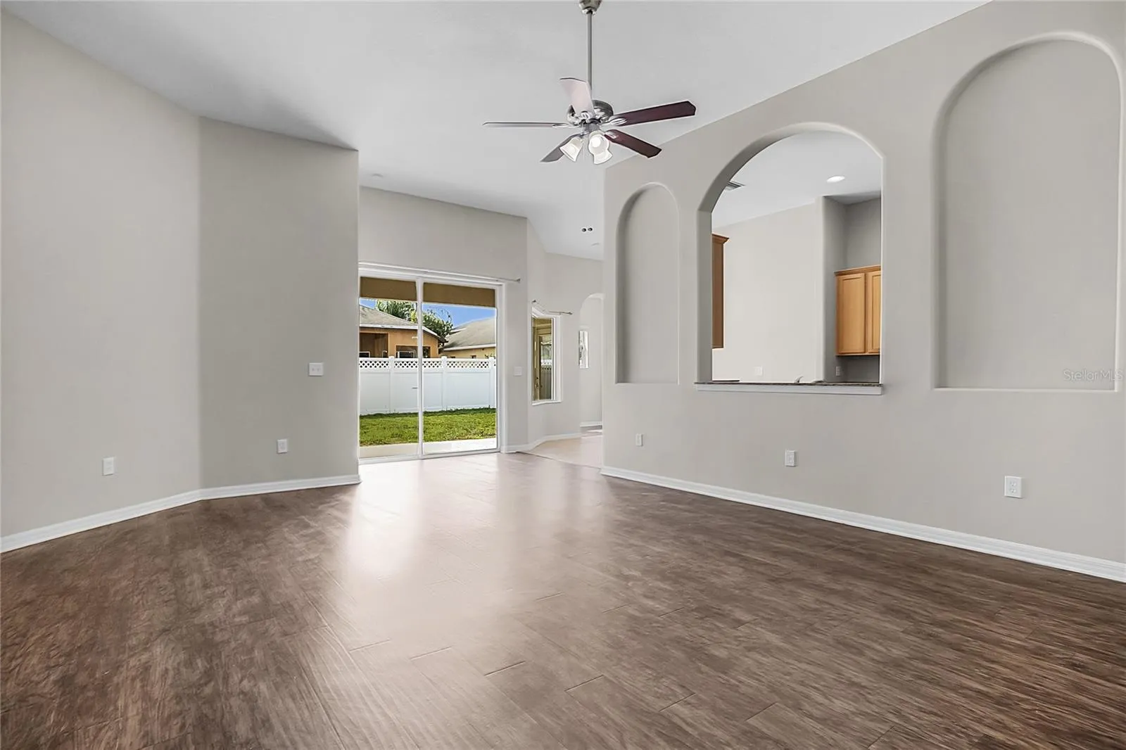 This 4-bedroom, 3-bathroom residence in the gated Lake Talia community, offering a spacious 2,686 sqft of living space, is now more accessible with our 2% Seller-Paid Rate Buydown offer, enhancing the benefits of homeownership. The home features wood laminate and tile flooring, vaulted ceilings, and a neutral color palette, creating an inviting atmosphere. Thoughtfully designed, it includes distinct living and dining areas, an office, and a kitchen equipped with granite countertops, wood cabinets, stainless steel appliances, and a walk-in pantry. Three bedrooms provide ample closet space, complementing the privacy-oriented master suite, which boasts a walk-in closet and an ensuite bathroom with a dual sink vanity, separate shower, and tub. The outdoor space features a covered patio overlooking a sizable yard, bordered by a partially enclosed fence, offering a serene setting for relaxation or gatherings.