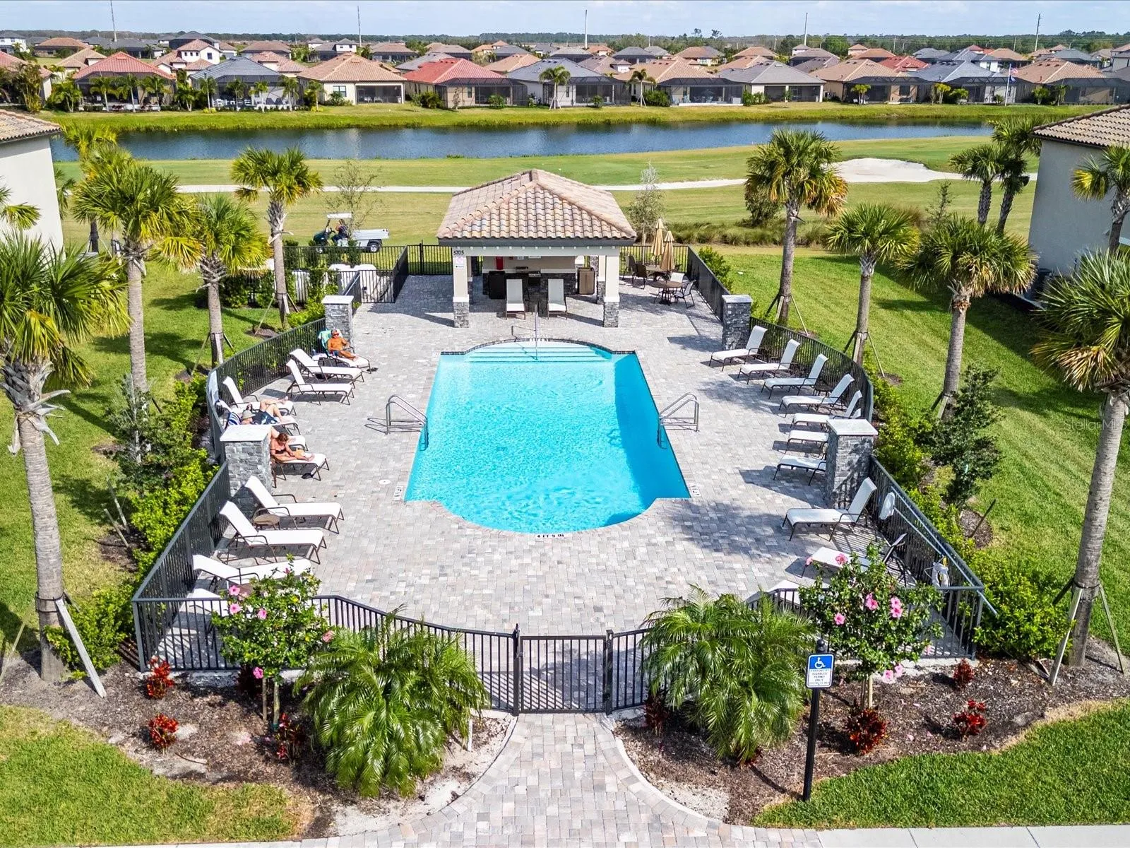 This TURNKEY FURNISHED Veranda is the newer floorplan of the popular Diangelo model nestled within Lakewood National Golf Club.With two bedrooms and a den this is the perfect open concept model for entertaining.Some upgrades include a custom floating entertainment center with shelving,bench seating in the eat in kitchen and shiplap on the island.Enjoy the sunsets from the rear lanai while overlooking the 1st hole of the Piper course and the driving range.As one of the premiere bundled golf communities in all of Southwest Florida you will enjoy all the great amenities which include;36 Holes of golf,resort style pool,tiki bar,fitness center,spa,pickleball,tennis and a brand new state of the art clubhouse.Come see why so many have now called Lakewood National home.