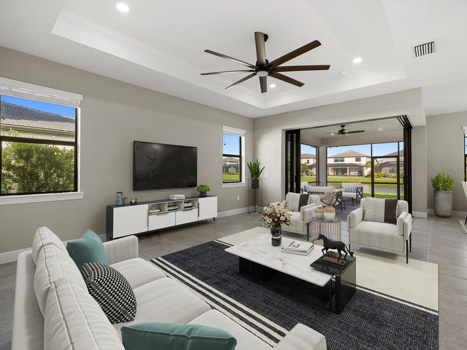 **SELLER OFFERING 10K TOWARDS CLOSING COSTS/PREPAIDS** Your Lakewood Ranch dream comes true! Don’t wait to build and move right into this fantastic waterfront home and make it your own. This 3 bedroom/den/2 bathroom home is nestled in the stunning community of Sapphire Point at Lakewood Ranch you will fall in love with the Mystique Plan. Imagine living the Florida lifestyle in a resort-style maintenance free gated community featuring state-of-the-art amenities. The home welcomes you with beautiful landscaping. As you enter the home the foyer opens the way to the main living area. The split floor plan separates the master suite from the additional 2 bedrooms. The open floor plan allows you to enjoy time with your family and friends while preparing culinary delights in your kitchen. The kitchen island is the center and heart of the main area and offers additional seating at the breakfast bar if needed. The master suite is your sanctuary with a split floor plan that offers extra privacy. The master bathroom is your private retreat with an oversized walk-in shower featuring a built-in bench. The spacious walk-in closet offers plenty of room for your belongings and wardrobe. Bring the outdoors in with the upgraded zero corner slider. Enjoy your morning coffee or evening hours on your upgraded massive screened-in extended brick-paved lanai. There is plenty of room in the backyard to add a pool. Fences are allowed. Other upgrade’s include extended garage finished with epoxy, two tone paint, ceiling fans & dimmers throughout, astronomic outdoor light control, and so much more. Enjoy all the resort-style amenities included in your community: a zero-entry pool, fire pit, fitness center, picnic area, community gathering room with kitchen, playground, and basketball courts. Ground maintenance and full lawn maintenance are conveniently included! This home is conveniently located close to all necessary infrastructure: fantastic dining, shopping, hospitals, the SRQ Airport, the greater Tampa Bay area, and the beautiful Gulf beaches.