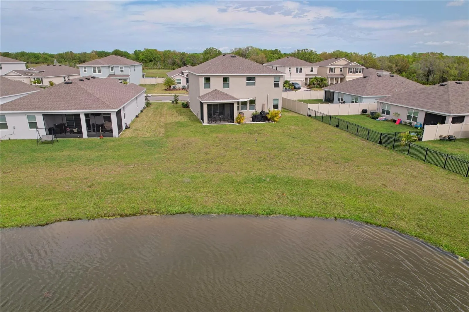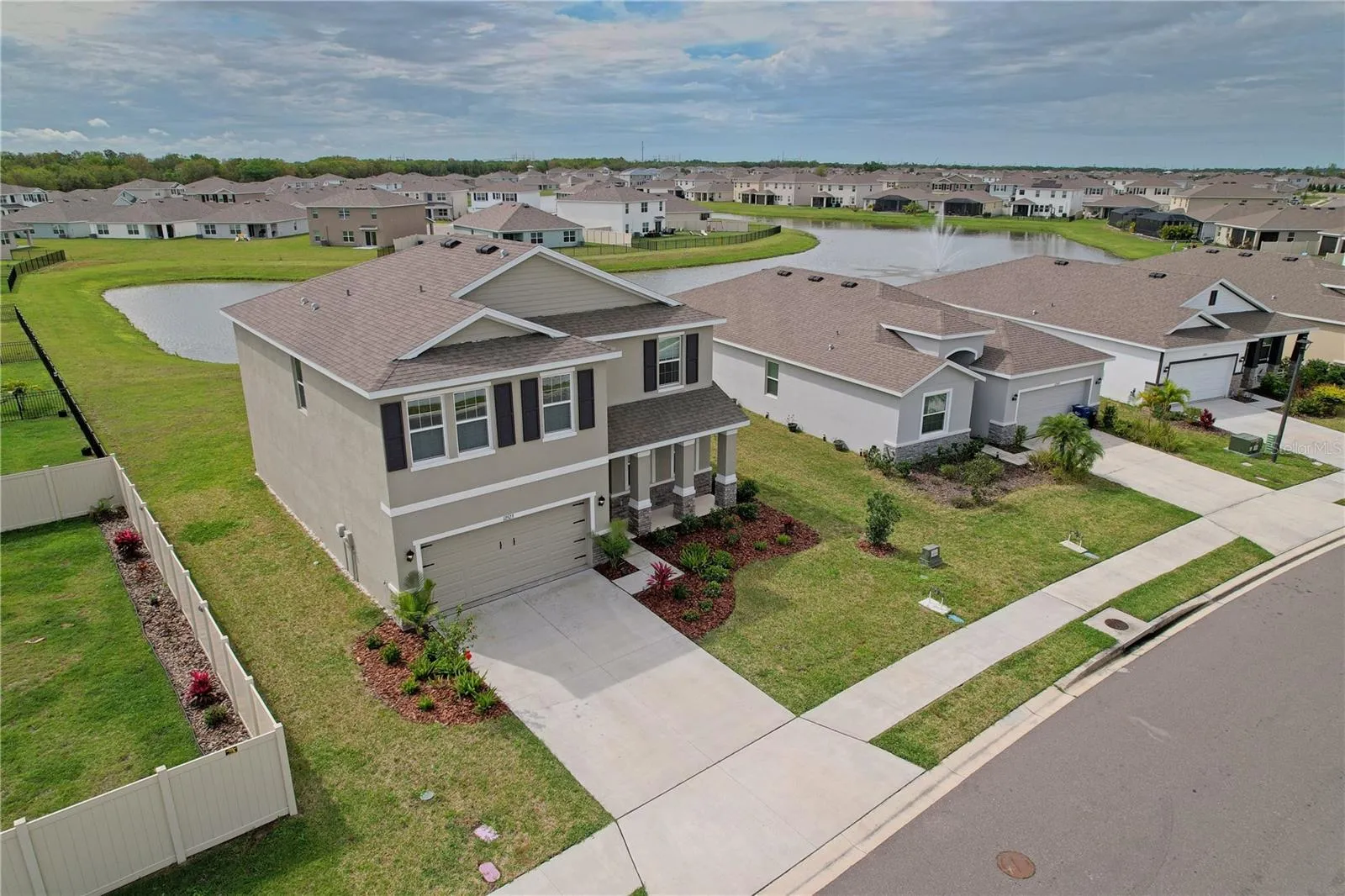 Better than new construction with all appliances, high end window blinds, ceiling fans, a large screened lanai, an open air patio for grilling and entertainment with a picturesque lake backdrop for outdoor living. Executive home, located in a desirable community with fantastic amenities such as a clubhouse, swimming pool, and a dog park this home offers the perfect balance of relaxation and recreation. One of the largest lots in the community, your new dream home awaits! This stunning 4-bedroom, 3-bathroom newer construction residence is nestled on the shore of a beautiful lake offering the perfect blend of luxury and tranquility. Offering spacious living areas, including a huge recreation/loft area and modern amenities, this home provides the ultimate comfort and convenience for you and your family. Numerous windows provide ample light throughout. Move right in and enjoy.