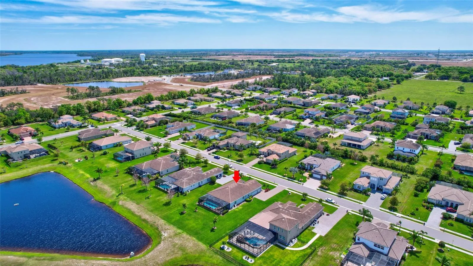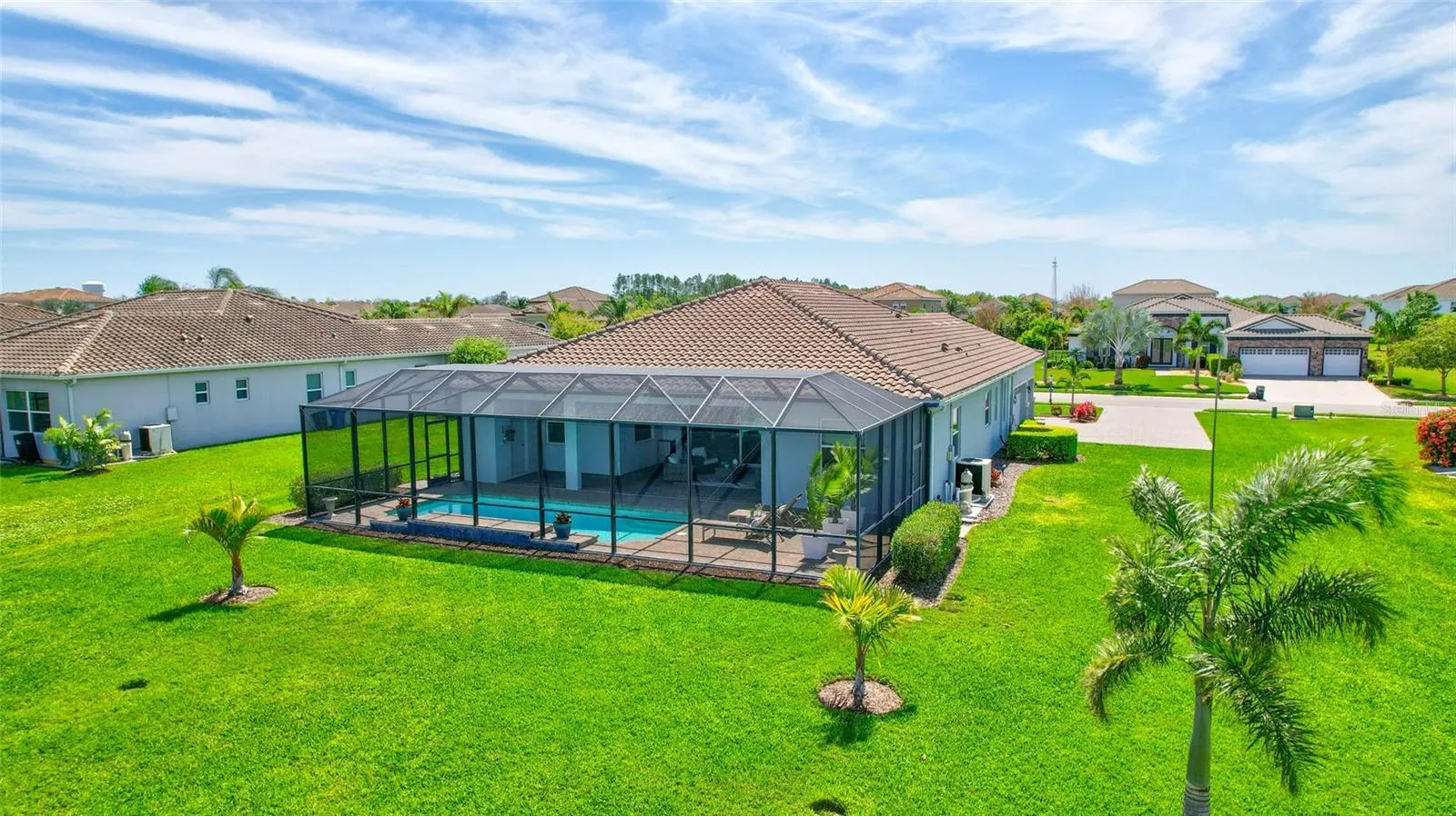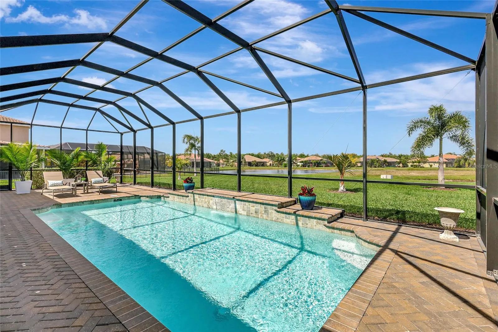 Stunning home with beautiful double pond views. This extraordinarily better than new home in the sought-after Rye Wilderness Estates. Unparalleled curb appeal with an extra manicured landscape, there are No CDD’s, low HOA fees and top-rated schools in this fabulously positioned neighborhood, just north of Lakewood Ranch. Rye Wilderness Estates is known for its tile roofs, side load entry garages, paver driveways, half acre lots and executives homes. A lovely three-bedroom, three & half bath home with a den/office. One of the largest three car side load garages in this neighborhood, offering a variety of uses with the extra space. A beautiful tile throughout living areas, plus in the den/office. The gourmet kitchen features quartz counters, solid wood cabinetry/pull out drawers with decorated hood vent to the outside, under-counter lighting, tiled back splash and a gorgeous island. Stainless Steel appliances and a breakfast bar for additional counter space. Kitchen is open to the great room. Large sliding doors lead to the splendid extended lanai with its gorgeous water heated pool with water fall features, overlooking two gorgeous ponds, it is breath taking north views. Covered lanai area has a half bath. The master suite is spacious ensuite, a luxurious bathroom that includes an expansive shower, dual sinks, and a garden tub to relax in, along with his/her spacious California style walk-in closets. The large utility/laundry room has cabinets, and an additional walk-in closet with shelving for added storage or a second pantry at one end of the room. Rain gutters thru out. Rye Wilderness is situated only approximately 10 minutes to the interstate and thirty minutes to world famous beaches, five minutes to Manatee State Park, next to Rye Preserve Park, near UTC mall, restaurants, theaters, arts, shopping, Centrally located with St-Pete, Anna Maria Island, Sarasota, Lakewood Ranch with Tampa an hour north. There is no other community like this in this area of East Manatee County. Bedroom Closet Type: Walk-in Closet (Primary Bedroom).