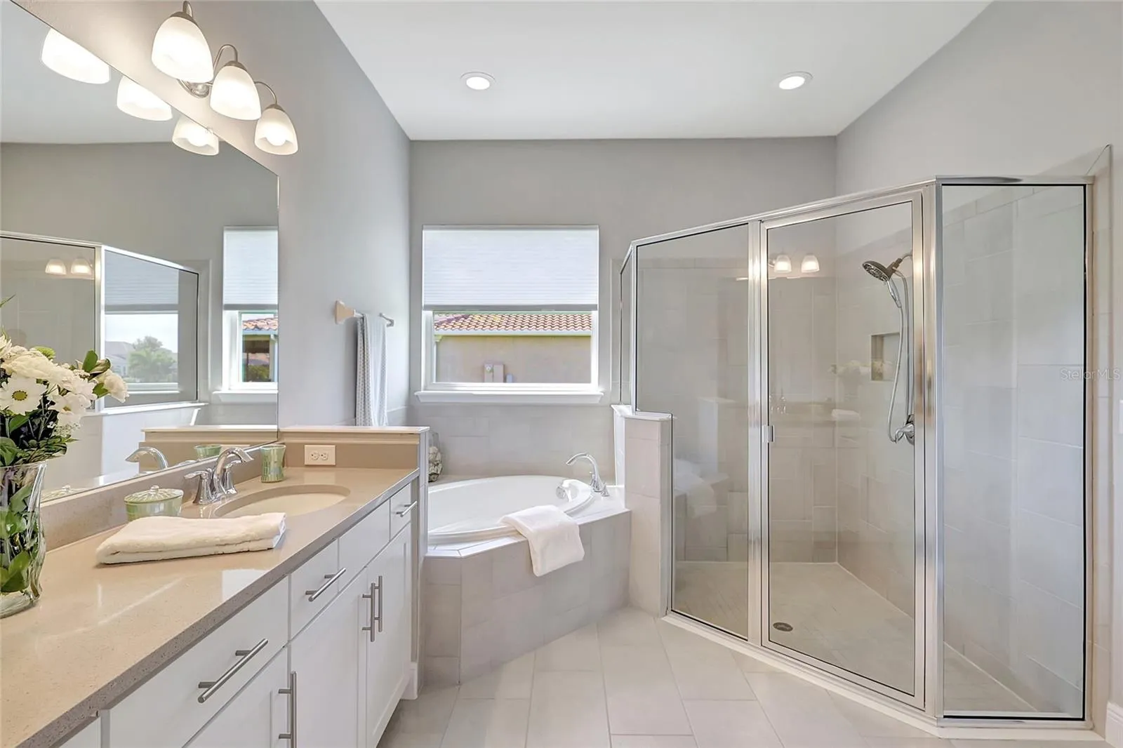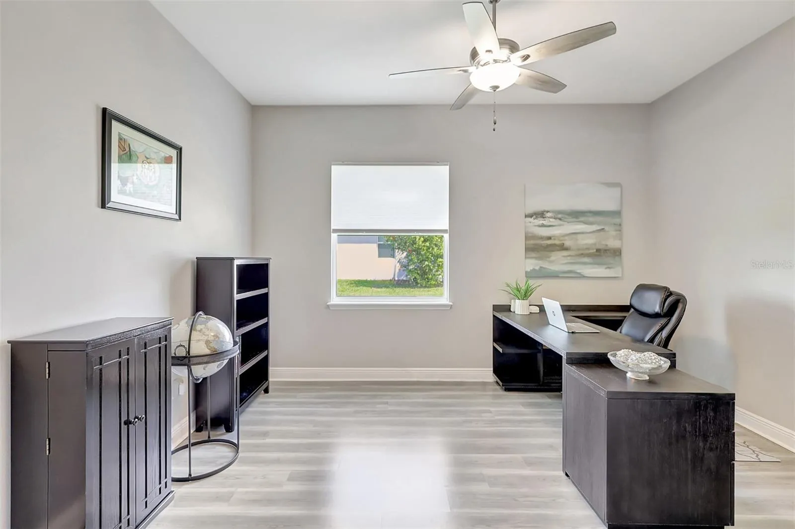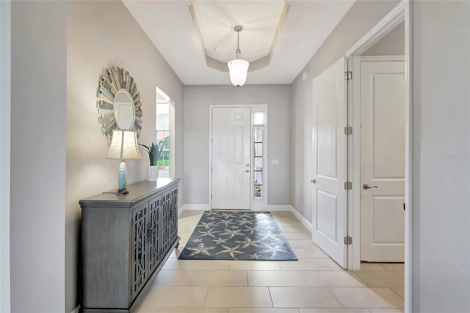 Stunning home with beautiful double pond views. This extraordinarily better than new home in the sought-after Rye Wilderness Estates. Unparalleled curb appeal with an extra manicured landscape, there are No CDD’s, low HOA fees and top-rated schools in this fabulously positioned neighborhood, just north of Lakewood Ranch. Rye Wilderness Estates is known for its tile roofs, side load entry garages, paver driveways, half acre lots and executives homes. A lovely three-bedroom, three & half bath home with a den/office. One of the largest three car side load garages in this neighborhood, offering a variety of uses with the extra space. A beautiful tile throughout living areas, plus in the den/office. The gourmet kitchen features quartz counters, solid wood cabinetry/pull out drawers with decorated hood vent to the outside, under-counter lighting, tiled back splash and a gorgeous island. Stainless Steel appliances and a breakfast bar for additional counter space. Kitchen is open to the great room. Large sliding doors lead to the splendid extended lanai with its gorgeous water heated pool with water fall features, overlooking two gorgeous ponds, it is breath taking north views. Covered lanai area has a half bath. The master suite is spacious ensuite, a luxurious bathroom that includes an expansive shower, dual sinks, and a garden tub to relax in, along with his/her spacious California style walk-in closets. The large utility/laundry room has cabinets, and an additional walk-in closet with shelving for added storage or a second pantry at one end of the room. Rain gutters thru out. Rye Wilderness is situated only approximately 10 minutes to the interstate and thirty minutes to world famous beaches, five minutes to Manatee State Park, next to Rye Preserve Park, near UTC mall, restaurants, theaters, arts, shopping, Centrally located with St-Pete, Anna Maria Island, Sarasota, Lakewood Ranch with Tampa an hour north. There is no other community like this in this area of East Manatee County. Bedroom Closet Type: Walk-in Closet (Primary Bedroom).