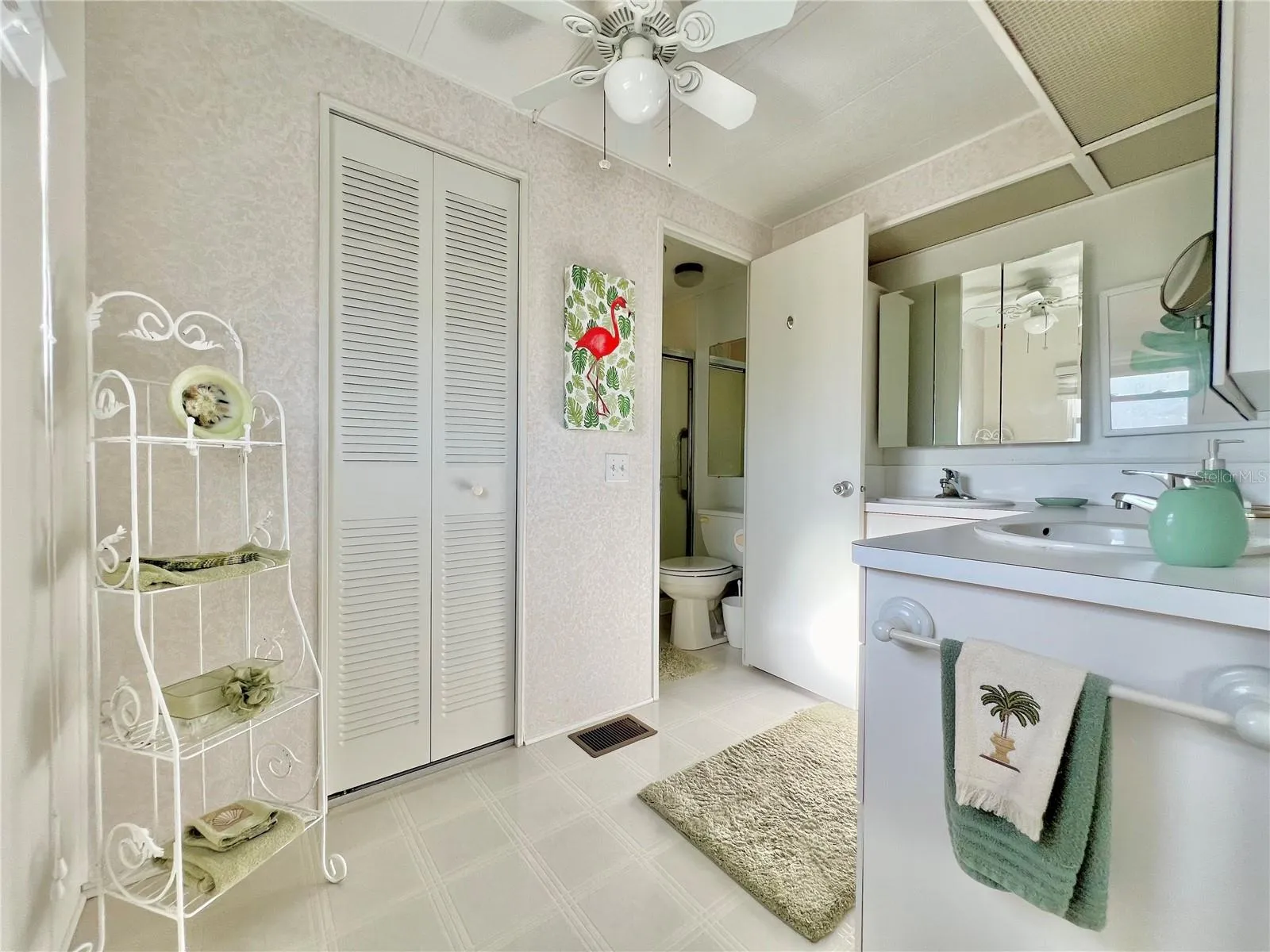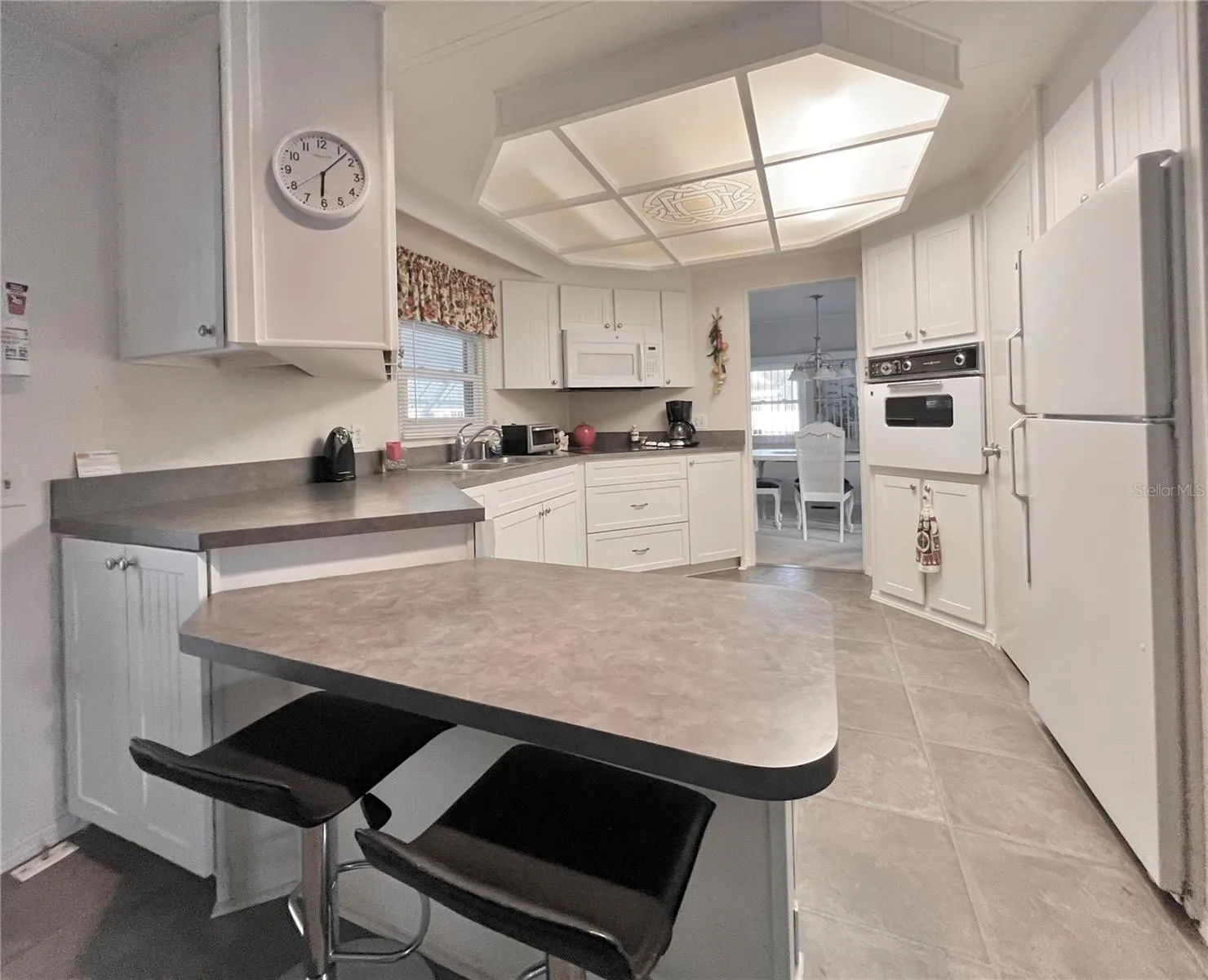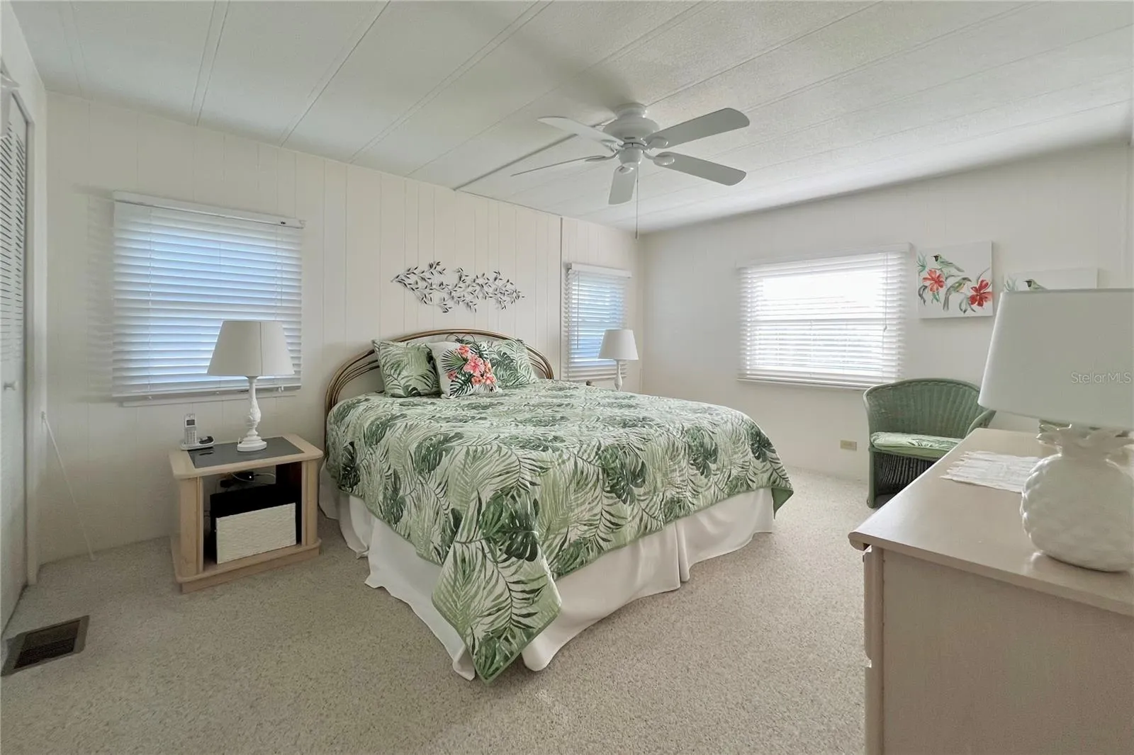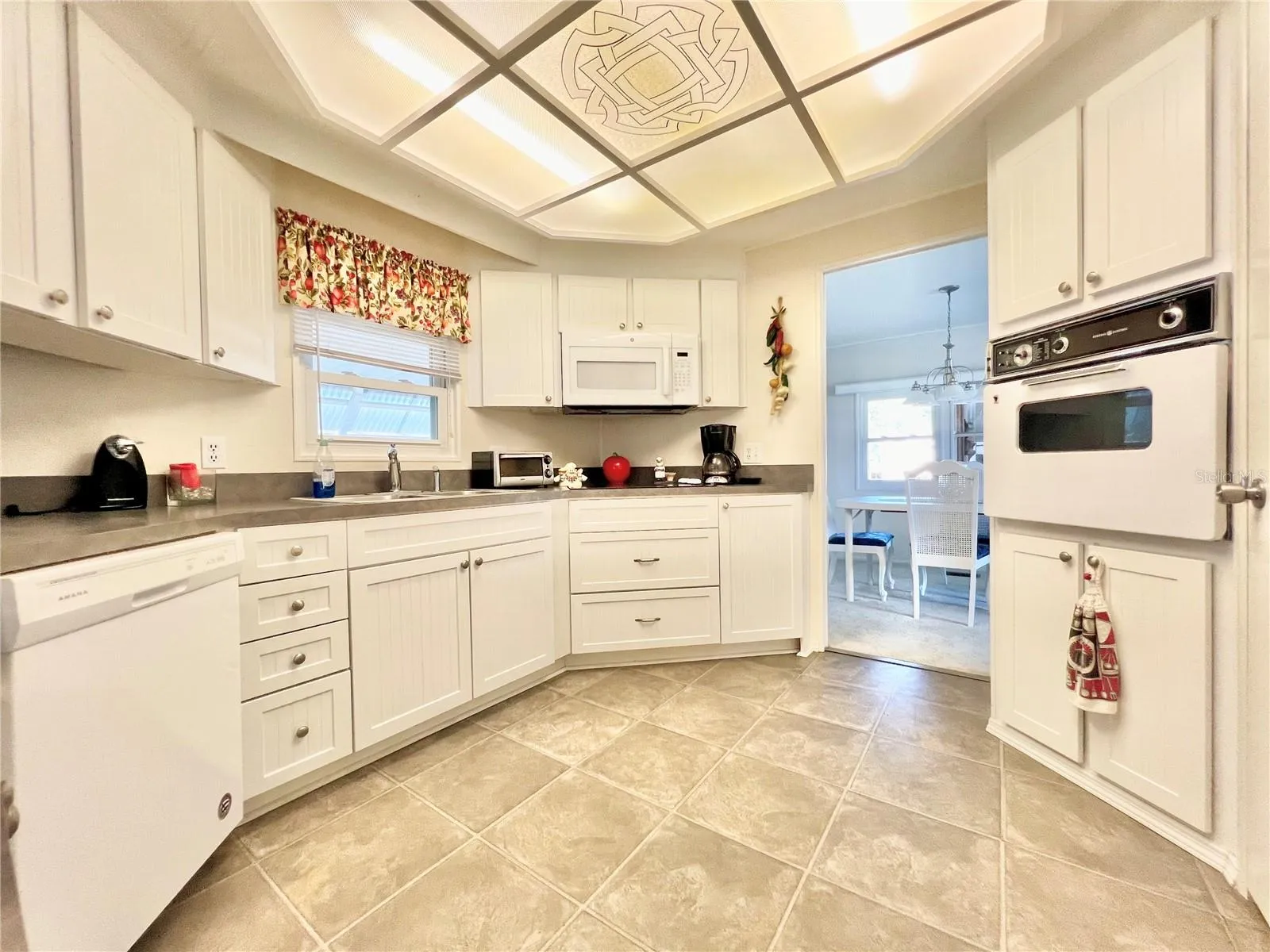 This residence features a roof over, vinyl siding, and newer windows, accompanied by a modernized kitchen. The interior was tastefully painted throughout with neutral colors, offering a harmonious aesthetic. While the flooring in the kitchen and bathrooms mimics the appearance of ceramic tile, it is, in fact, constructed from durable vinyl. The primary bedroom is appointed with a spacious walk-in closet and double sinks in the en-suite bathroom. The property includes a Florida room at the front of the house and a screened room on the north side beneath the carport, complemented by an extended driveway. A/C installed in 2015. Furnished and convenient to the south pool. The co-op land share, integral to every Fairway Village home sale, is included in the list price. Fairway Village stands as a premier manufactured home community, offering an ideal living environment for individuals aged 55 and above, whether they choose to reside year-round or spend part of the year elsewhere. As a 100% Resident Owned Manufactured Home Community comprising 751 homes, we pride ourselves on providing a sense of spaciousness with wide curbed streets, street lights, and sidewalks, ensuring a safe and inviting atmosphere for our residents. All homes are strategically located with established setbacks from the street, contributing to a well-planned and aesthetically pleasing neighborhood. For pet owners, we offer a restricted pet section allowing one pet per household weighing 45 pounds or less. Our community boasts an array of amenities designed to enhance the quality of life for our residents: Private 9-hole par 3 golf course with lakefront fairways and a practice putting green, Five-plus acre lake for catch and release fishing, Two swimming pools with hot tubs, Eight sheltered shuffleboard courts for friendly competition. A brand new 19,000+ sq. ft. Clubhouse completed in January 2022, featuring: 700-seat Auditorium/Ballroom for events and gatherings, Large commercial kitchen for culinary activities and events, Stage for chorus performances and other programs, Separate conference rooms for meetings and discussions, Fitness center to promote health and wellness among residents, Library, billiard room, card playing room, and comfortable sitting areas, Wi-fi service throughout the clubhouse for connectivity needs. Fairway Village’s 2024 maintenance fee of $396/month covers a comprehensive range of services, including water, sewer, in-home high-speed internet access, 220+ Spectrum cable TV channels, curbside trash pickup, lawn pest control, and lawn care, ensuring a hassle-free living experience for our residents. Additionally, residents have the option to enjoy annual golf memberships for $435/year plus 7% sales tax, offering unlimited play on our beautiful golf course. Non-members can also access the course by paying a nominal greens fee during the season. Our vibrant community spirit is further enriched by the Fairway Village Social Committee (FSC), which organizes and coordinates over 50 social activities, fostering connections and creating memorable experiences for our residents. Come and experience the unparalleled lifestyle and amenities that Fairway Village has to offer—your dream home awaits! All dimensions provided are approximate and should be verified by the prospective buyer, emphasizing the importance of independent verification for accuracy in listing information.