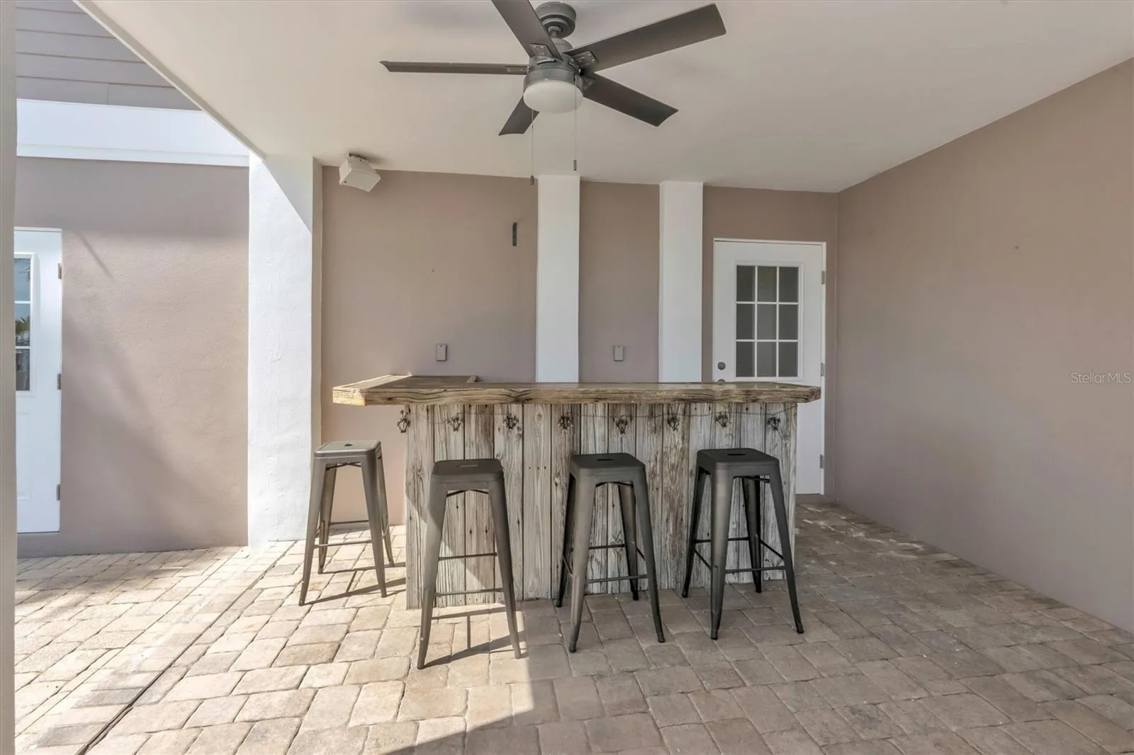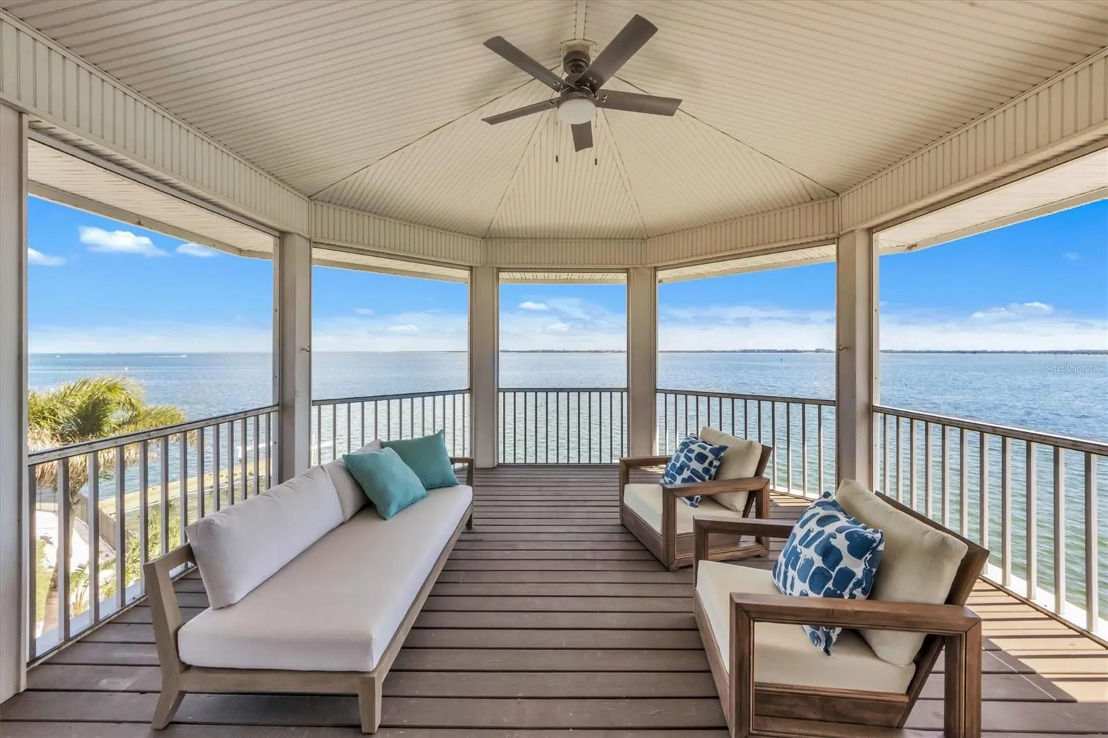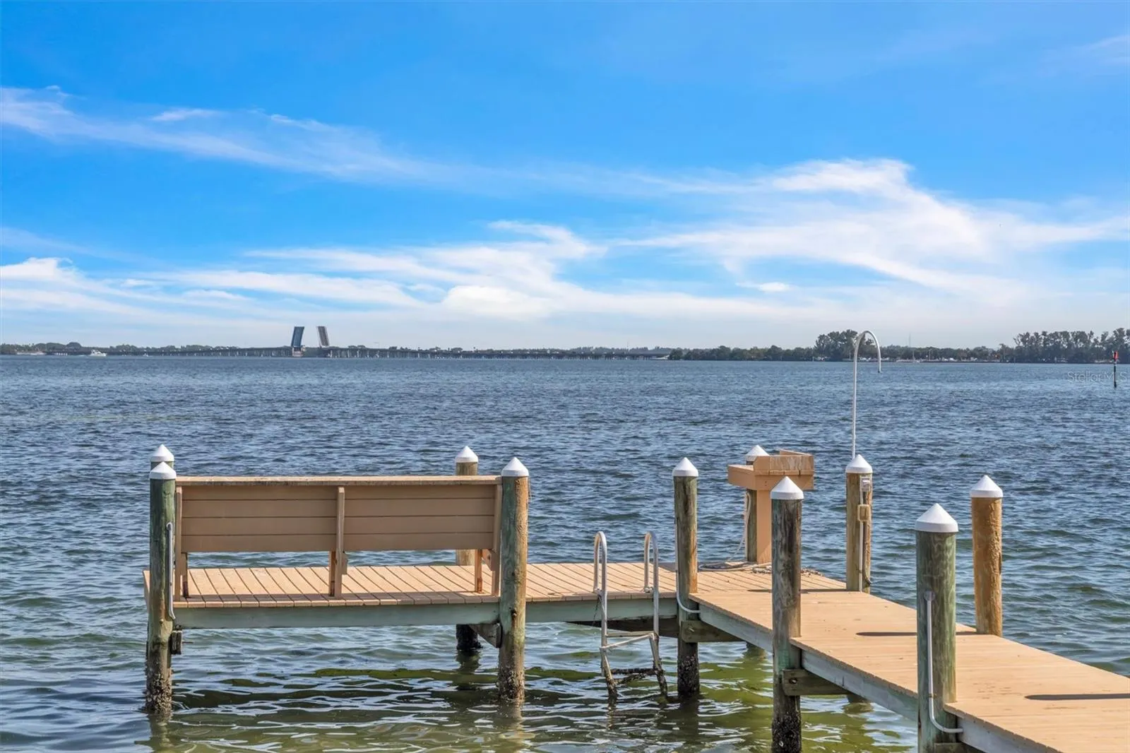The living room opens up to a large screened patio that is perfect to relax and have your morning coffee greeted by intercostal breeze. The kitchen is a culinary enthusiast’s delight, featuring a large island, wine fridge and more. Whether you’re preparing a casual breakfast or hosting a gourmet dinner party, this kitchen is sure to inspire your inner chef. On the main level, there are two bedrooms with a shared bathroom with a walk in shower, and a half bath for guests. This floor has elevator access from the ground level foyer. The top floor is complete with a large Master ensuite with a private screened in porch with panoramic views for ultimate peace and privacy. The backyard is fenced with landscaping, heated pool and private dock. The private dock, providing direct access to the intercostal waterway for boating, fishing, and water sports enthusiasts. Whether you’re an avid sailor or simply appreciate the beauty of waterfront living, this home offers the ultimate coastal lifestyle experience. More features is a covered area that is the perfect spot for an outdoor kitchen or bar area and there is a side entry garage as well as an additional garage and storage area that would be perfect to store all your beach toys and fishing poles. Located in a sought-after neighborhood, very quiet, 30 day rental minimum, this property is just minutes away from pristine Gulf beaches, local restaurants and shopping ensuring that every day feels like a vacation in paradise. Don’t miss your chance to own this breathtaking waterfront haven – schedule your private showing today and start living the life you deserve.