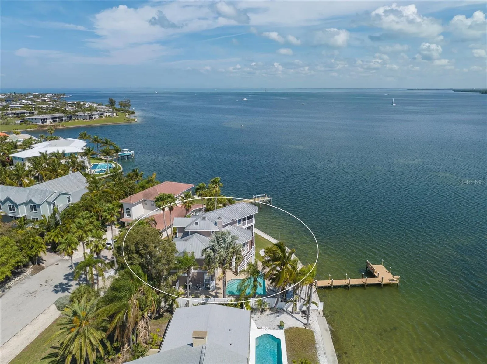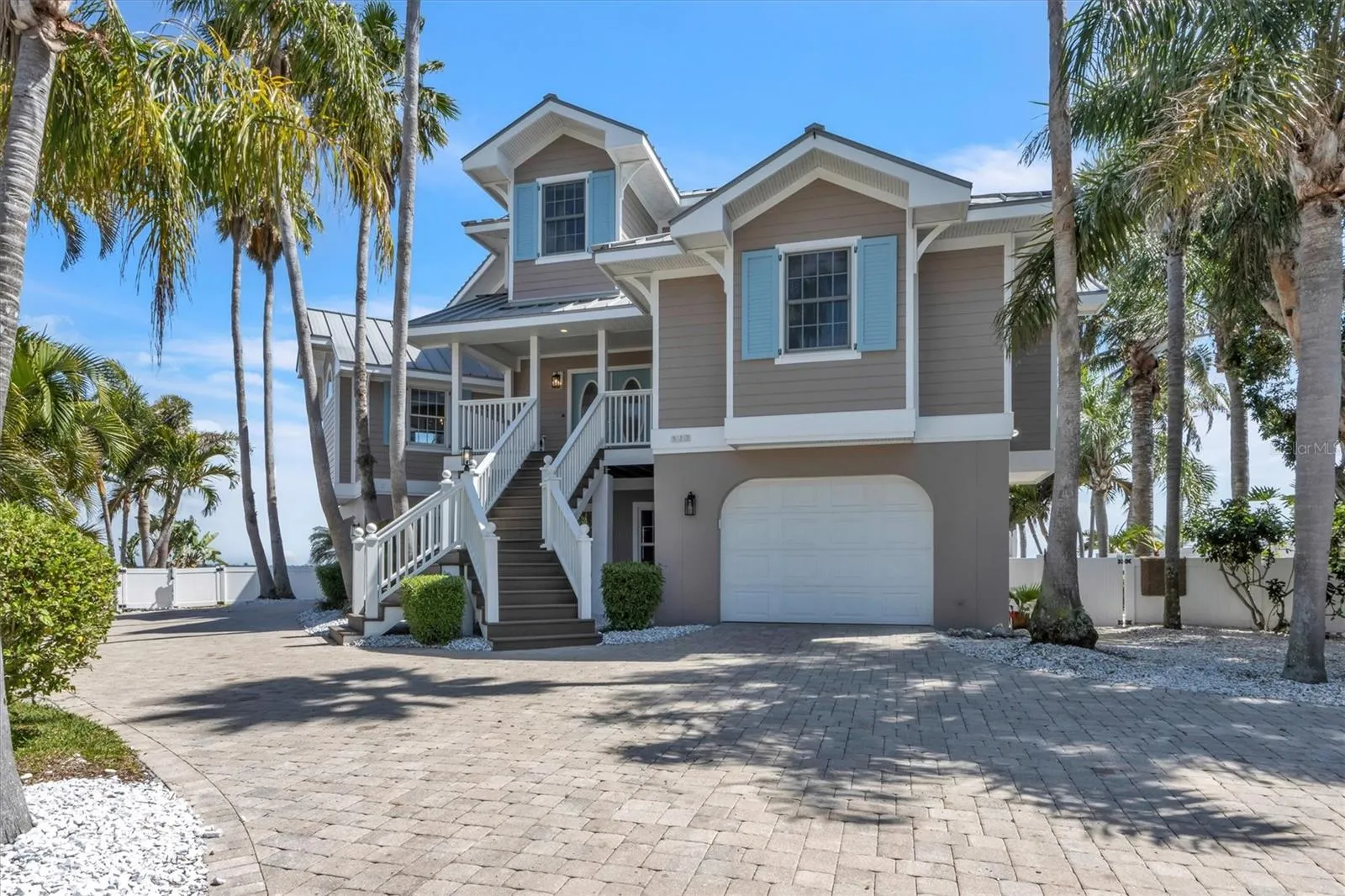 WATERFRONT home offers panoramic views of the Intracoastal Waterway and Tampa Bay!! Stunning 3 bedroom, 2.5 bathroom was recently updated with exquisite decor that seamlessly blends modern luxury with coastal charm, promising a lifestyle of comfort and relaxation. Designed by local architect Emily Ann Smith this exquisite waterfront retreat is located on a quiet cul-de-sac in the heart of Holmes Beach on Anna Maria Island. As you step inside, you are greeted by an open-concept living space bathed in natural light streaming through large windows, a wood burning fire place, framing picturesque views with boats gliding by and watching dolphins frolic in the water.