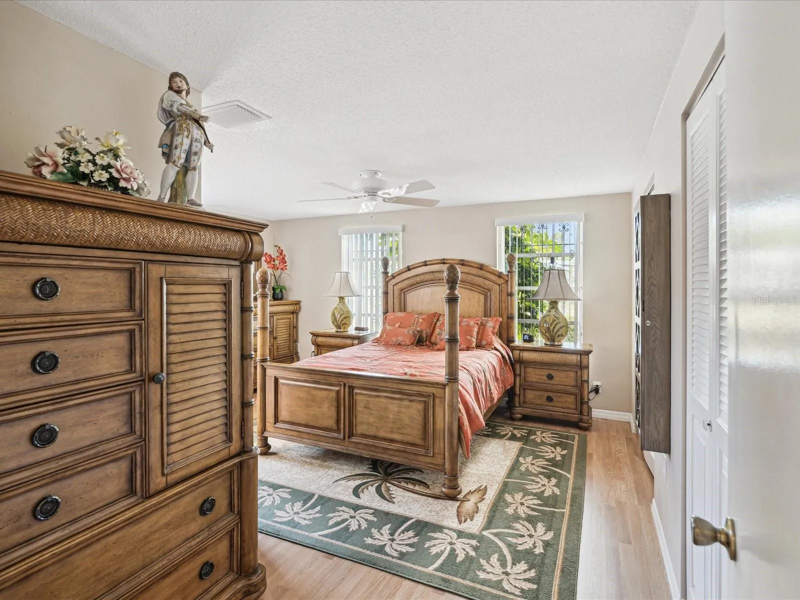 Discover this immaculately maintained waterfront gem, nestled on a private canal with a robust seawall. Enjoy direct access to a private canal, perfect for kayaking, fishing, or simply savoring the peaceful water views. This delightful 2 bedroom 2 bath home offers tranquility, comfort, and modern amenities—all within reach of the vibrant Florida lifestyle. The decorative burglar bars enhance security without compromising aesthetics. Benefit from a newer air conditioning system that promises a cool retreat from the Florida heat and ensuring a comfortable and efficient living experience. Rest easy under a newer roof that offers longevity and protection from the elements. Take advantage of the efficiency of a recently installed hot water heater. The large Florida room boasts automatic hurricane shutters, ensuring safety and peace of mind during stormy weather. The kitchen has a pass through window to the Florida room making it easy for entertainment. Marble tile surrounds the carpeted area in the formal dining and living rooms. Ceiling fans throughout providing adequate air flow. Oversized Garage offers plenty of space for your vehicles, storage, and hobbies. Convenient screen door access to the garage while enjoying fresh air and natural light. Shower in the garage! Yes, you read that right! The garage features a convenient shower—a perfect spot to rinse off after a day of outdoor activities. The expansive lot, provides ample room for outdoor activities, gardening, or even future expansions. Easy landscape upkeep with an irrigation system on a well in a tropical setting with palm trees. Imagine the soothing sound of water as you relax in your backyard seating area next to the working fountain. This large backyard invites you to create your own outdoor haven. This is definitely the place where every detail is curated for comfort and style. Don’t miss out on this fantastic opportunity! Schedule a Showing Today! Bedroom Closet Type: Built In Closet (Primary Bedroom).