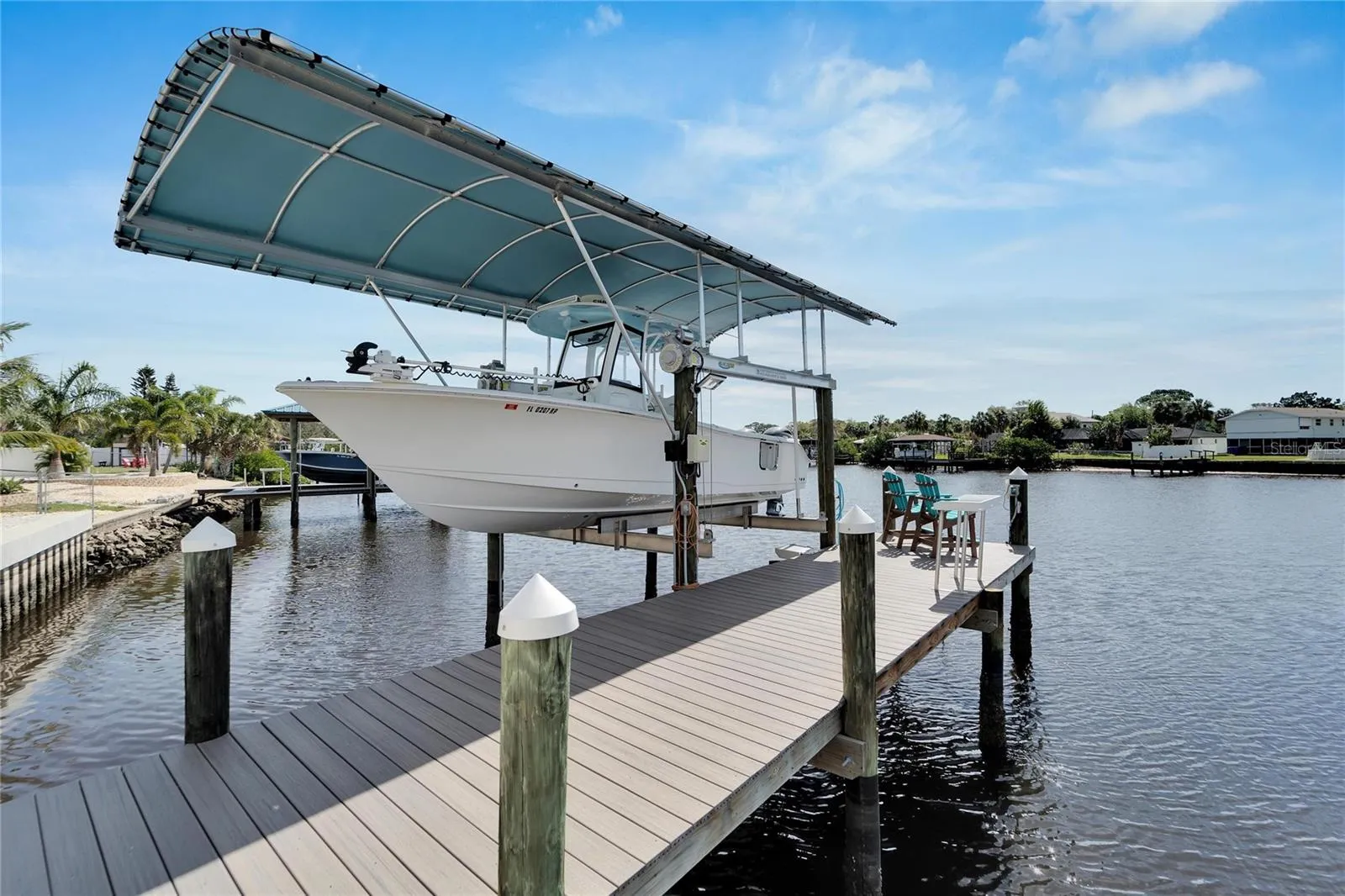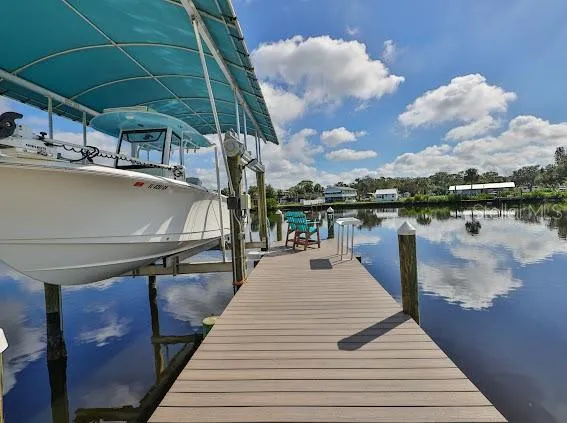 With an air-conditioned 140 sq ft She Shed/Man Cave/Pool House (2021), a covered 10,000-lb. boat lift (2022), an 85ft raised vinyl seawall (2022), and a dock and deck (34×8) with zero-maintenance trek boards, it’s a nautical dream! ABSOLUTELY NO HOA or CDD restrictions mean your vacation-living future can flourish without limitations. Don’t miss out – contact us today to embrace the epitome of coastal living!