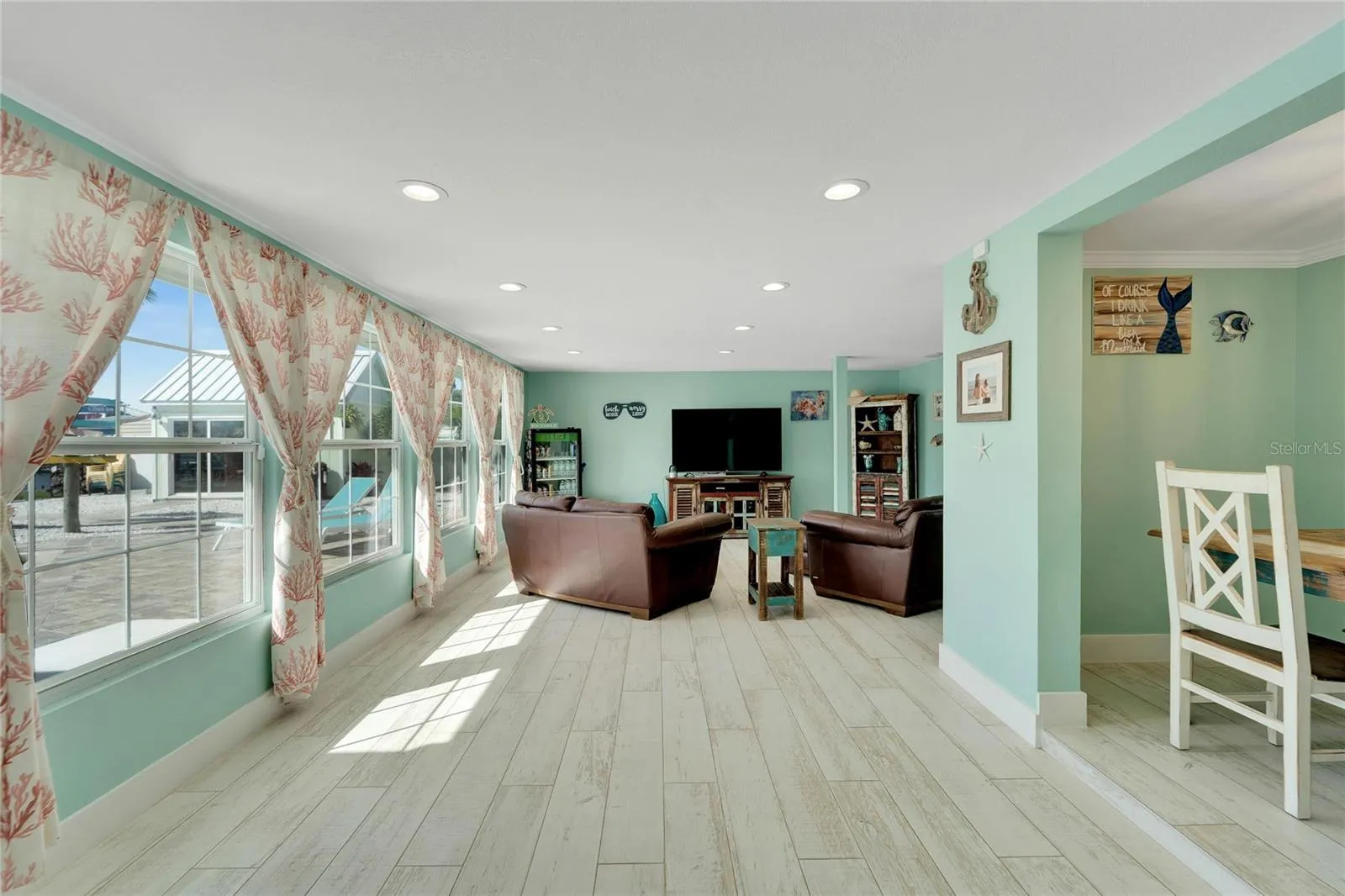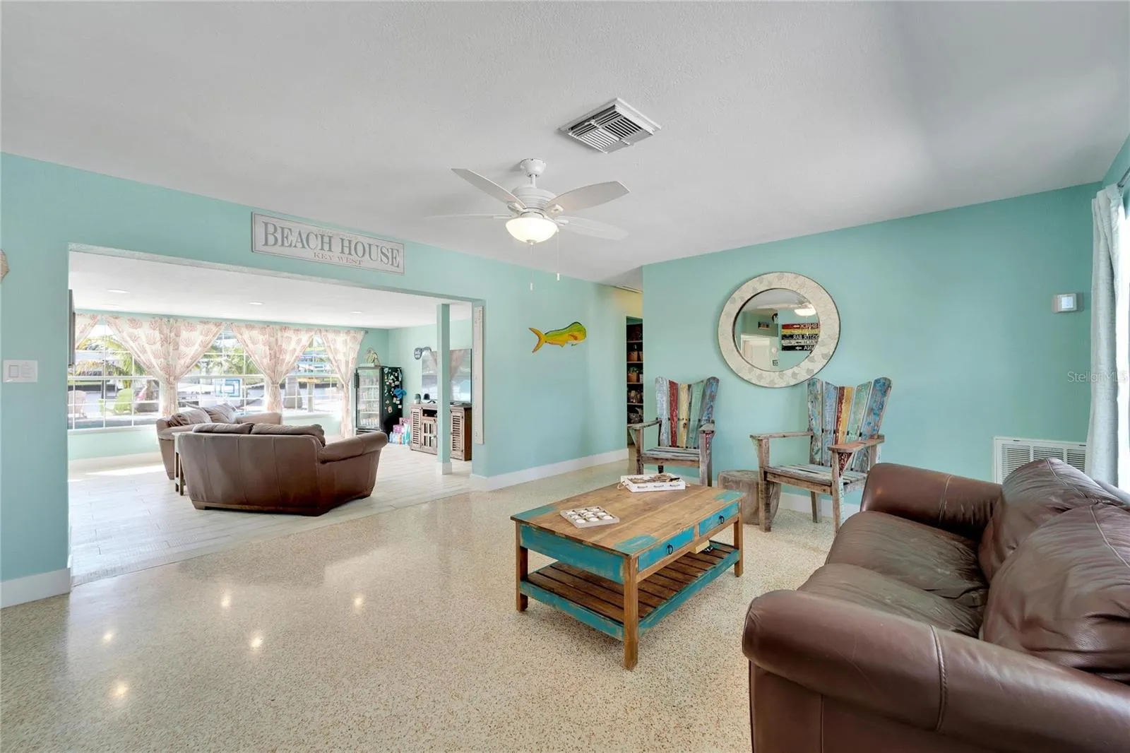 For savvy home-buyers seeking a lucrative opportunity, this property also offers the perfect setting for short-term rentals! Step inside to experience the coastal charm of beach wood tile and terrazzo flooring, complemented by newly designed bathrooms, LED recessed lighting, and fans throughout. The culinary delights continue in the kitchen with custom soft-close cabinetry, a beverage fridge, and top-of-the-line GE Cafe appliances.