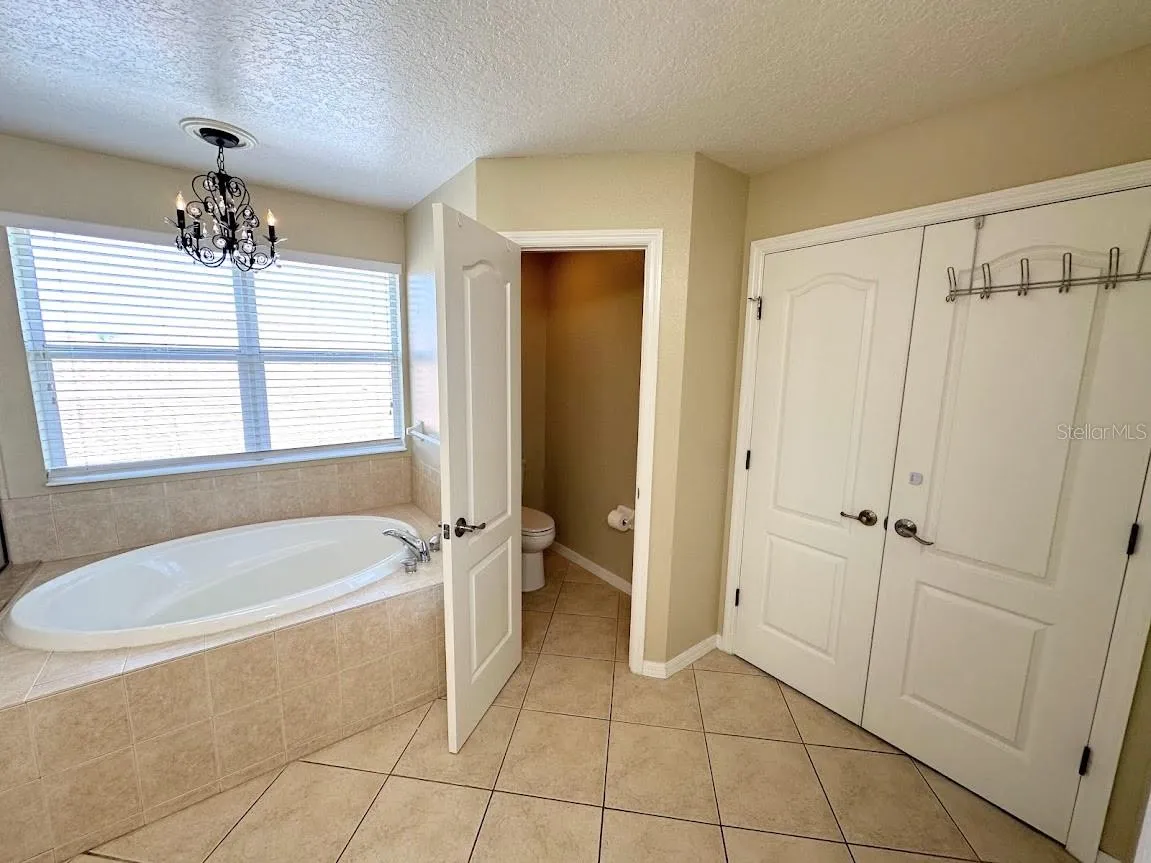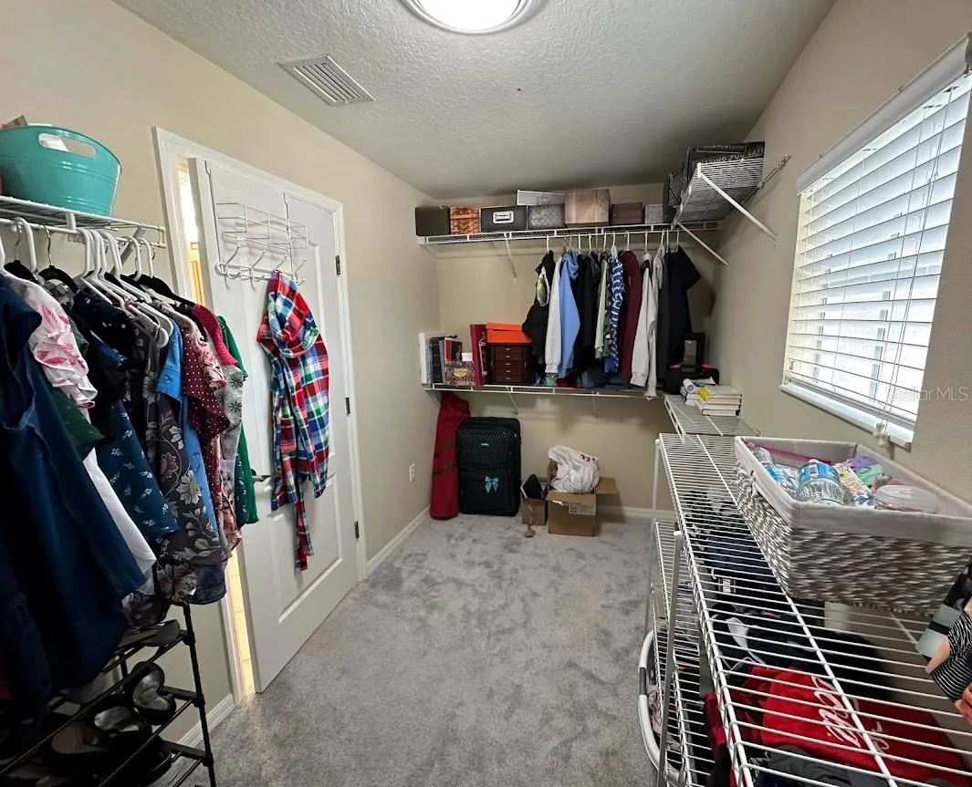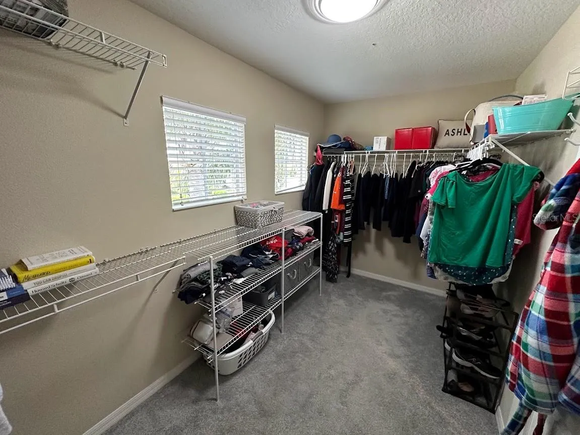 Come see this large home in fun loving Gated Stoneybrook at Heritage Harbour, a golf and tennis community.  No sign. Golf not mandatory. Pay and Play. Restaurant. Low HOA fees, very low CDD fee! Wonderful community, good schools. The Recreation Center is just up the street, a short walk with heated community pool, tennis, fitness, playground, etc.  Beautiful Stoneybrook inside Heritage Harbour has so much to offer with golf and tennis.  Great schools, beautiful well maintained community. This home features 4 bedrooms and 3-1/2 baths. Front porch entry going into the home you will see the tiled large open living and dining room combination, through to the tiled kitchen and family room, Laundry room with cabinets, plus a 1/2 bath. Screened in Lanai overlooking a large backyard that backs to trees.  4 Large bedrooms.  The primary suite is huge plus it has an adjoining 10’x13′ bonus room that can be used as an office, nursery or work-out space.  Two large walk-in closets.  The large primary bath features separate shower and tub, plus vanity.  Three more big bedrooms and two more bathrooms. All bedrooms with ceiling fan with lights.  New carpet on stairway. This home offers so much, with many options.  There’s even room for your custom pool with the nice large back yard.  Two Zone heating and cooling.  One A/C unit is brand new, the other 2 yrs. Stoneybrook offers Golf, a 24 hour fitness center, heated pools, hot tub, tennis, pickle ball, basketball, volleyball, dog park, playgrounds, social clubs, and the list goes on.  Close to I-75, shopping, dining, restaurants, fast food, pharmacies, and medical. Many new stores going in next to Costco like Longhorn Steakhouse, Chick-fil-A, Hobby Lobby, Target, Whole Foods, Panda Express, Sports Academy, Cheddars, First Watch, and much more!  Drive to our world famous Gulf beaches.  It’s a must see. Call today for your private showing. Walk-in Closet (Primary Bedroom).