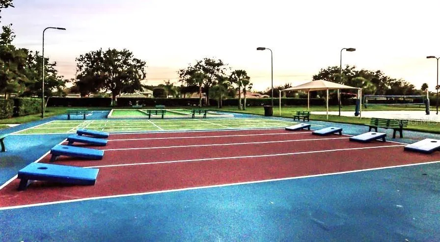 - Clubhouse,Fitness Center,Gated,Golf Course,Park,Pickleball Court(s),Playground,Pool,Recreation Facilities,Shuffleboard Court,Spa/Hot Tub,Tennis Court(s)