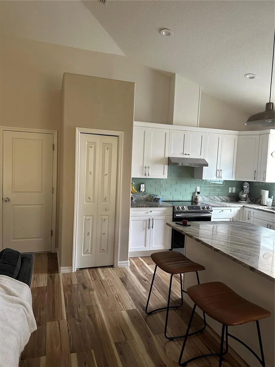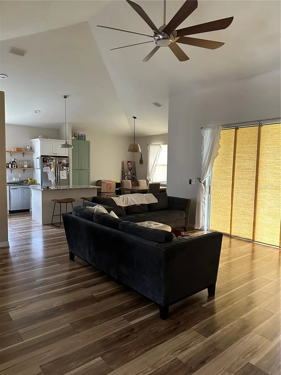- Ceiling Fans(s), Crown Molding, Open Floorplan, Thermostat, Living Room/Dining Room Combo, Kitchen/Family Room Combo, High Ceilings, Vaulted Ceiling(s), Stone Counters, Solid Wood Cabinets, Tray Ceiling(s)