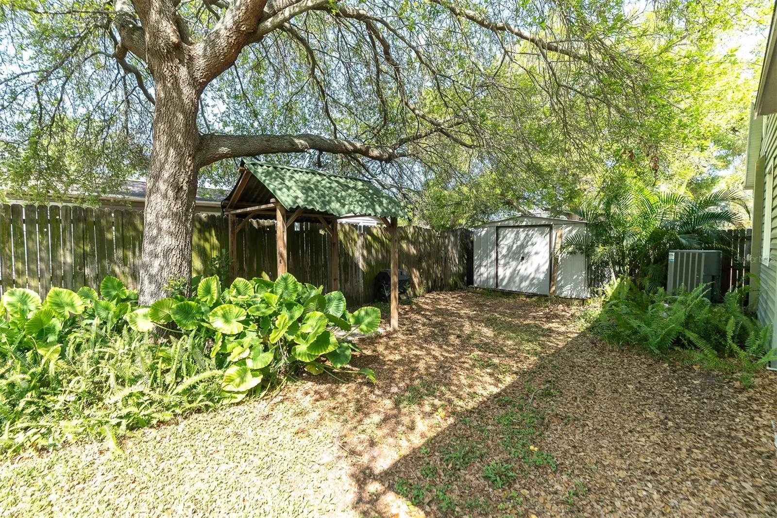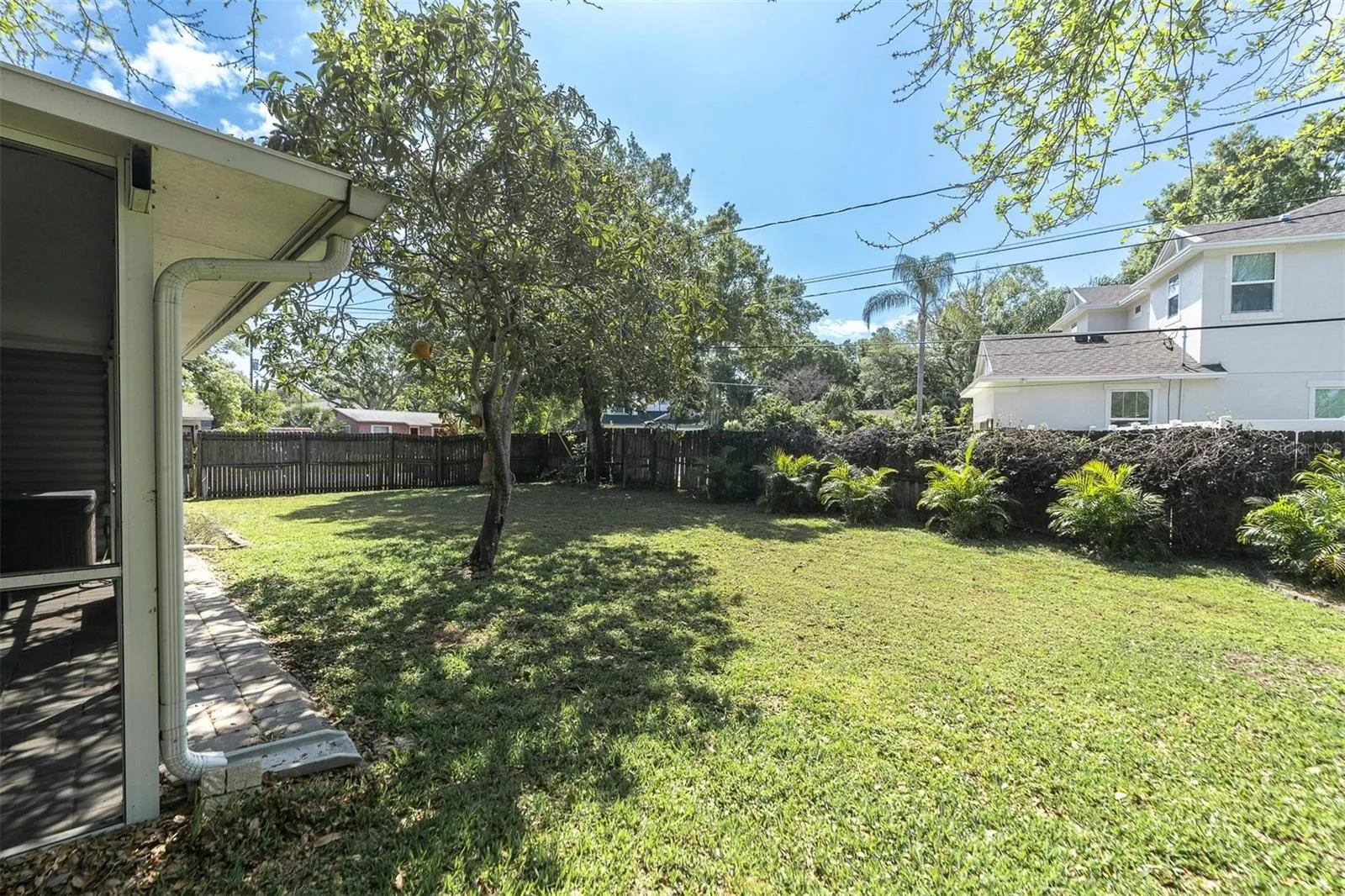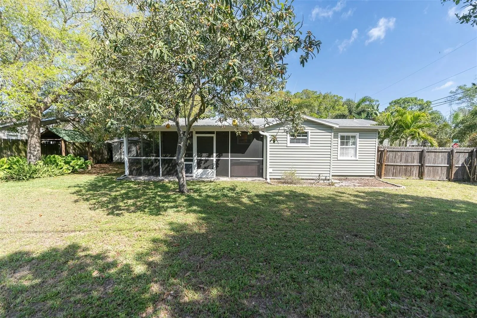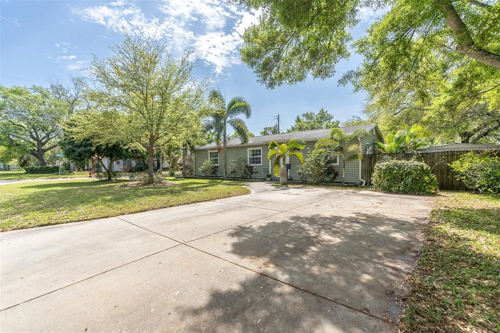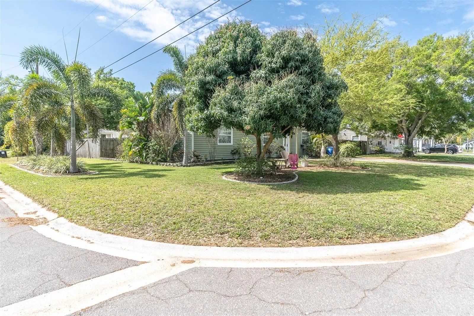 Location, Condition, Priced BELOW APPRAISED VALUE and NO FLOOD INSURANCE REQUIRED- this residence epitomizes them all. Discover the allure of this delightful 3-bedroom, 2-bathroom home nestled on an expansive corner lot with a cul-de-sac entry. AC is from 2020. Situated in a serene neighborhood, it offers easy access to I-275, Downtown St. Pete, the Gulf Beaches, and Tampa Bay. The impeccable curb appeal sets the stage for this hidden gem. Meticulously maintained lawn, grounds, and home exude pride of ownership. Step into the vast fully fenced backyard, a sanctuary adorned with lush plants, fruit trees, and picturesque scenery. A shed on the side offers additional storage convenience. Upon entering, be greeted by the warmth of 1950s solid wood floors, impeccably preserved. The living room strategically separates the primary suite from the secondary bedrooms, ensuring privacy. The primary suite boasts ample space, complete with a luxurious master bath featuring a jacuzzi tub and a walk-in closet. The secondary bedrooms share a generously sized hall bath with a tub/shower combo. The kitchen, centrally positioned between the front living room and the rear bonus/entertainment room, facilitates seamless living. The bonus/entertainment room transitions to the expansive outdoor screened porch with paver brick flooring. As a move-in gift, the seller offers an above-ground jacuzzi in the screened porch; removal can be arranged at the seller’s expense if not desired. Additionally, an indoor laundry room with stacked washer/dryer and shelves adds practicality. With excellent schools, prime location, and a welcoming community, this home is poised to create cherished memories for its new family.