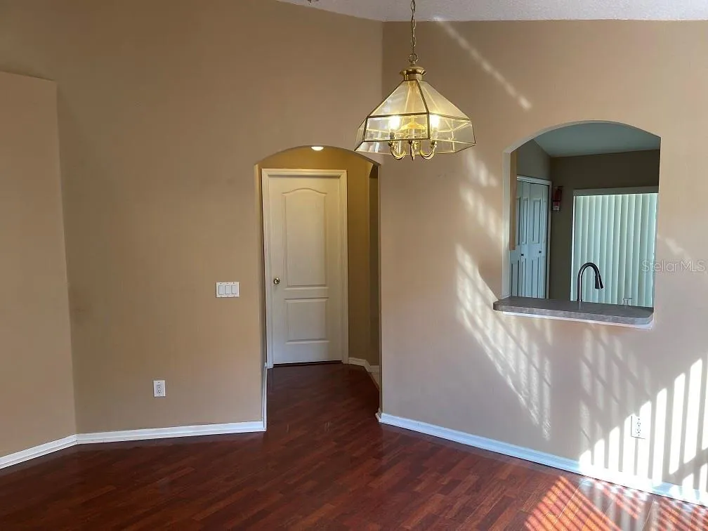Oak Creek home for rent with 3 bedrooms and 2 full baths and a den/office. Just inside the front door is a den/office hidden behind double doors. The living and dining room have laminate floors and there is a pass thru to the kitchen for easy entertaining. The kitchen has maple cabinets, white appliances and a closet pantry. There are hookups for your washer and dryer in the kitchen. A sliding glass door leads out to a large screened patio and backyard with pavers.