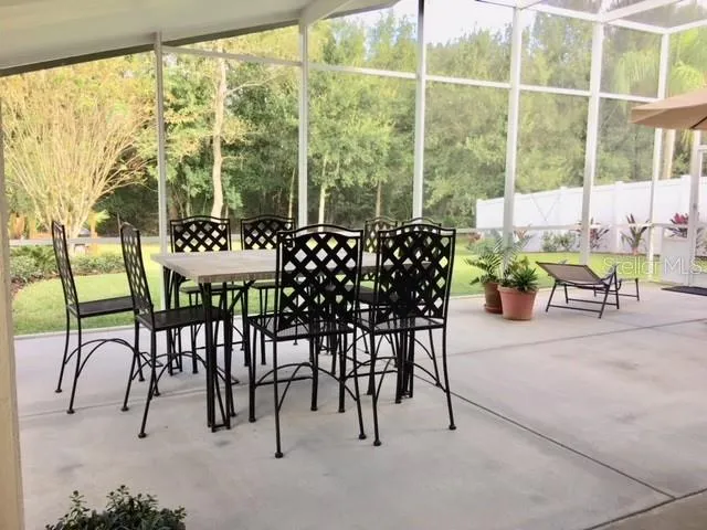 LAWN CARE IS INCLUDED! This home is beautiful inside and has all the finishes most are hoping for. The tiled foyer welcomes you into the formal living and dining room combo with attractive wood floors. The pool table shown in the photo will stay for your enjoyment. The volume ceilings give this home a light and airy feel. Thru the arched opening is an area for your casual dining table and a lovely kitchen with 42″ cabinets topped with crown molding. The granite counters and stainless appliances make this the perfect kitchen to cook in! Just off the kitchen is a laundry room with upper cabinets and a door leading to the garage. The kitchen is open to the family room with volume ceilings, plantation shutters and wood floors. Off to the right are 2 bedrooms and a bath. On the left side of the family room is a king size master bedroom new carpeting and sliding doors leading to the lanai. The master bath has dual sinks, garden tub and glass enclosed shower. The other two bedrooms are on the opposite side of the home, one has new carpeting and the other the wood floors. Step out back to a huge screened lanai with a lovely view of a wooded area. The owner provides exterior pest service. Lake St Charles is conveniently located near Hwy 301 & Bloomingdale Avenue, convenient for commuting or shopping. Community amenities include pool, spa, playground, park and clubhouse. MIN CREDIT SCORE 600, NO PRIOR EVICTIONS, ACCEPTABLE BACKGROUND, PETS under 20lbs ok