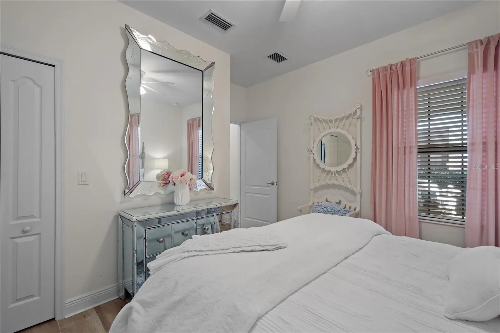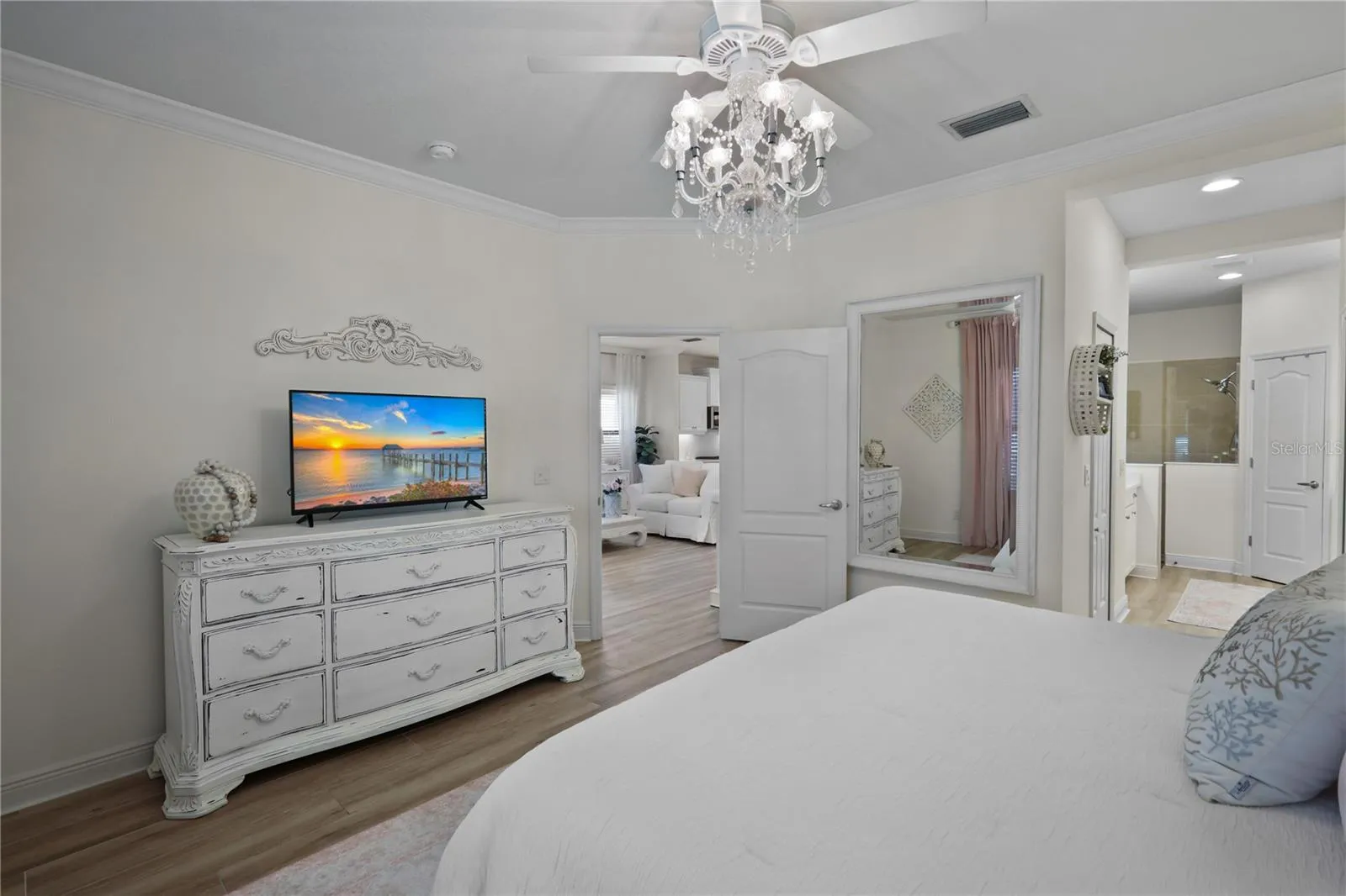 This pristine one-story villa with a huge lanai has one quarterly HOA fee that includes all exterior maintenance including reserves for roof, a heated community pool, pavilion and gated entry. NO CDD fees! The popular Tidewater floor plan is thoughtfully designed to enhance the open living space. As you step into this home, you’ll immediately notice its impeccable condition with a spacious great room, a kitchen adorned with an expanded island with quartz countertops, cabinet pull outs, and a gas range. The dining area accommodates a sizable table not found in other floor plans. Offering 2 bedrooms plus a spacious front room that perfect for a home office or cozy TV room. You will enjoy the comfort of a split bedroom floor plan, providing privacy for you and your guests. Have morning coffee on the expanded screened lanai with stunning stone tile plus an exterior brick patio perfect for a grill, fire pit or growing plants and herbs. (There is a gas hookup inside the lanai should someone want a built-in grill). The original owner has made numerous aftermarket upgrades. All flooring has been replaced with plank tile that looks just like wood including whisper mat underlayment, counter tops have been transformed to elegant quartz, the laundry room has been upgraded with additional cabinetry, added decorative lighting, and the lanai has been expanded to an impressive size. There are two gated entrances, one just a few doors down for easy exit. Villa Amalfi is perfectly situated to get to shopping, dining, medical, theater and the airport. One of the fastest growing areas in the United States at a reasonable price and fees. Come see this beautiful villa today. You will not be disappointed!
